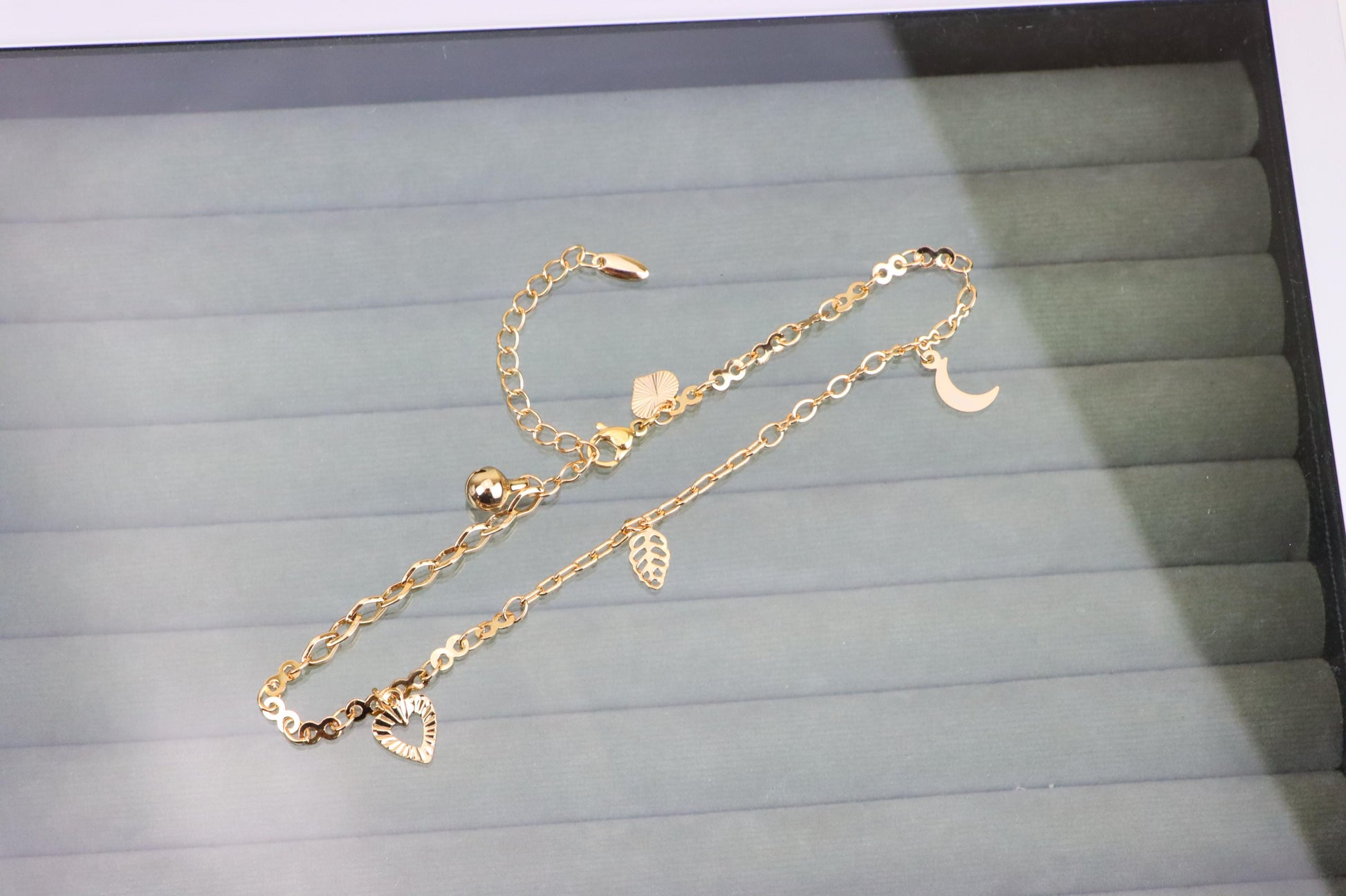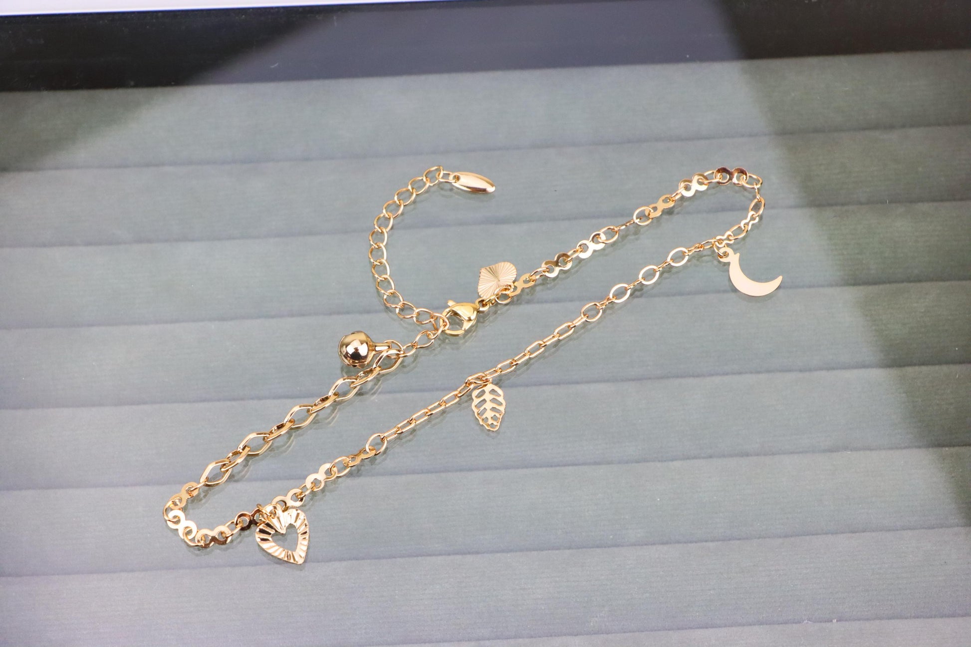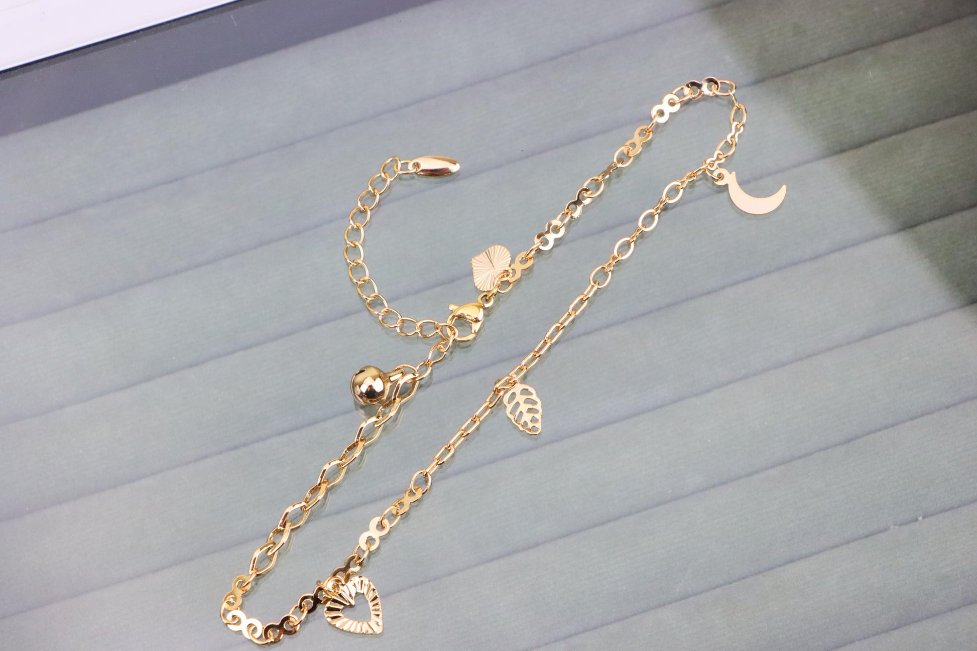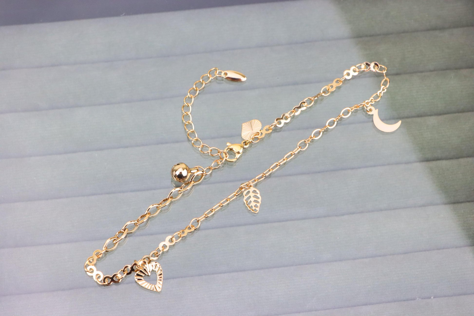 Rose Gold Anklet with Heart, Leaf & Moon Charms, XPAL1046