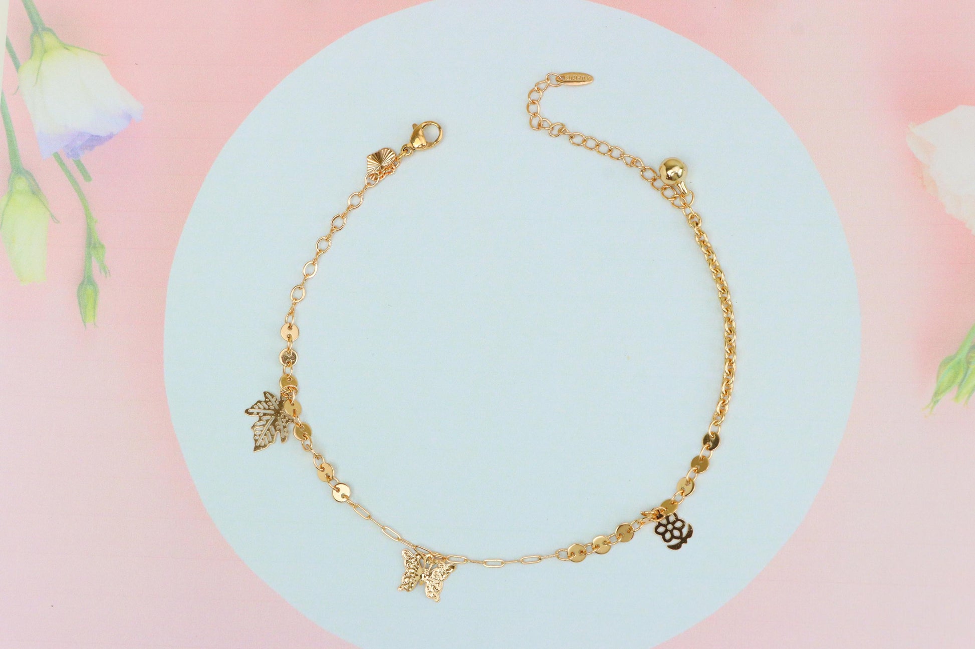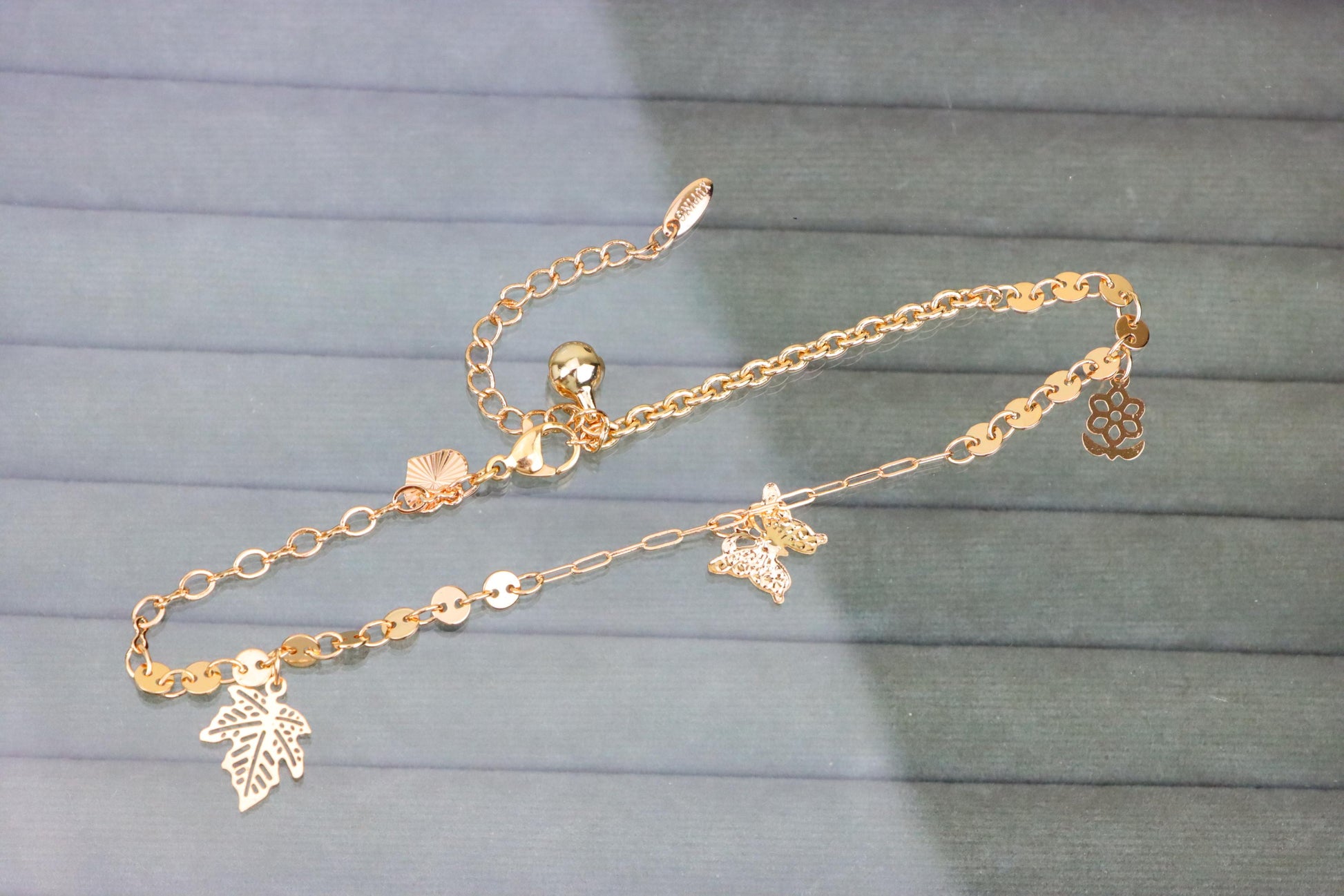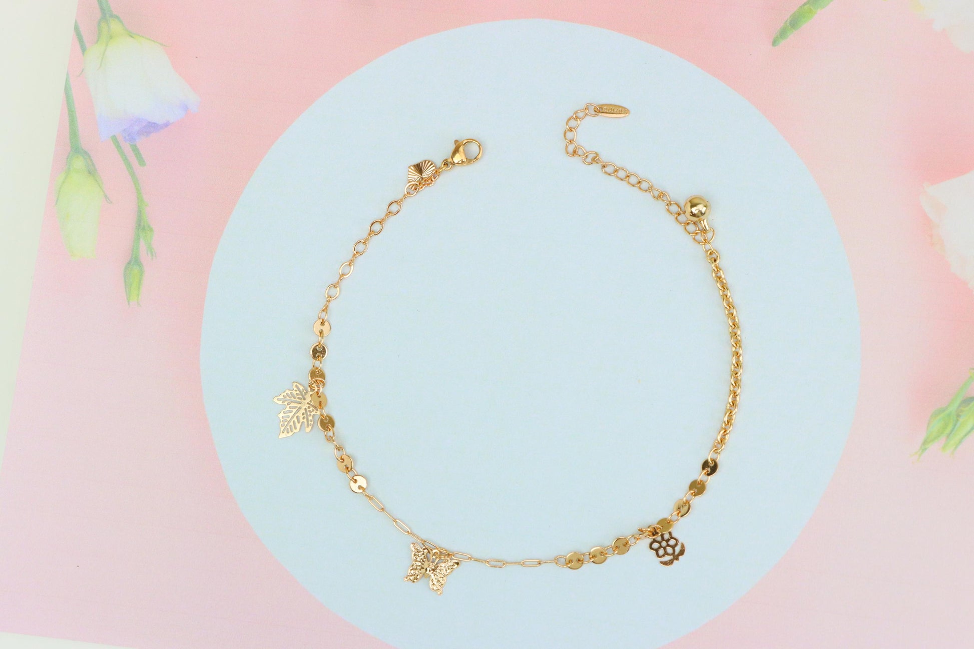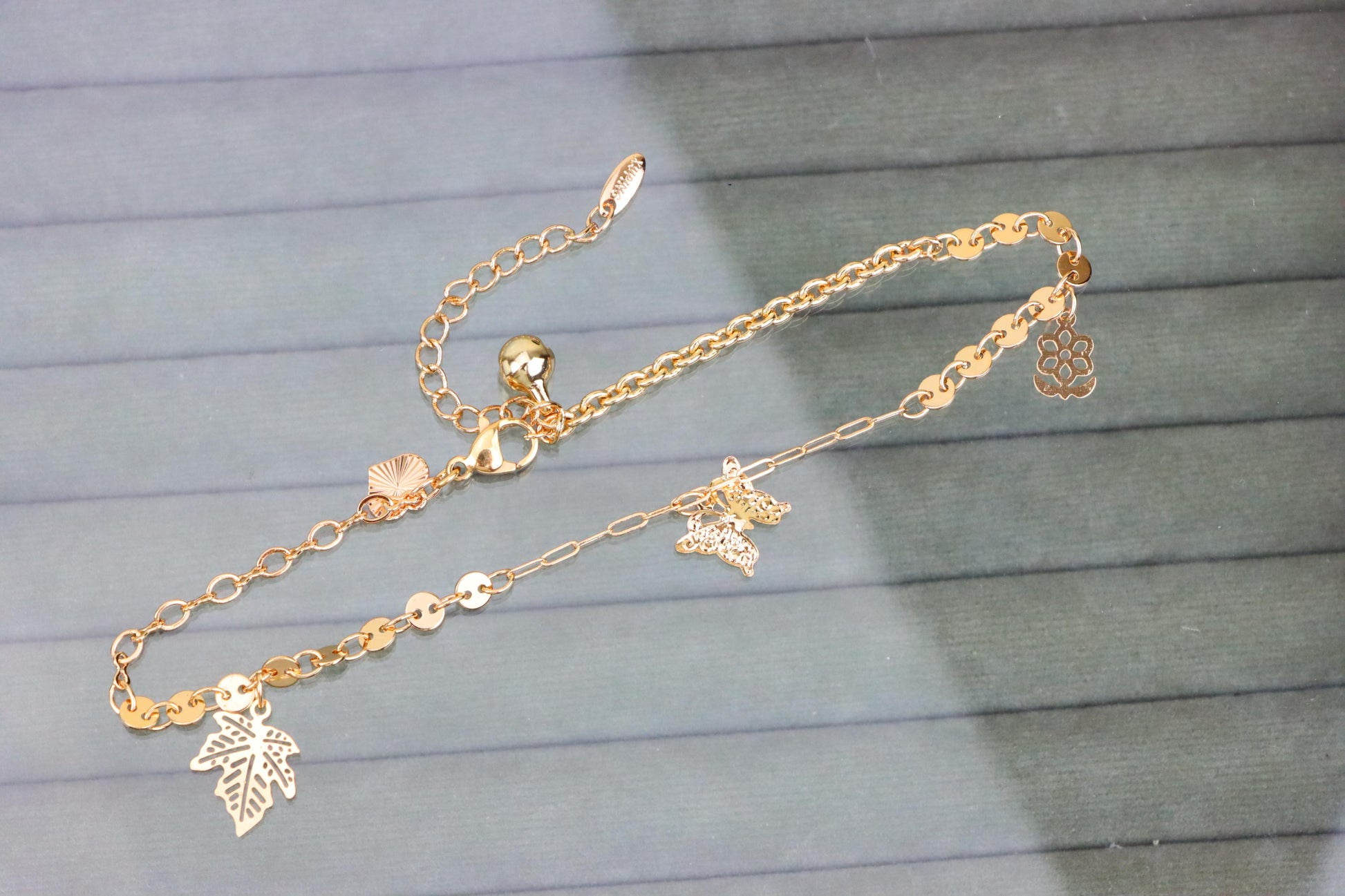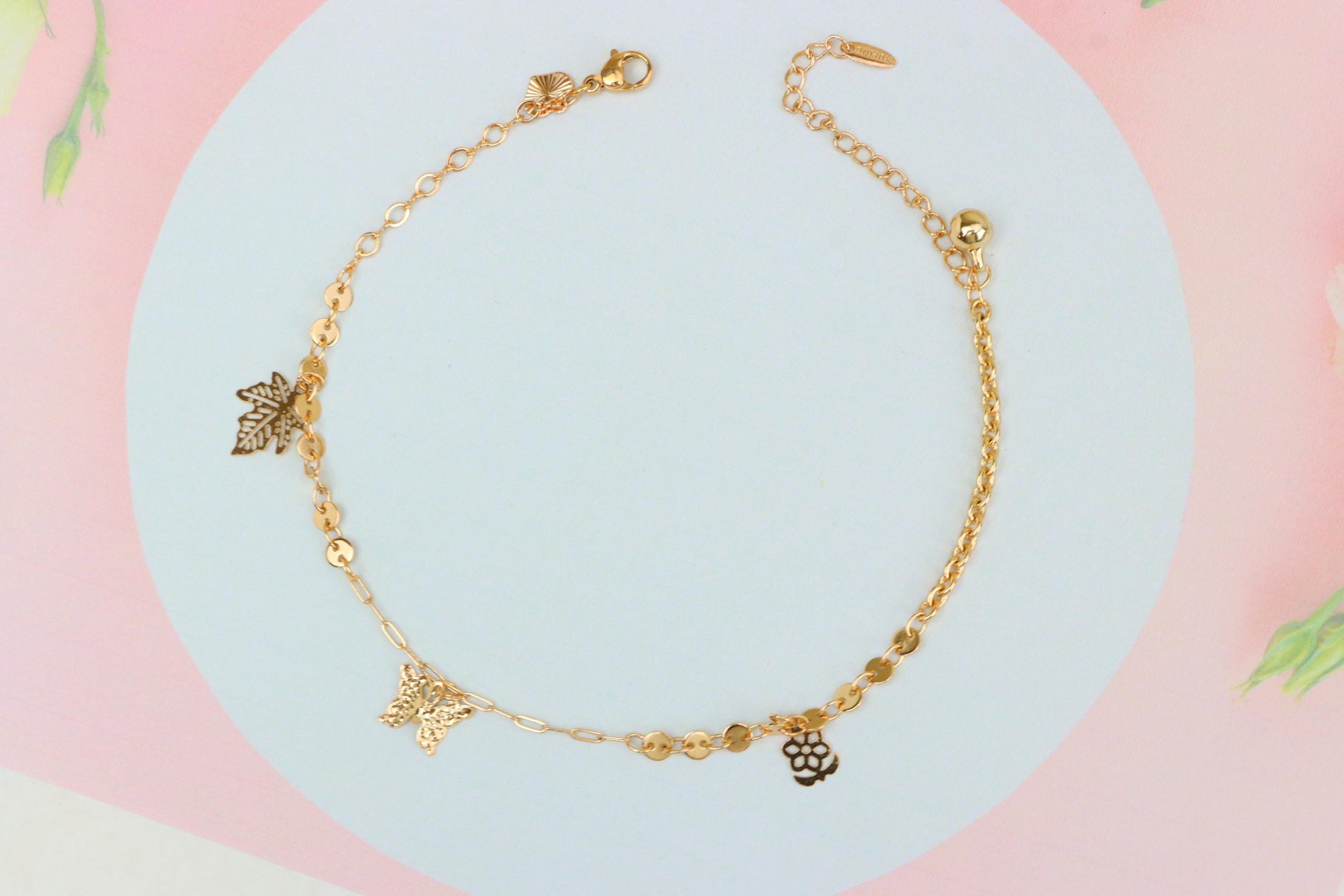 Rose Gold Anklet with Leaf & Butterfly Charms, XPAL1163