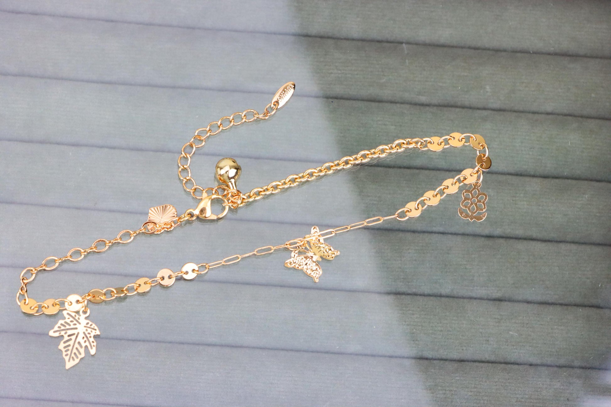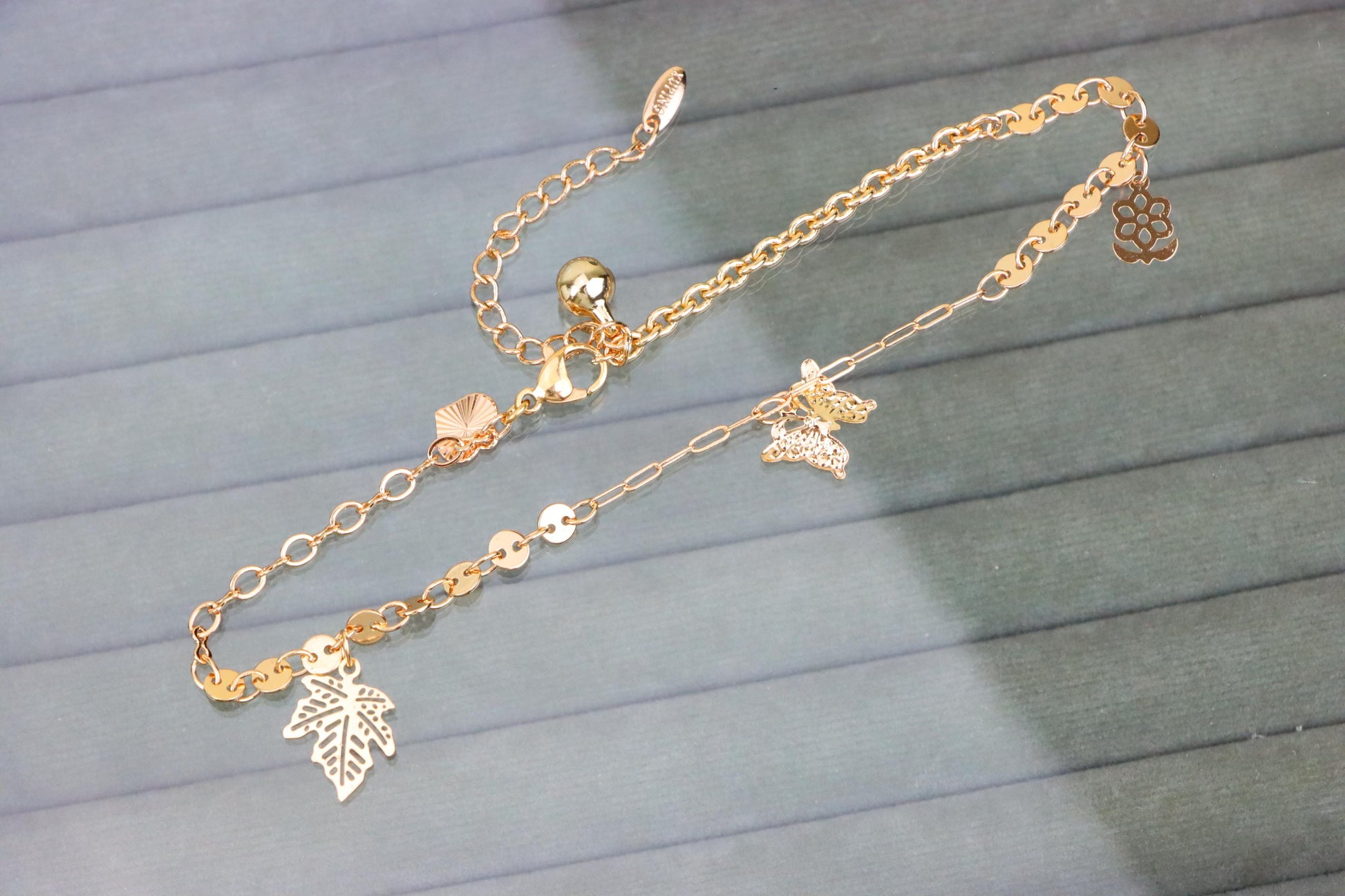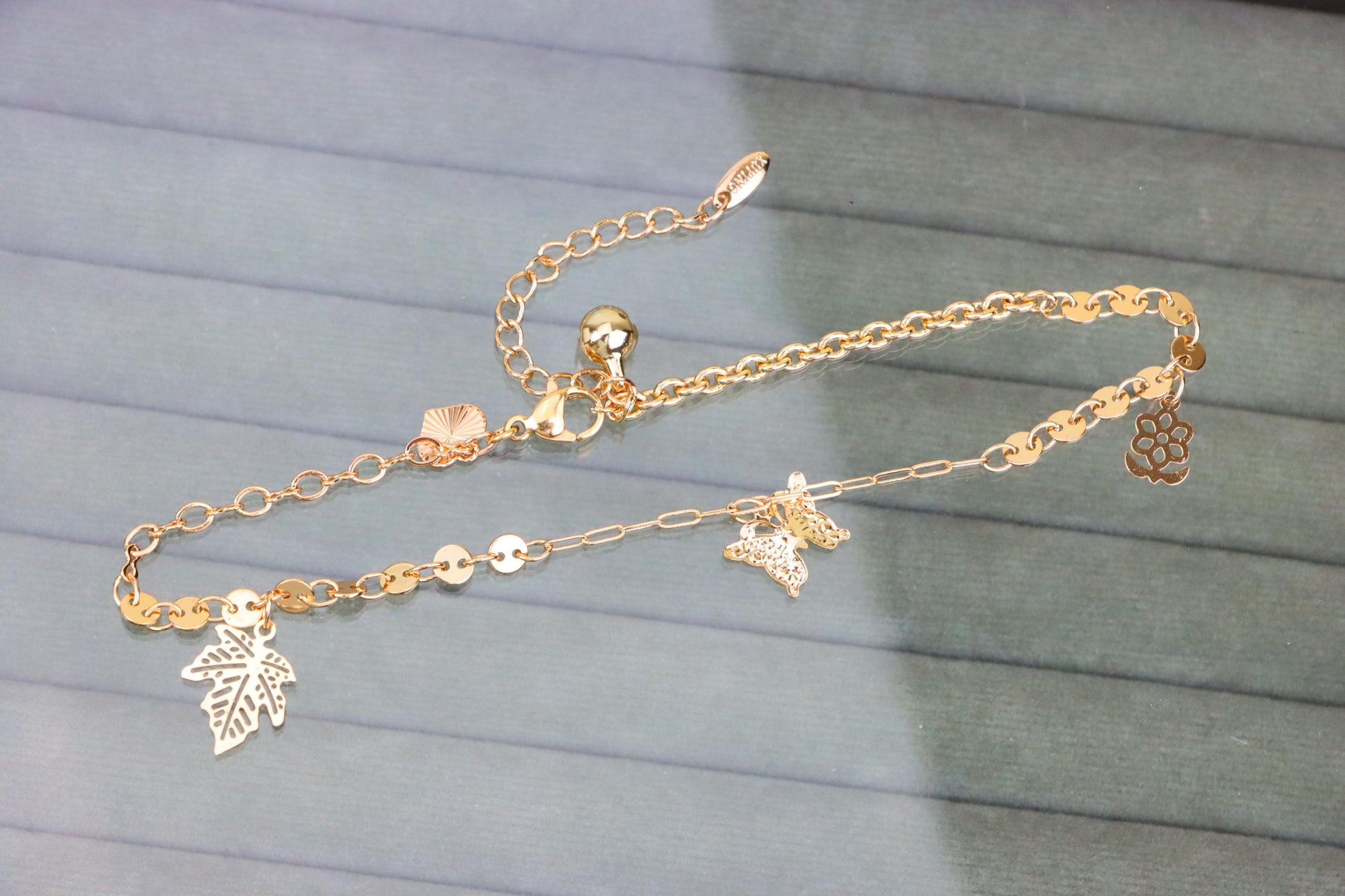 Rose Gold Anklet with Leaf & Butterfly Charms, XPAL1163 (2117-2)
