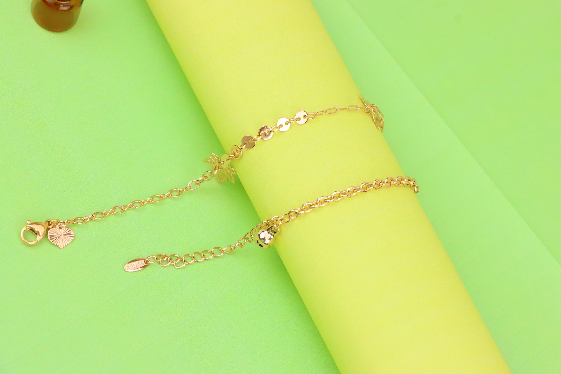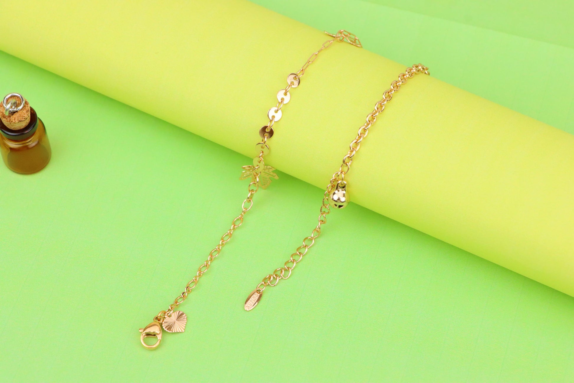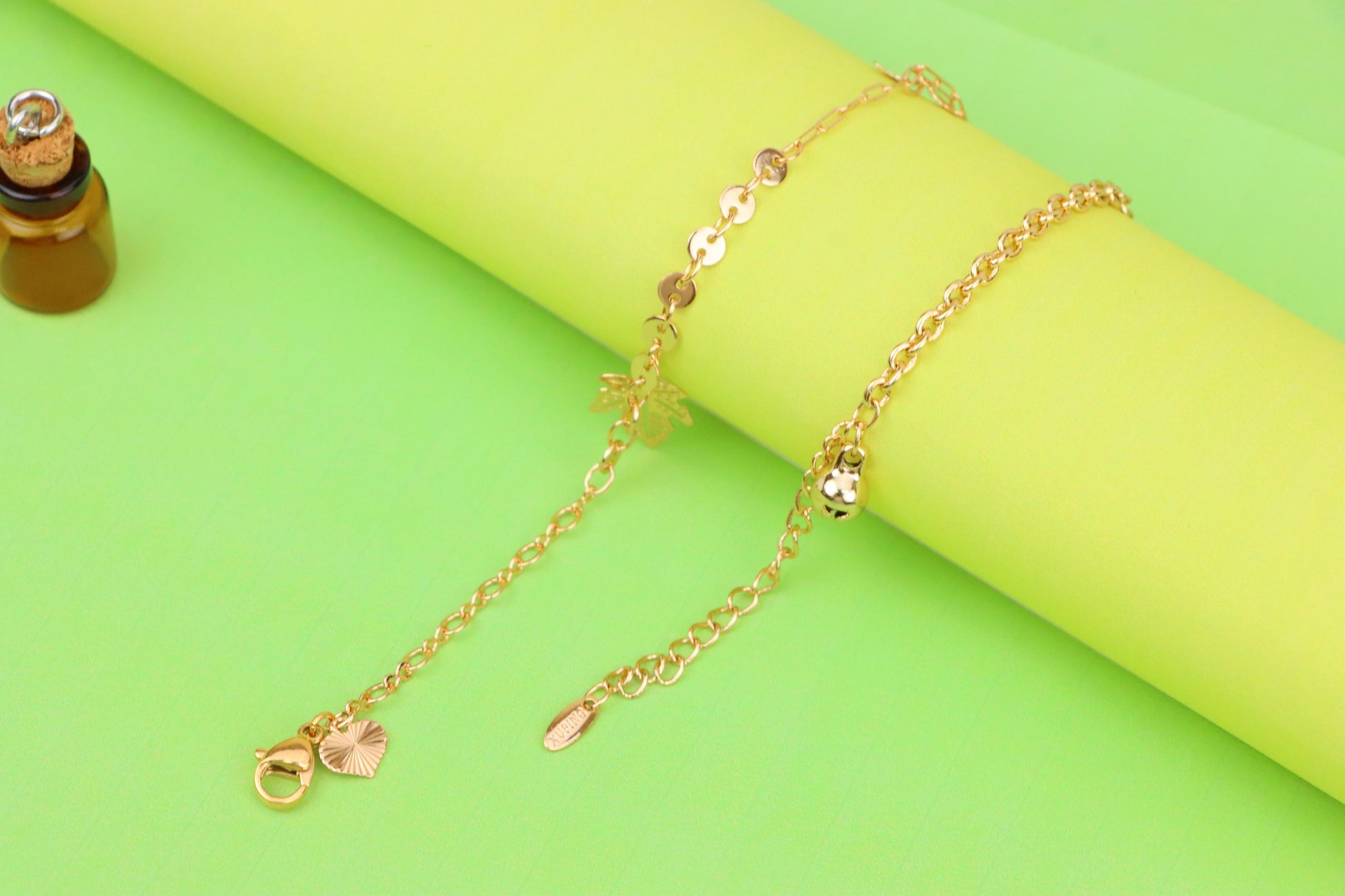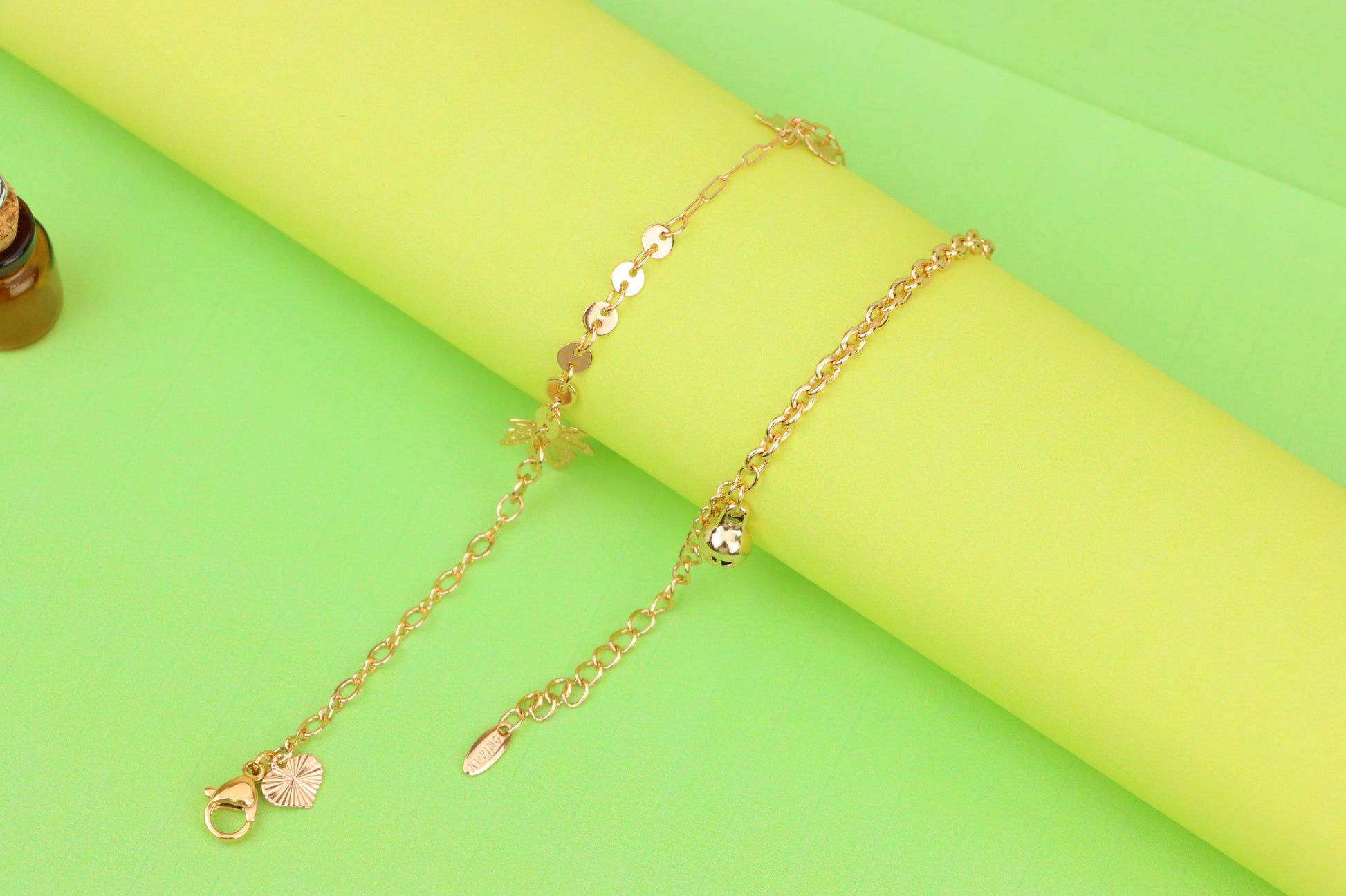 Rose Gold Anklet with Leaf & Butterfly Charms, XPAL1163 (2117-2)