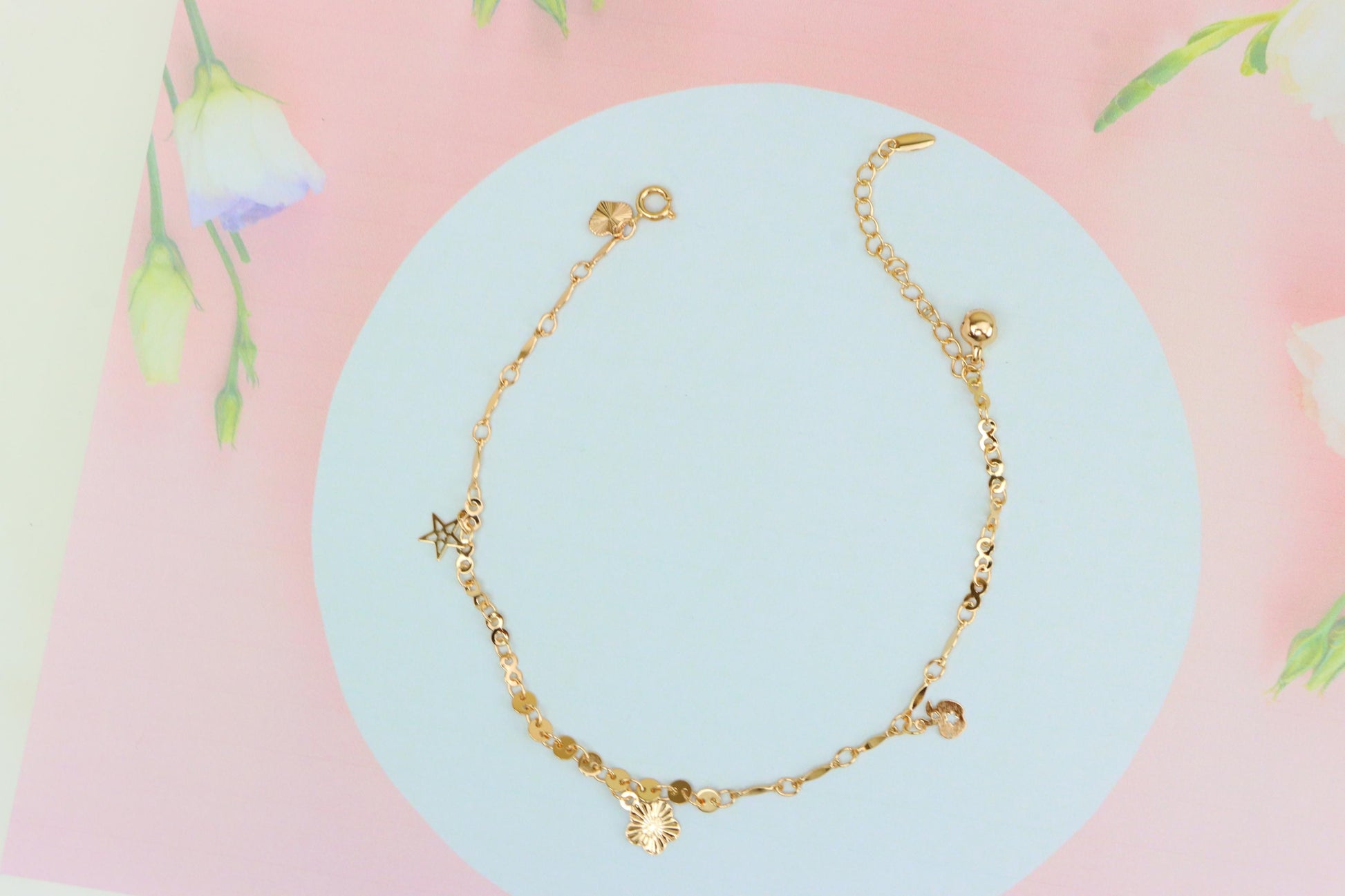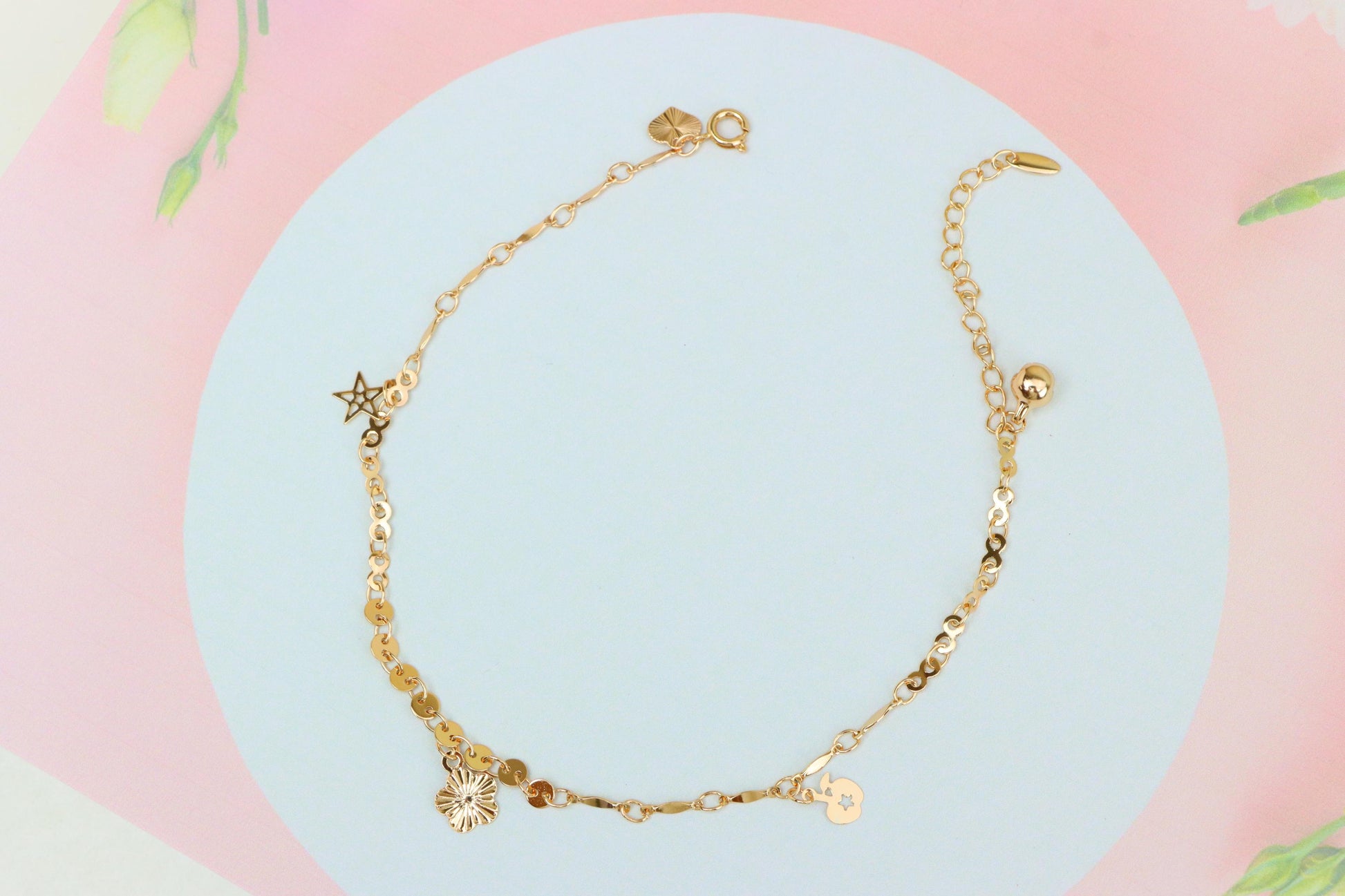 Rose Gold Anklet with Star & Charm Details, Adjustable Chain Design, XPAL1071