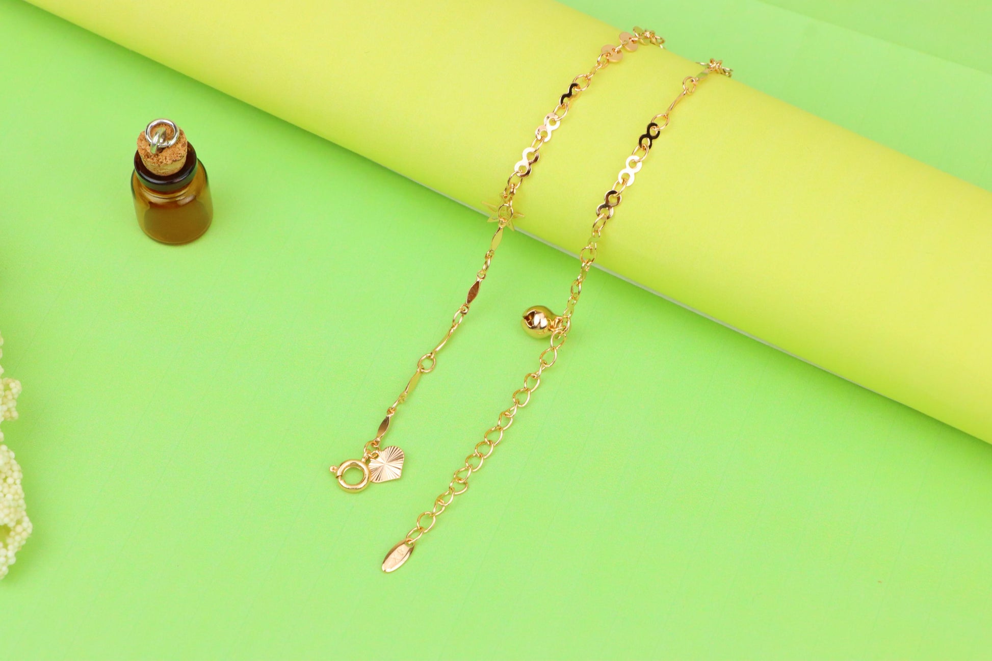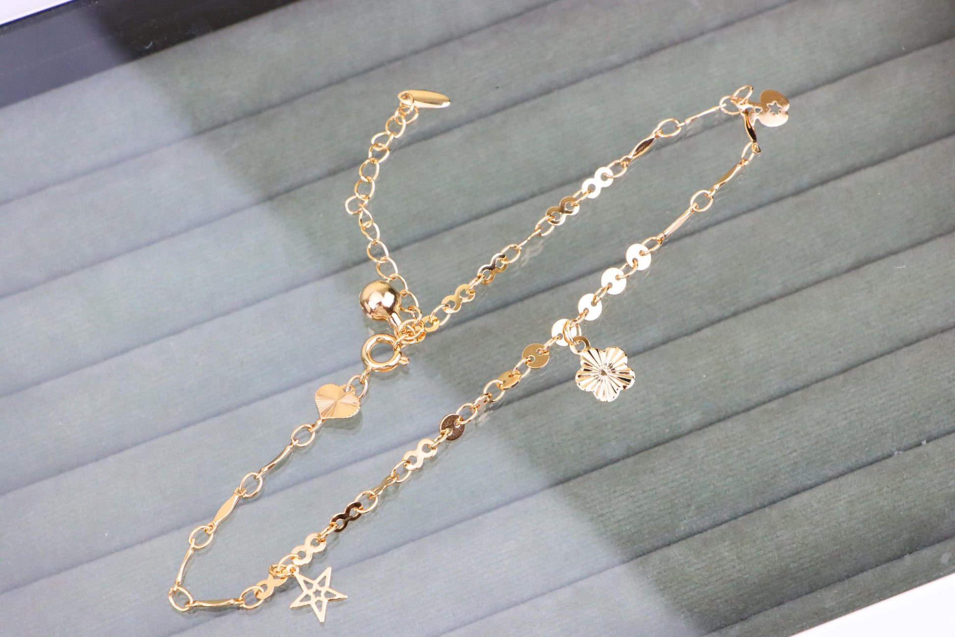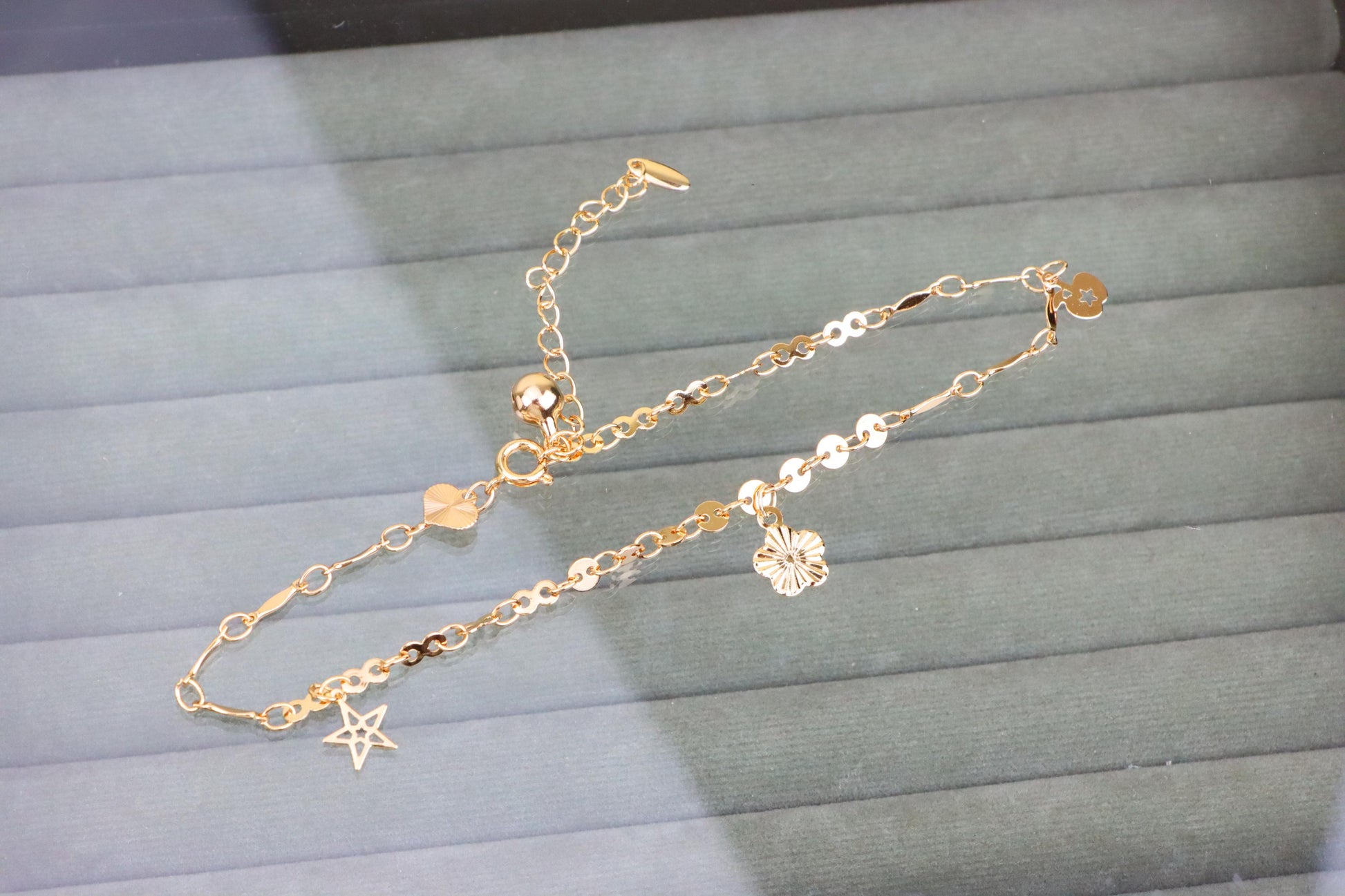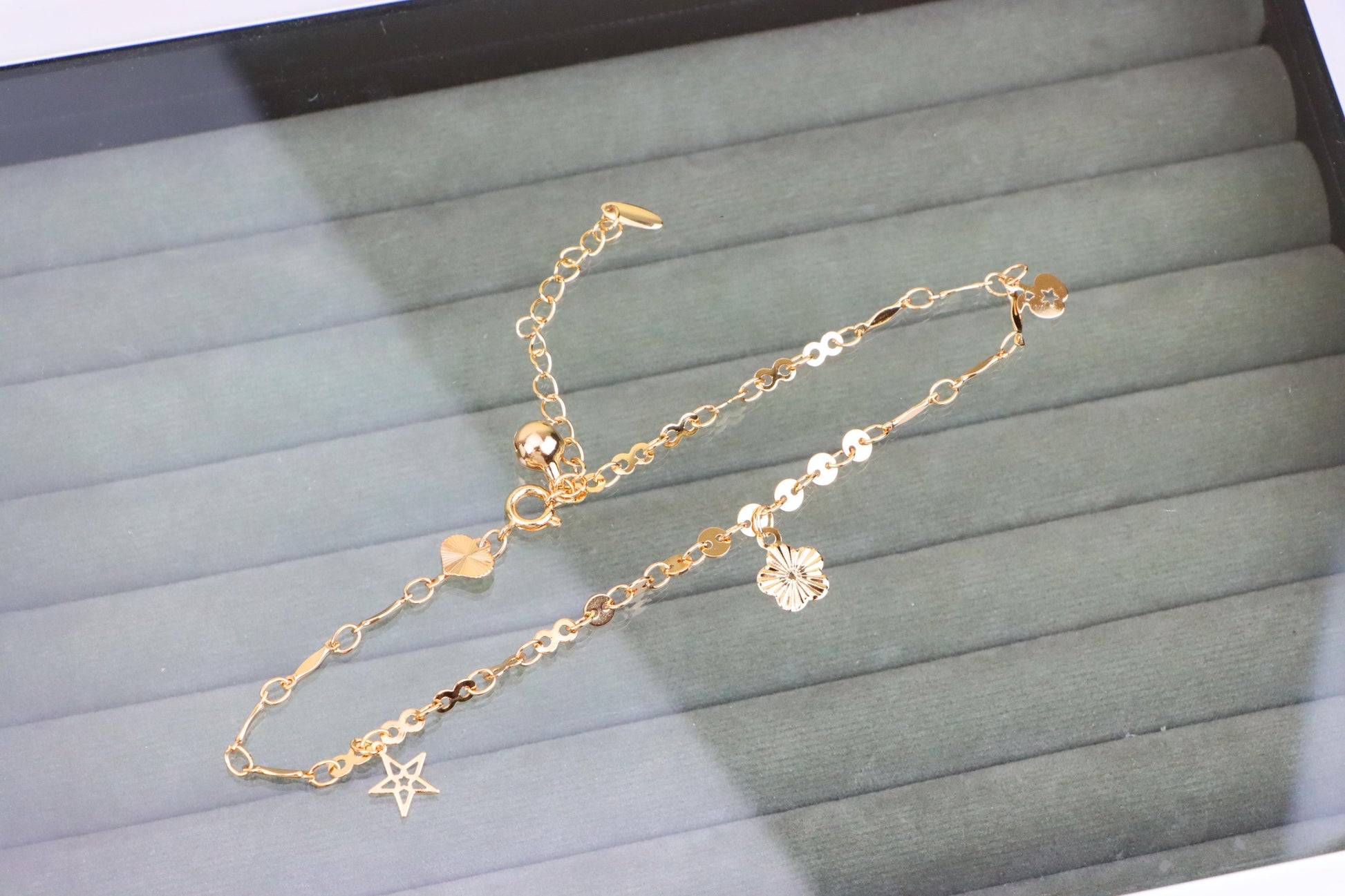 Add a touch of charm to your look with this beautifully designed rose gold anklet, featuring delicate star and engraved motifs.