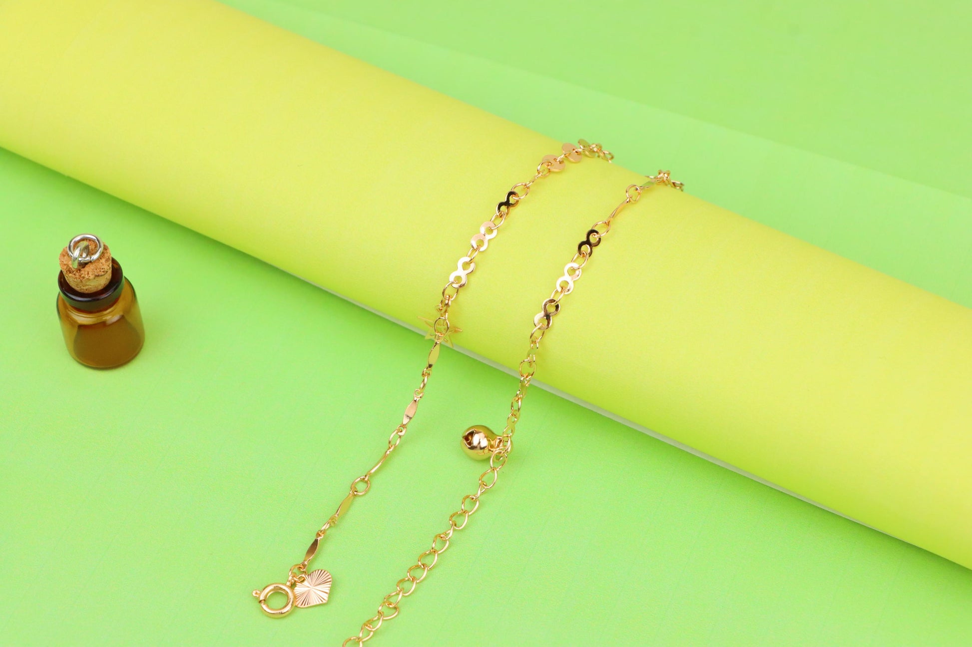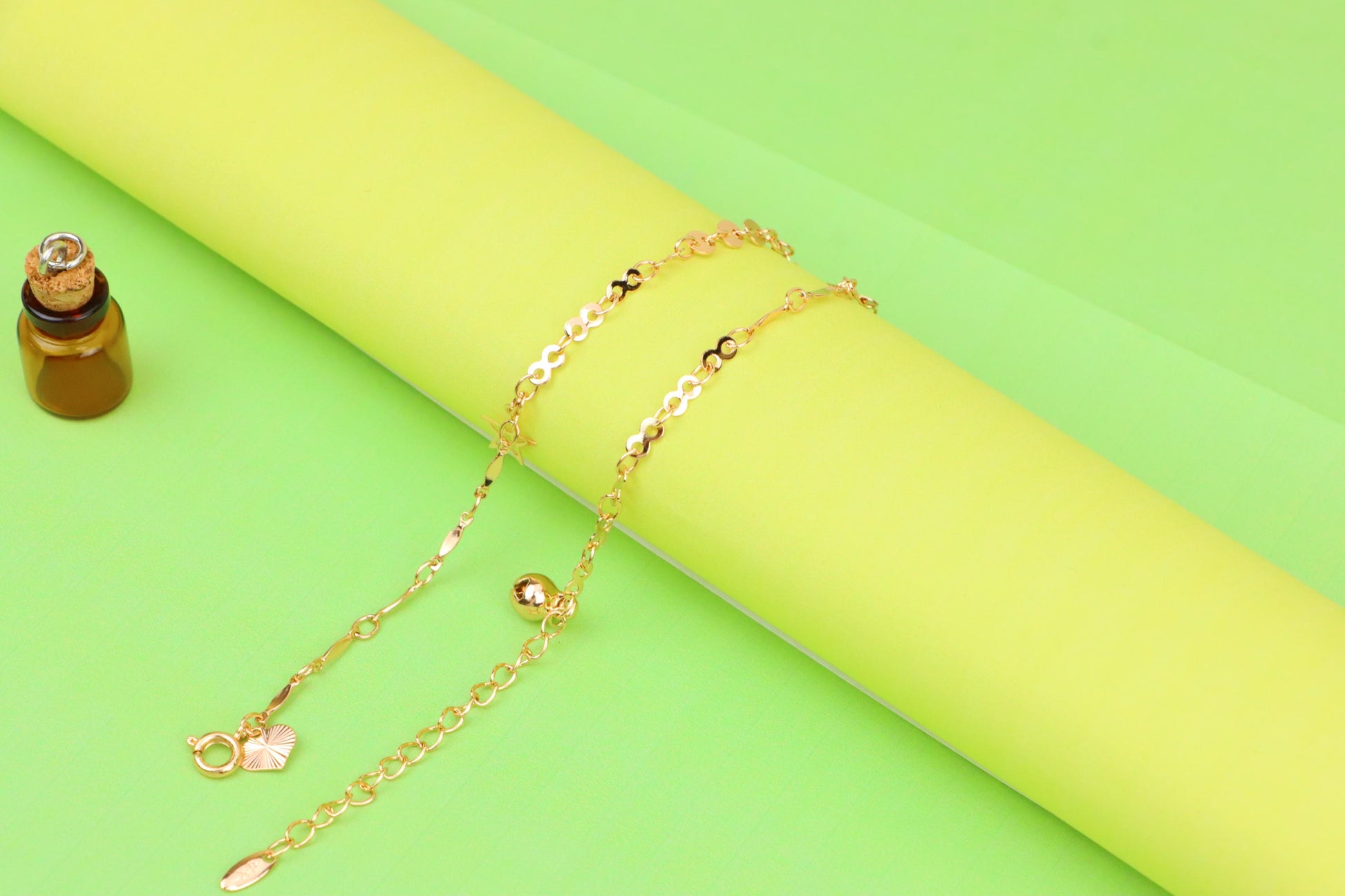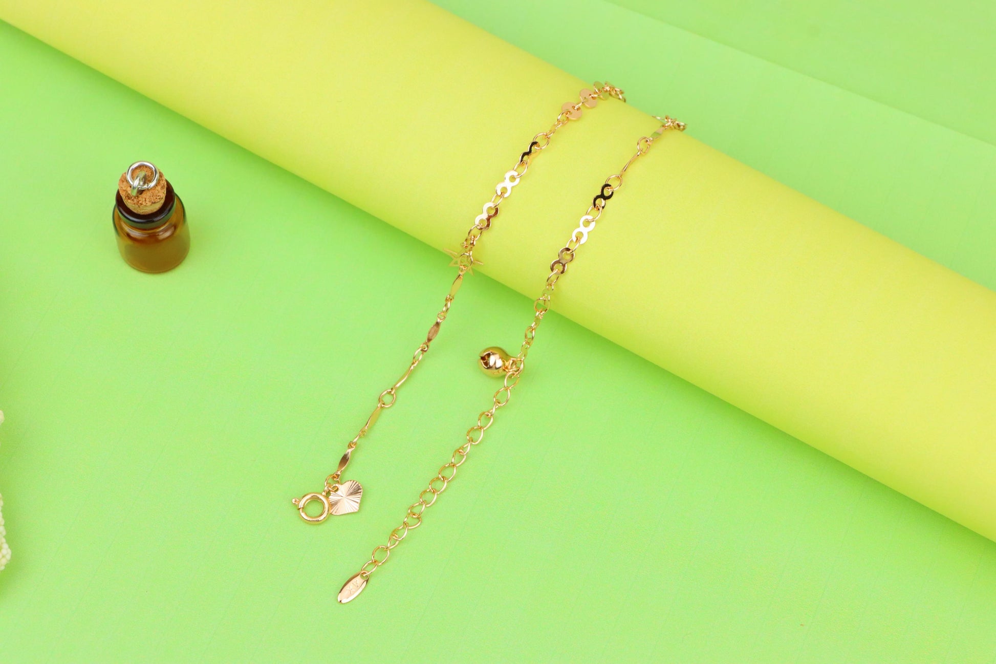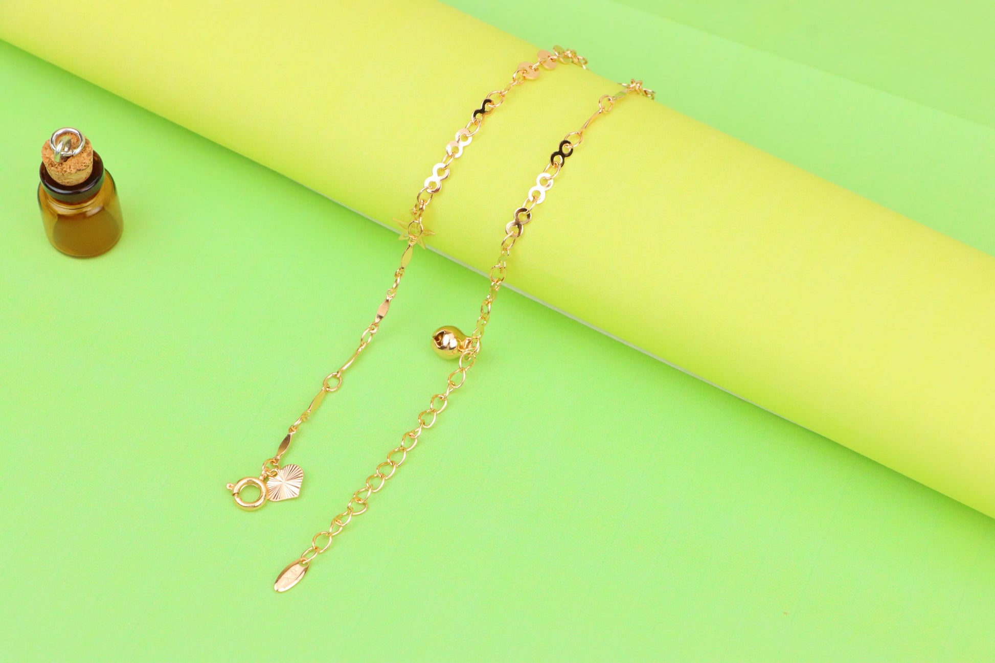 Add a touch of charm to your look with this beautifully designed rose gold anklet, featuring delicate star and engraved motifs.