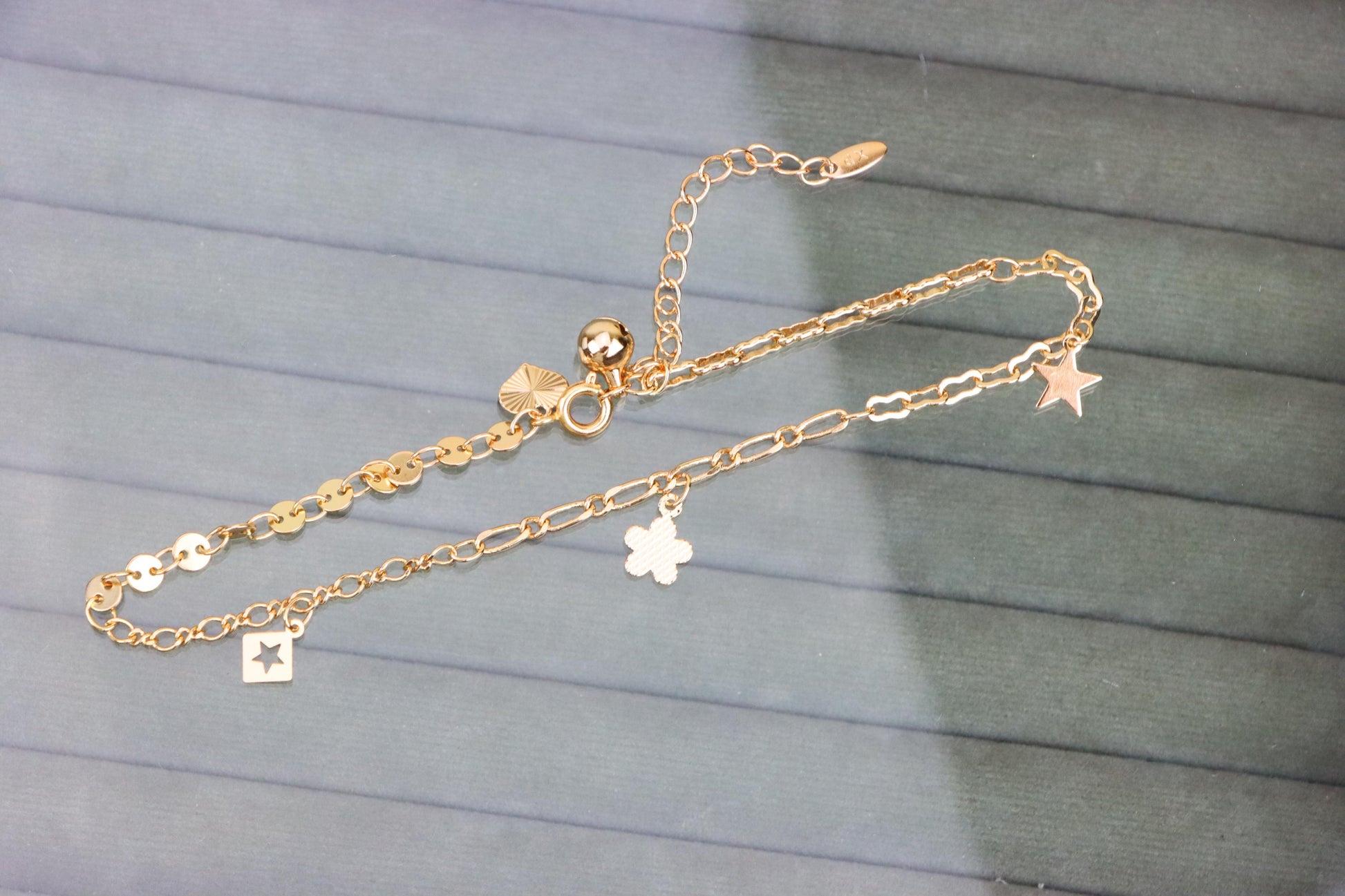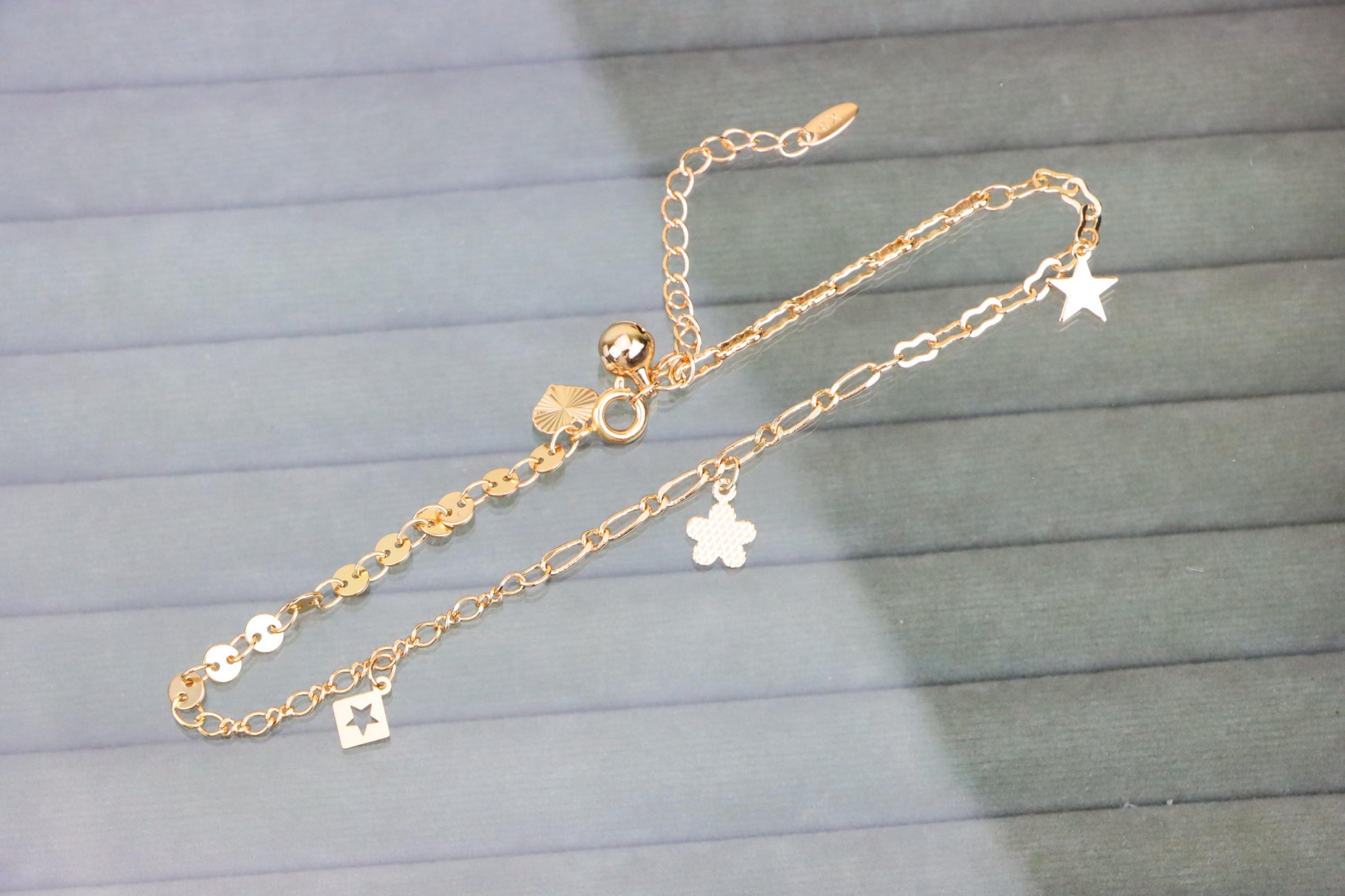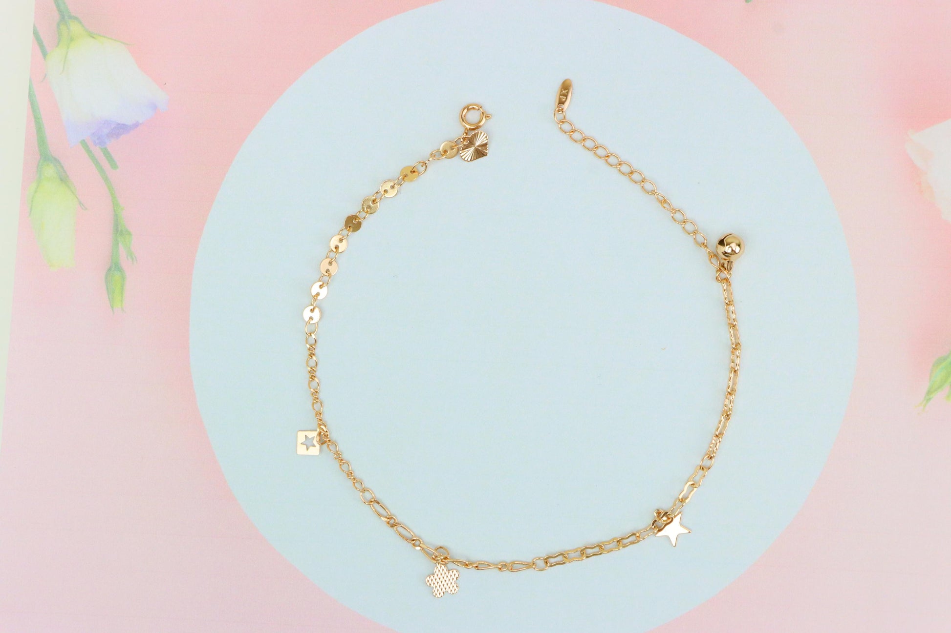Rose Gold Anklet with Star Charms & Shiny Links, XPAL1170