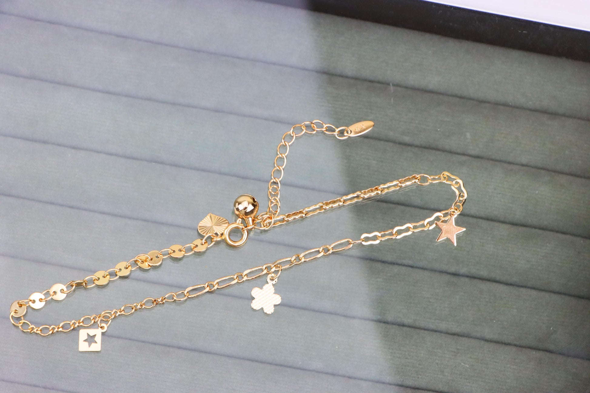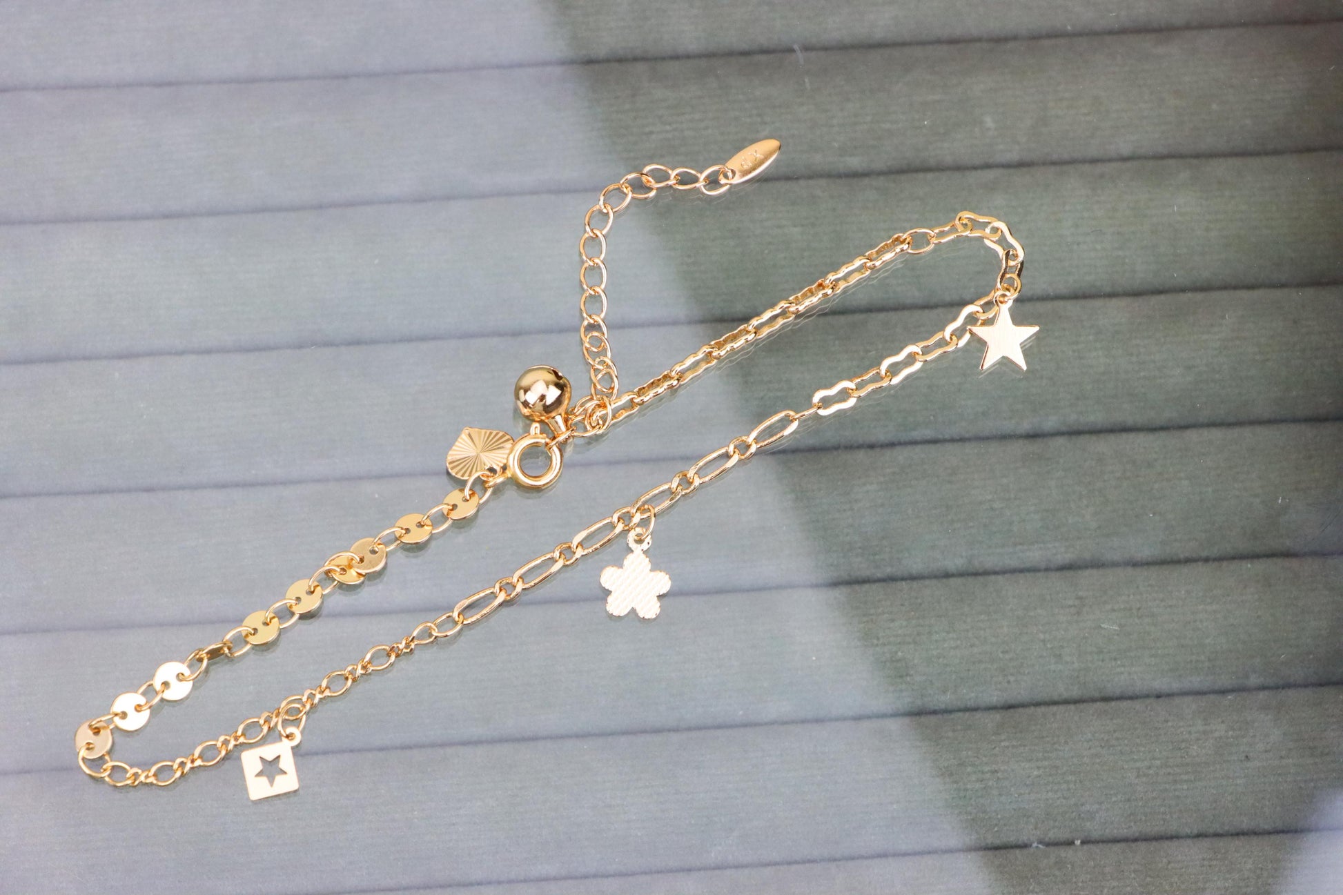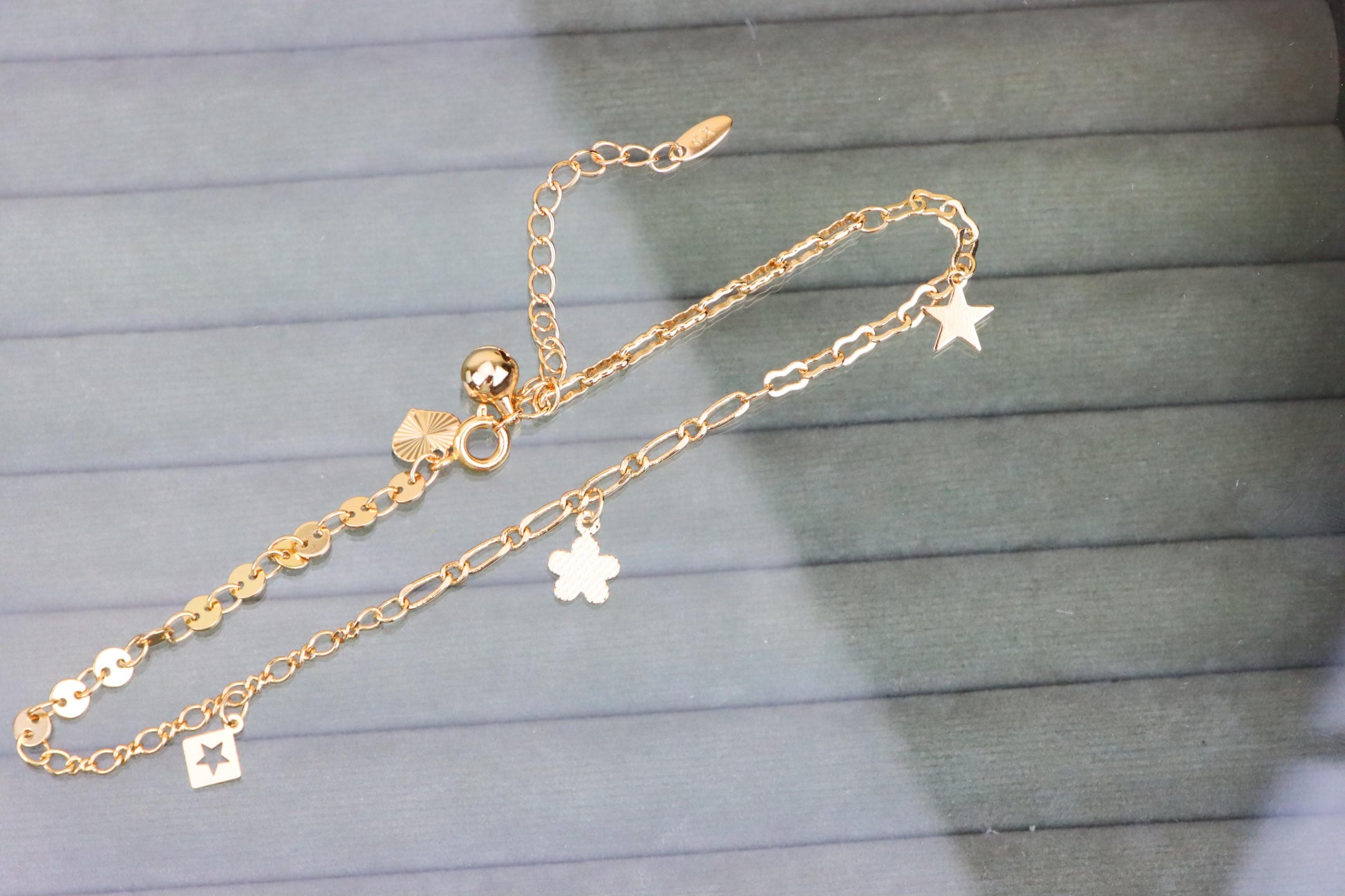 Rose Gold Anklet with Star Charms & Shiny Links, XPAL1170