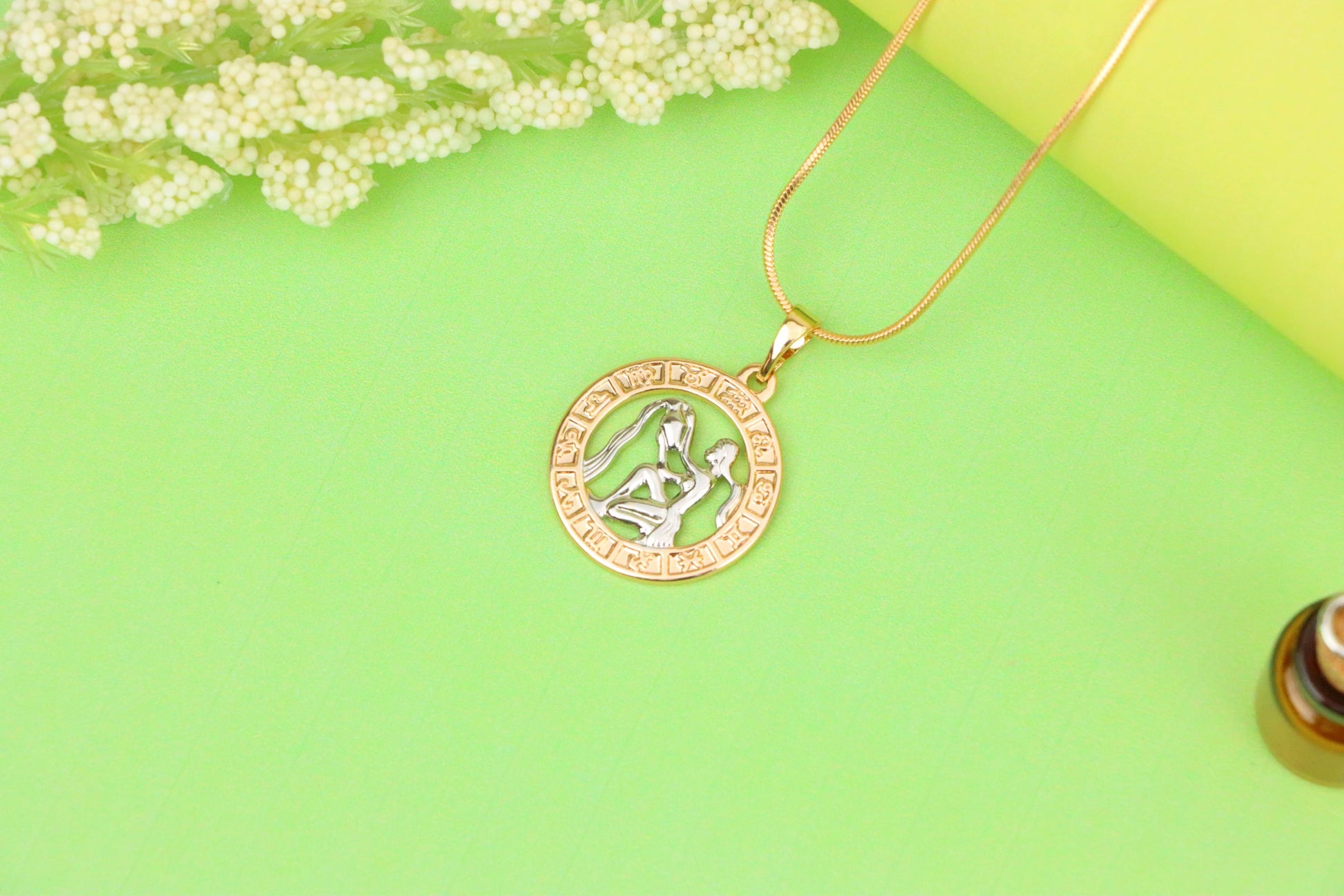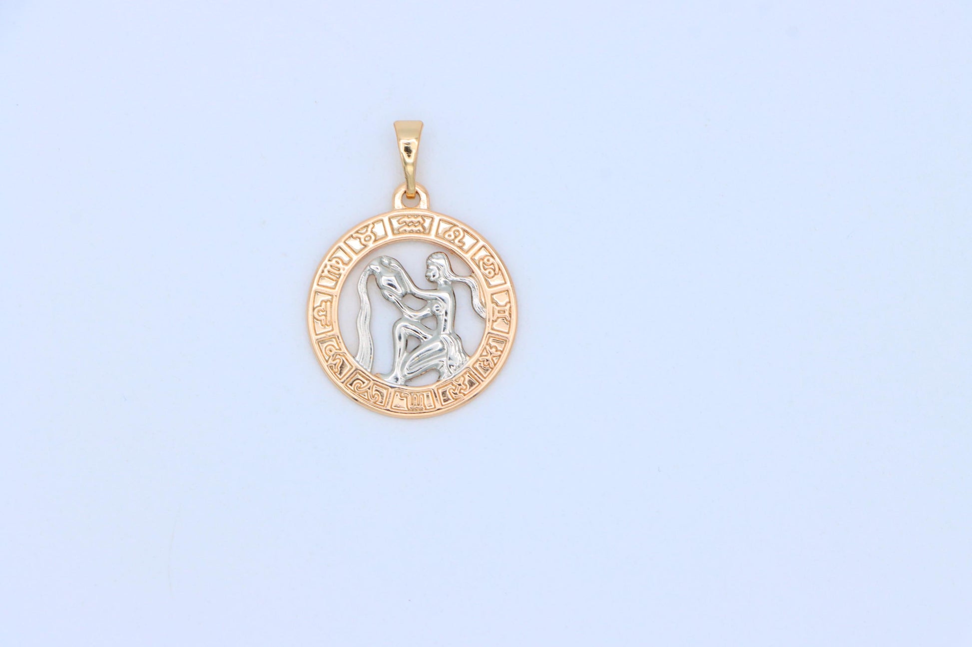Rose Gold Aquarius Zodiac Pendant Featuring Water Bearer Symbol, XPPT1455