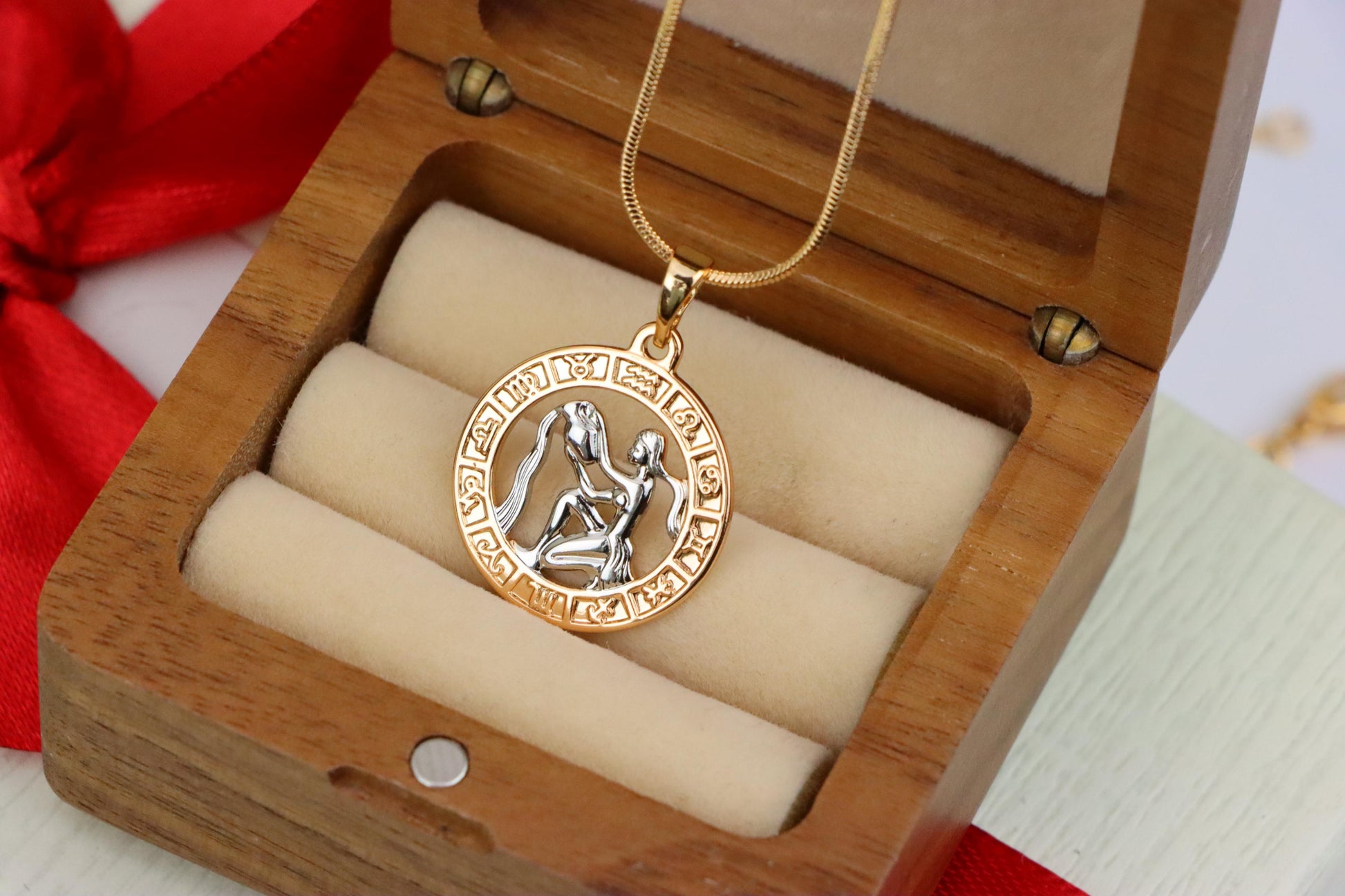 Celebrate your Aquarius spirit with this elegant rose gold zodiac pendant, finely detailed with the water bearer motif.