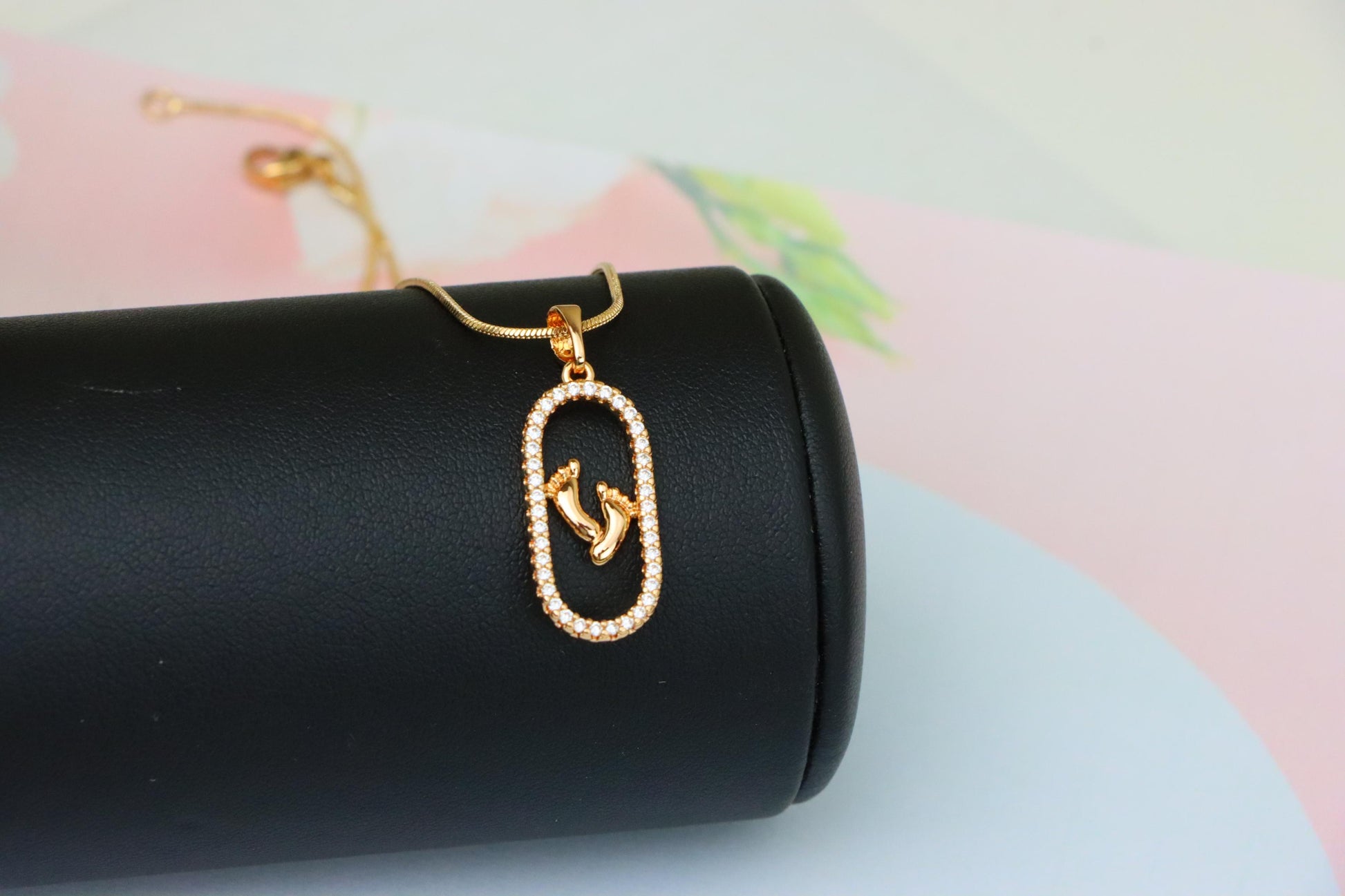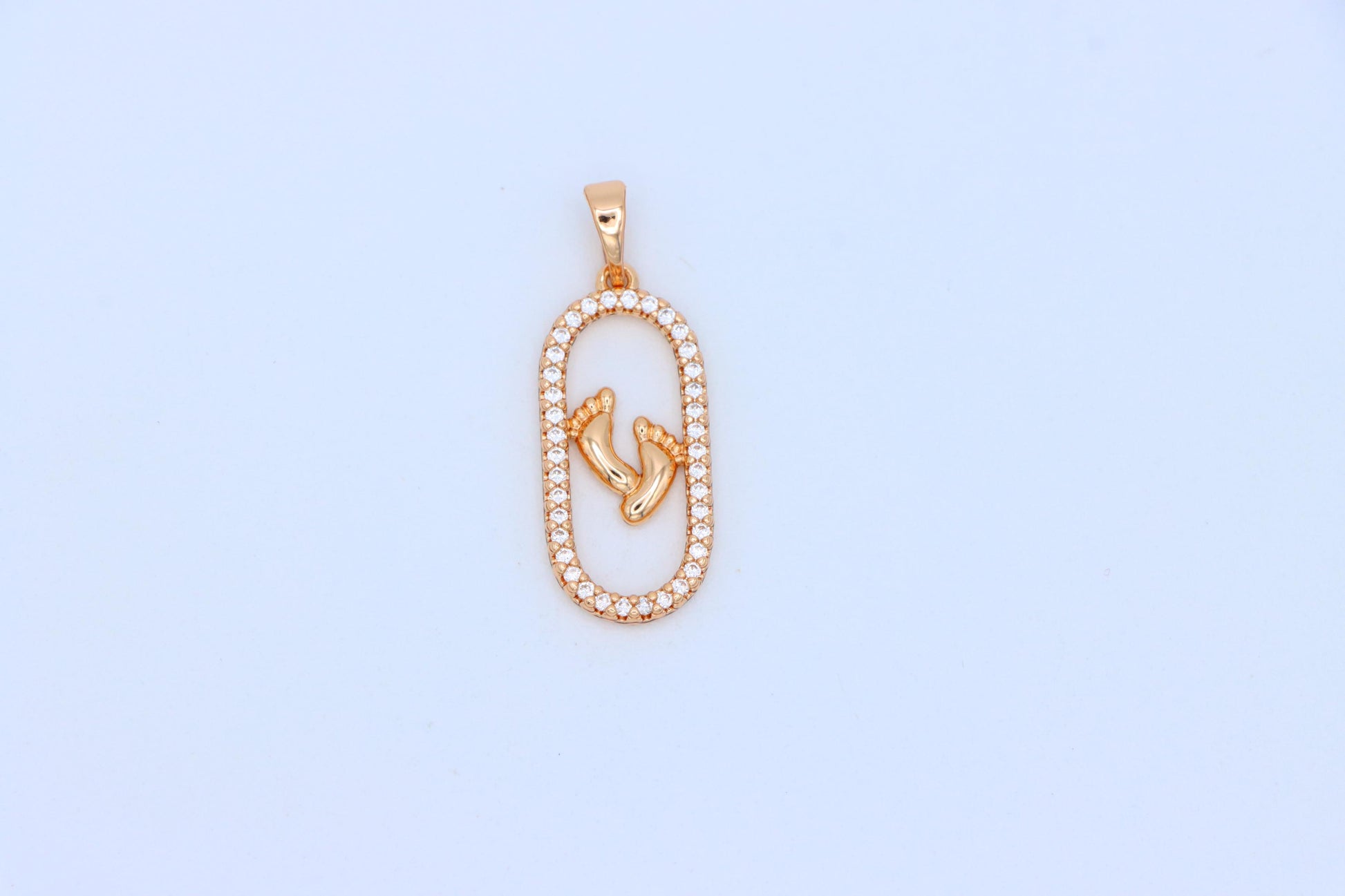 Rose Gold Baby Feet Pendant in Sparkling Oval Frame with CZ Accents, XPPT1528
