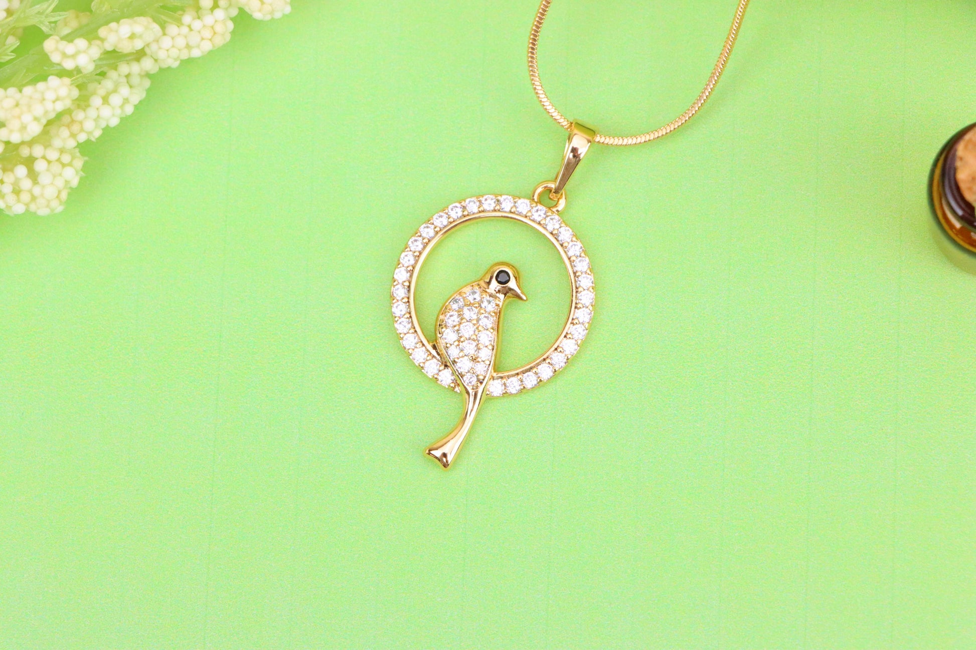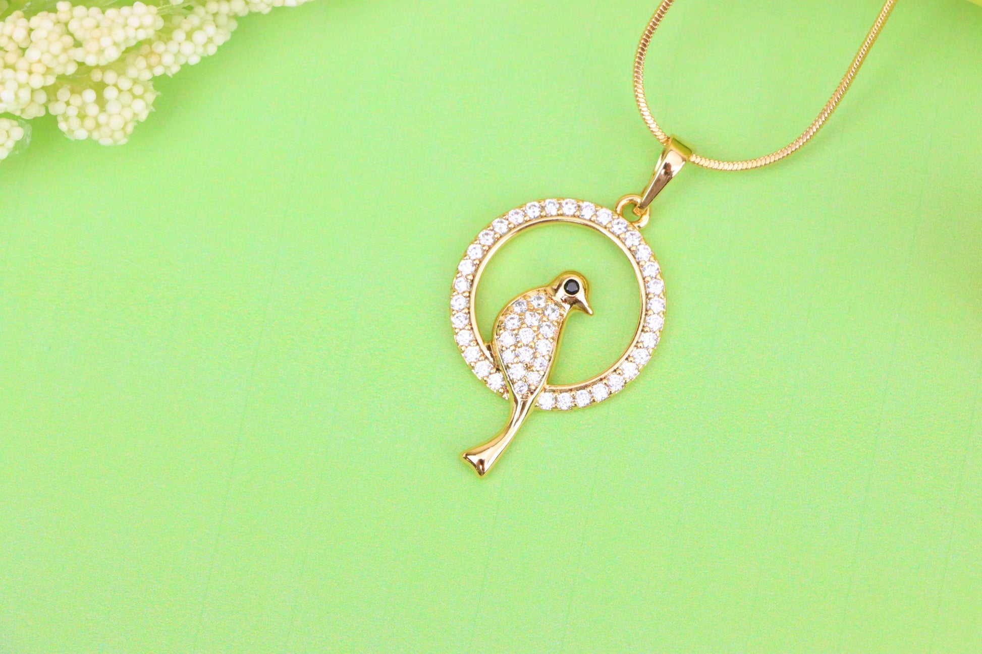 Gracefully designed bird pendant perched inside a shimmering crystal frame, combining elegance and symbolism in one striking accessory.