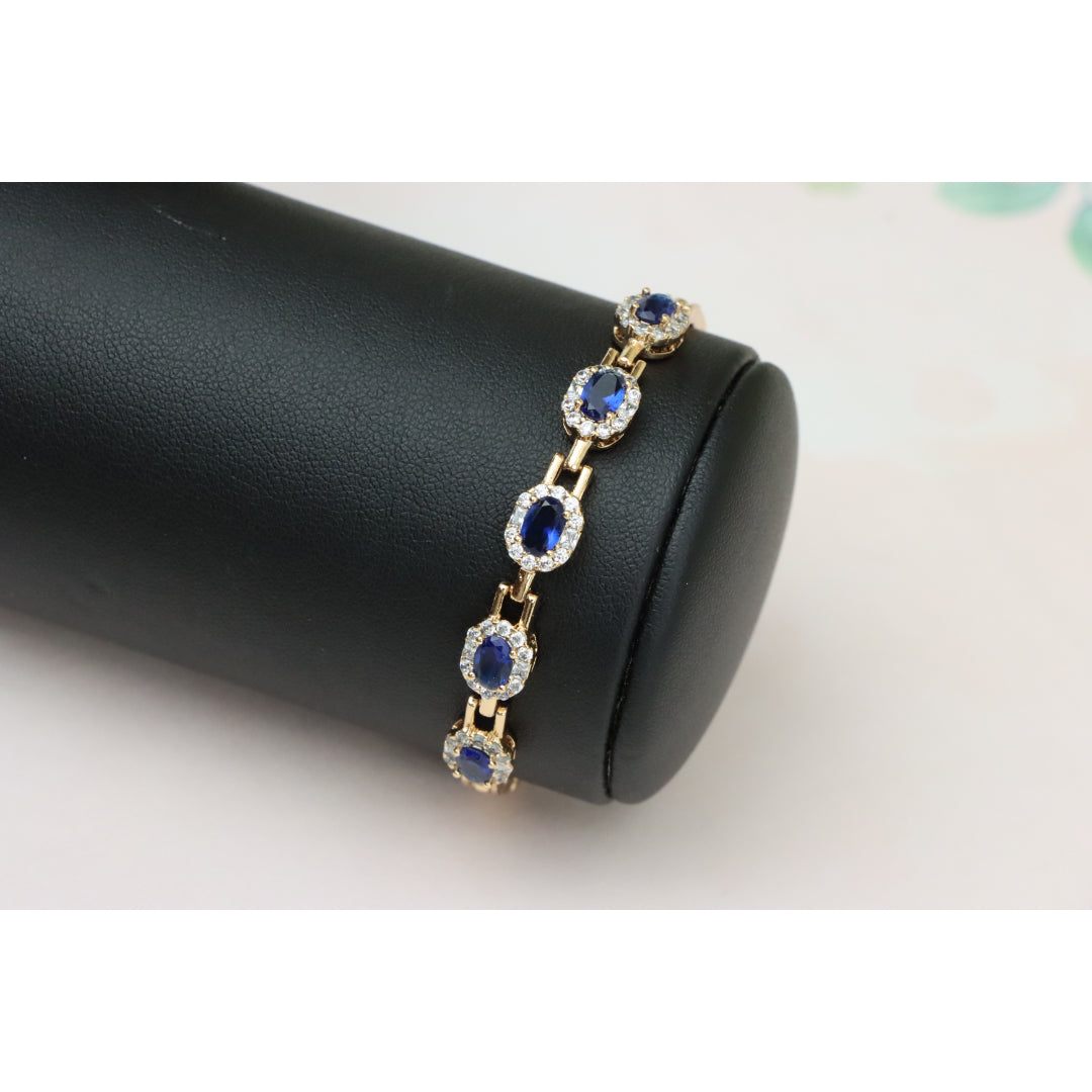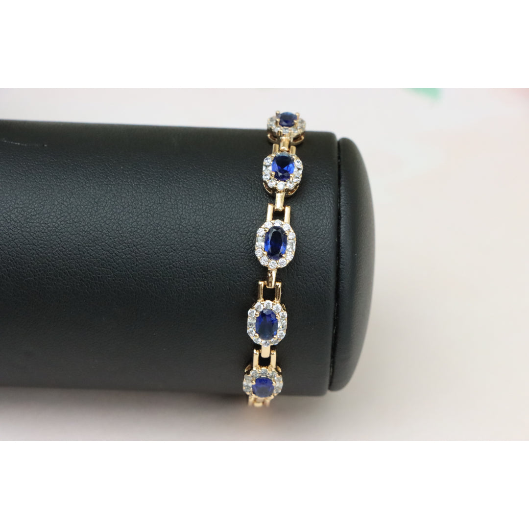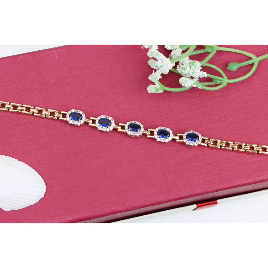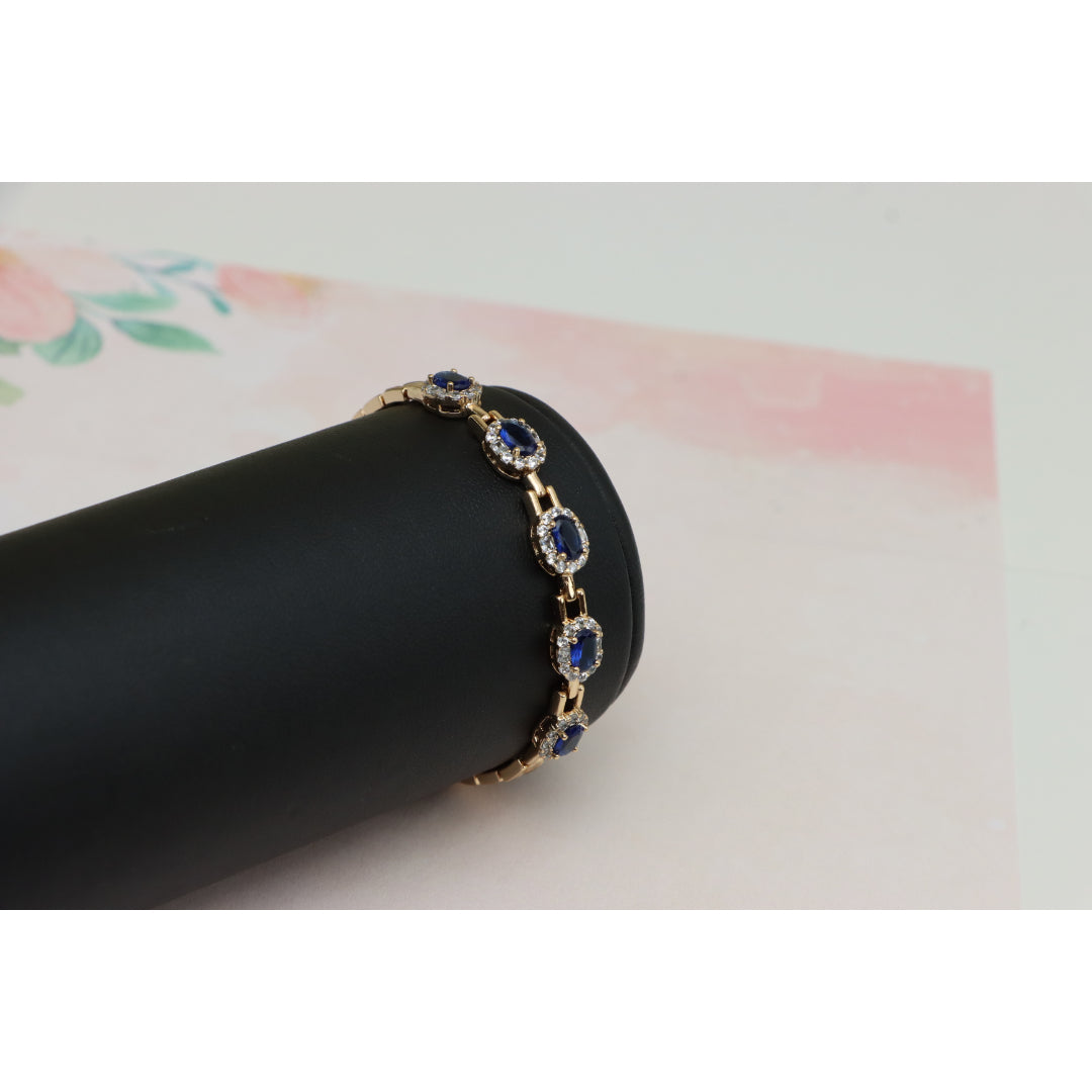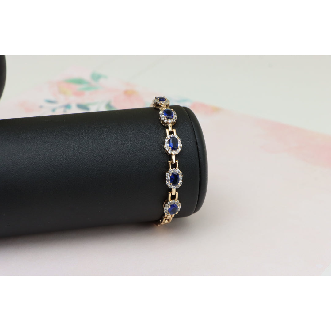 Elegant bracelet featuring deep blue oval stones surrounded by dazzling crystals, set in a refined rose gold finish for a timeless look.