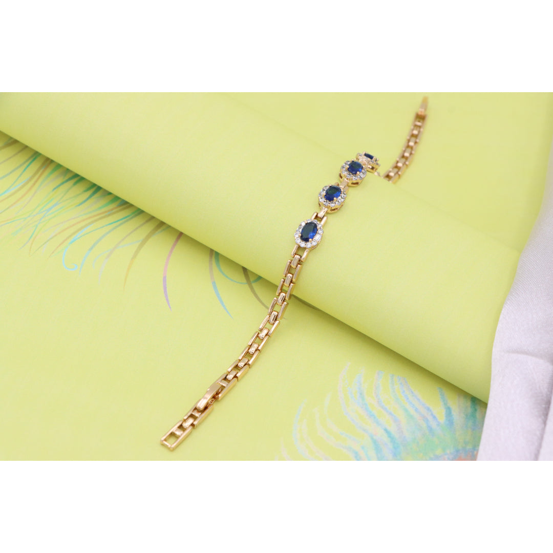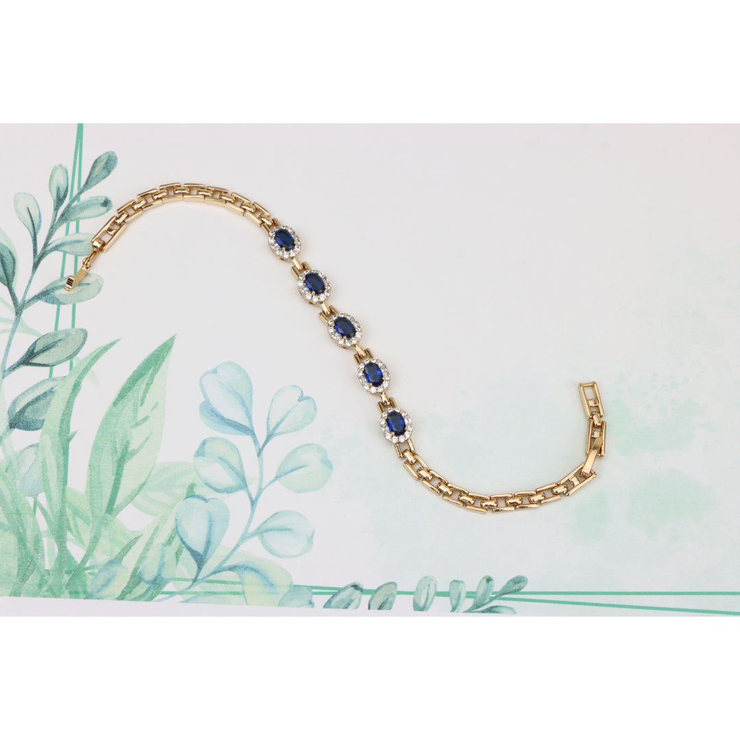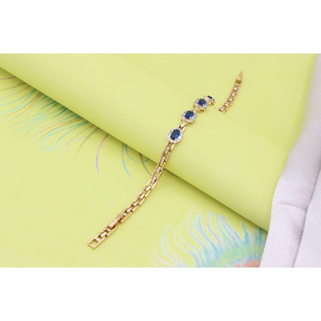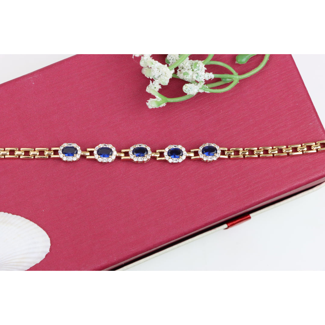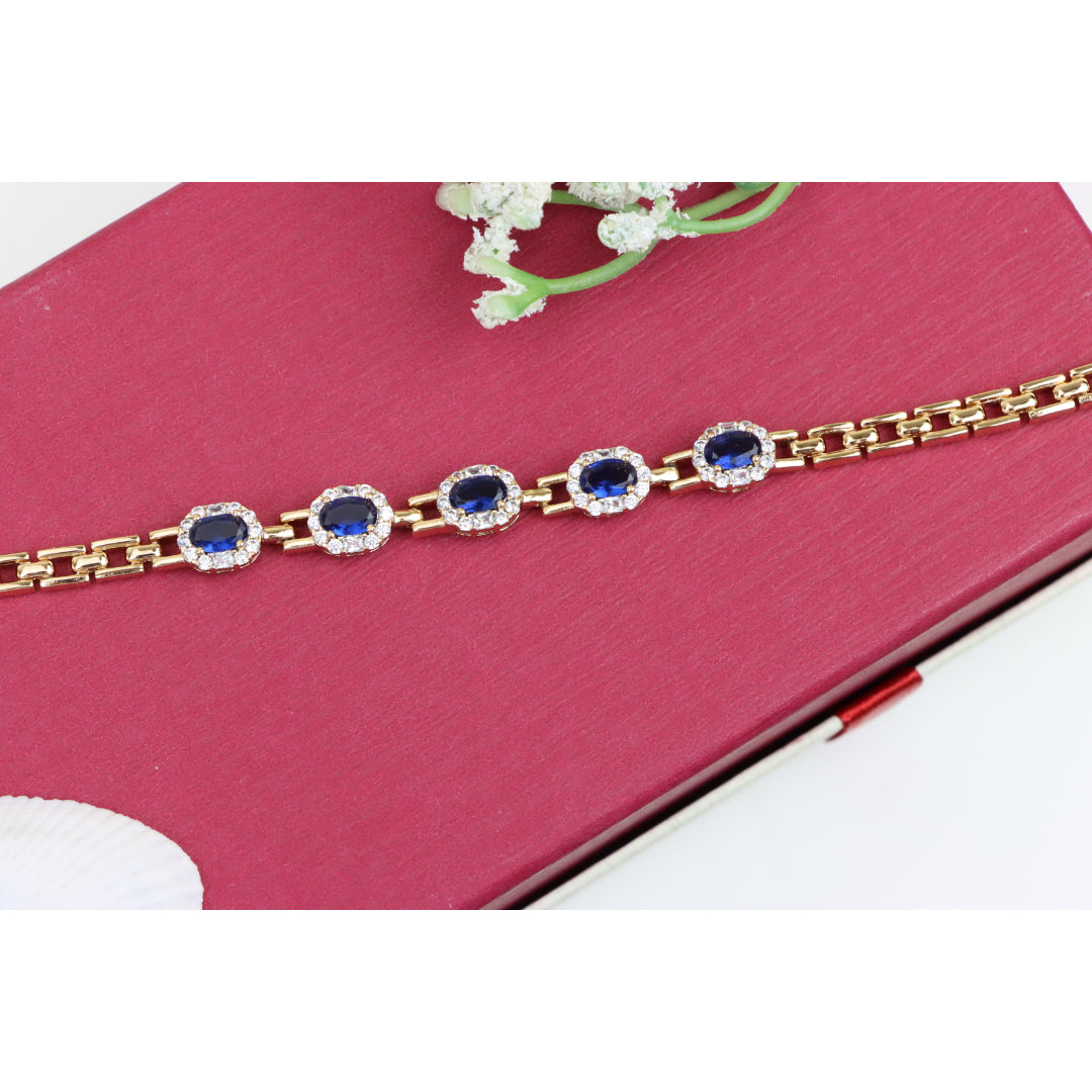 Elegant bracelet featuring deep blue oval stones surrounded by dazzling crystals, set in a refined rose gold finish for a timeless look.