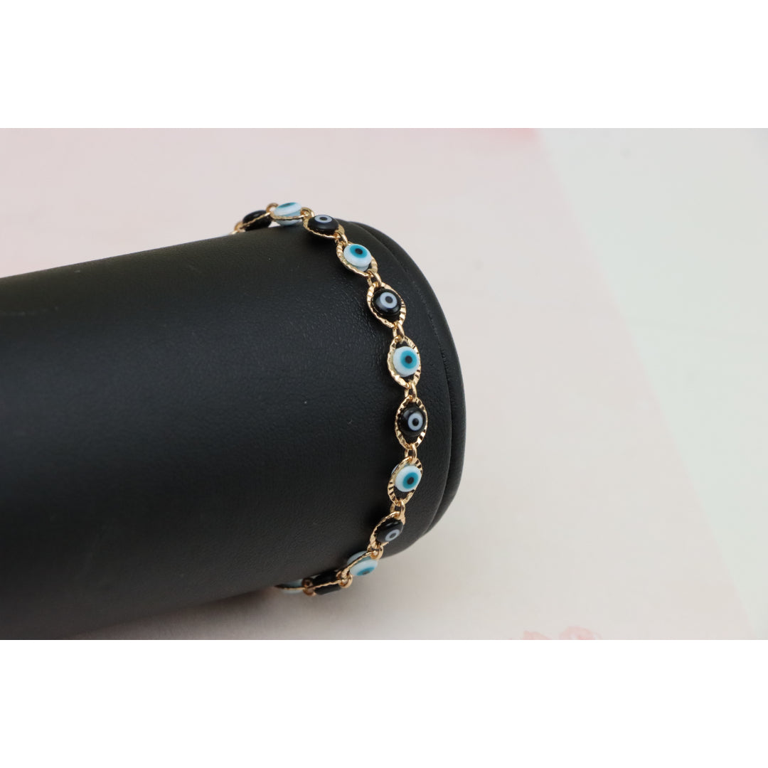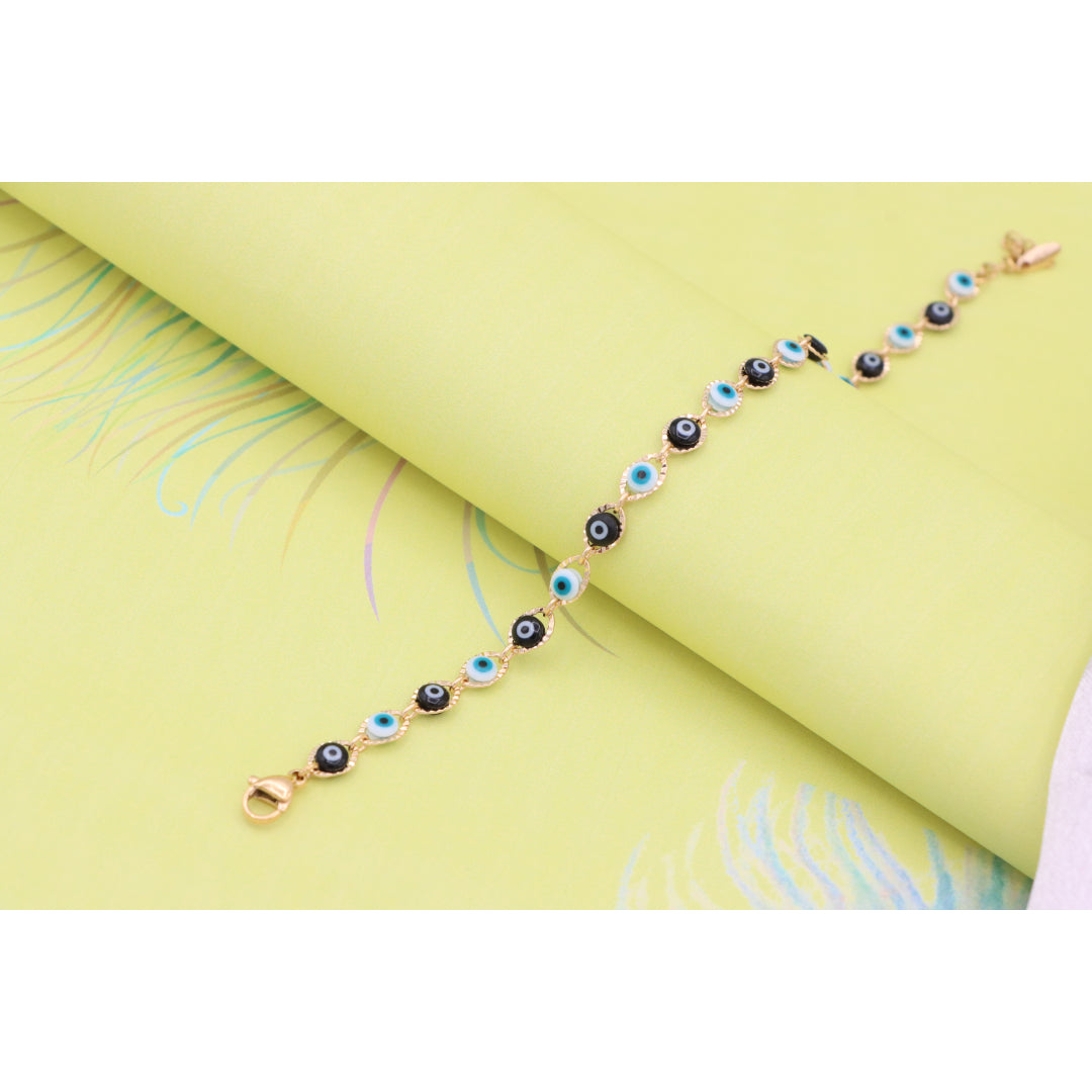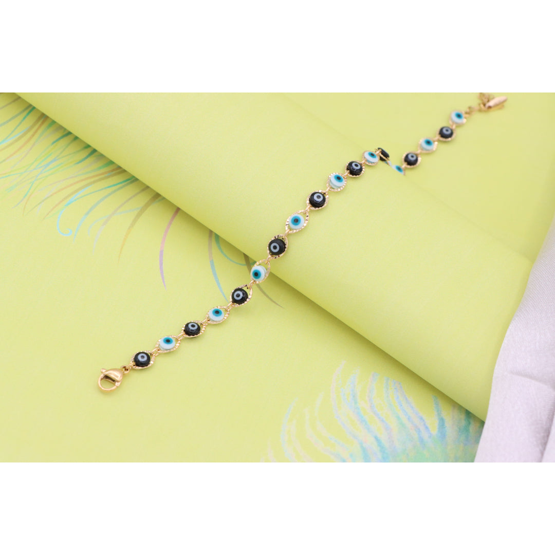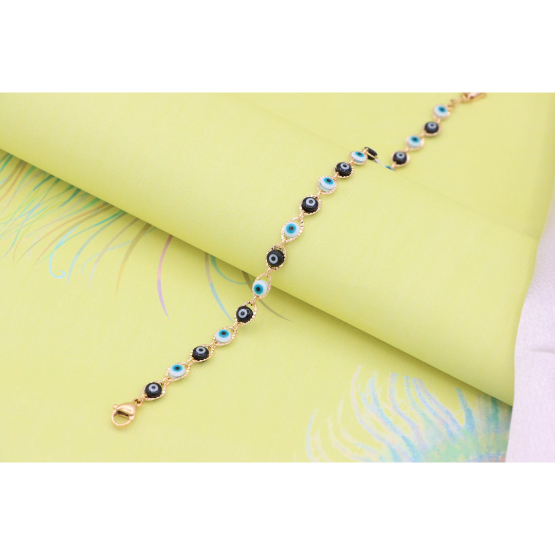 A protective and fashionable accessory, this dual-tone evil eye bracelet blends traditional symbolism with modern style.
