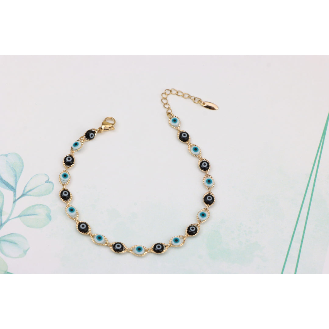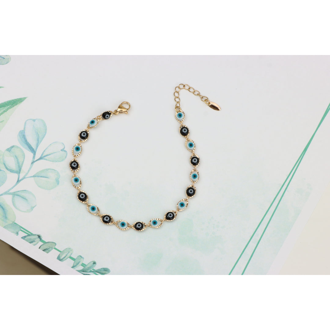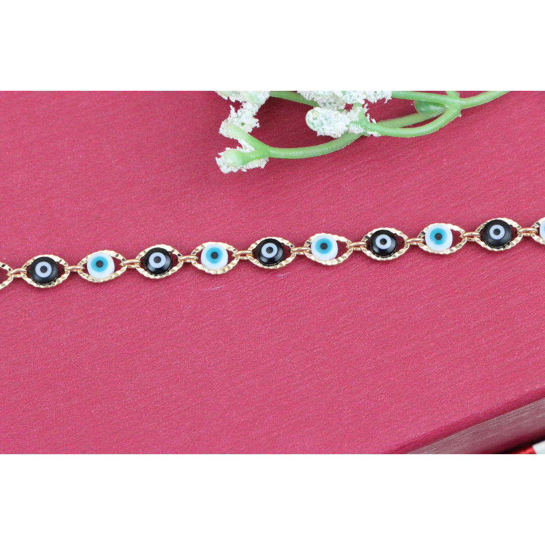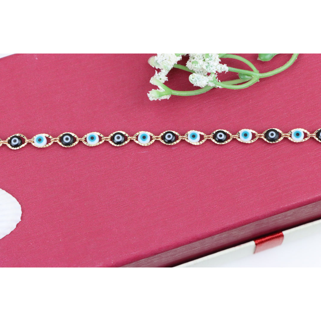 A protective and fashionable accessory, this dual-tone evil eye bracelet blends traditional symbolism with modern style.