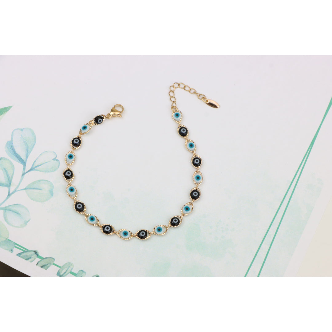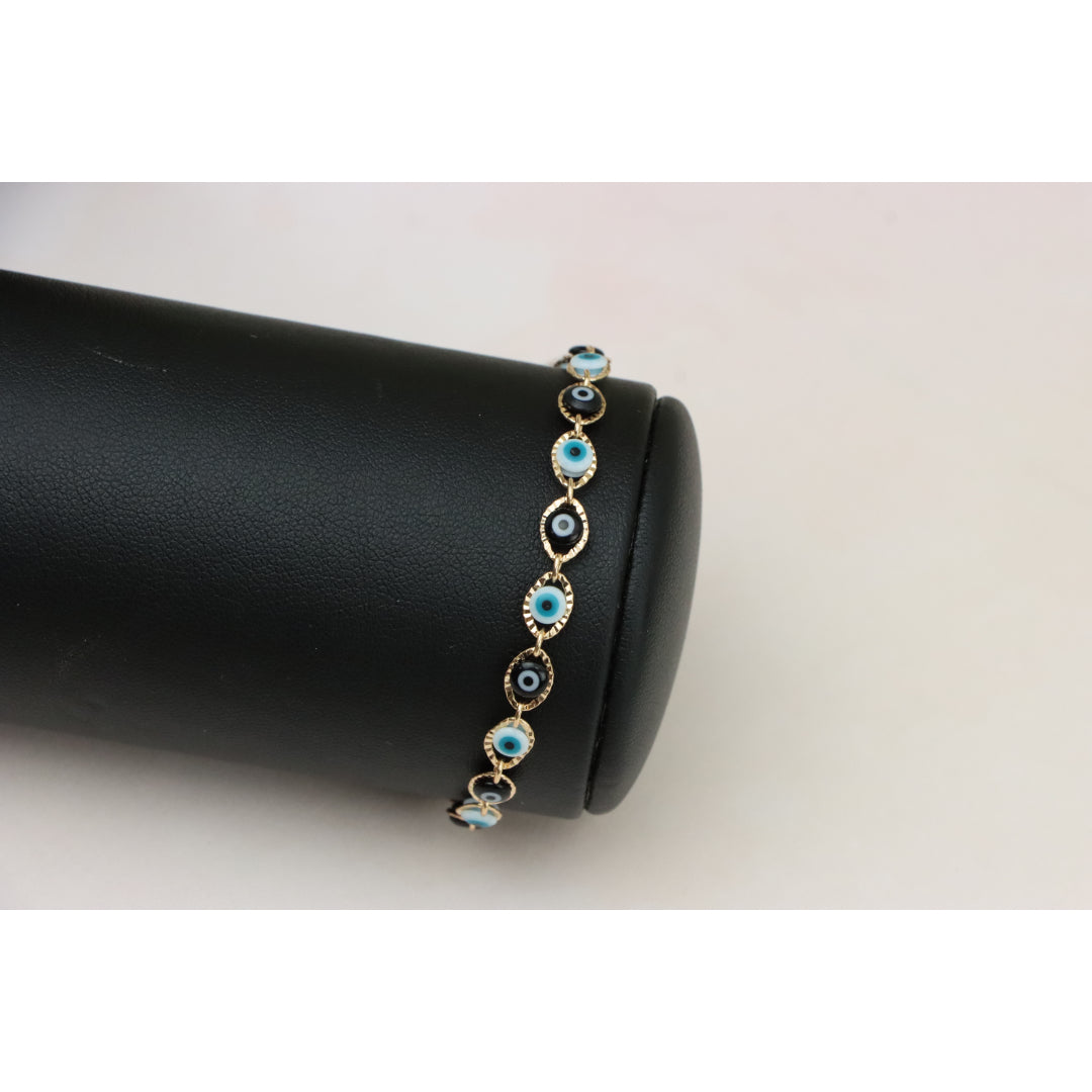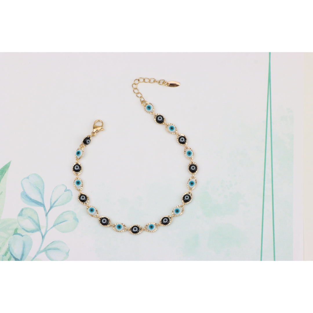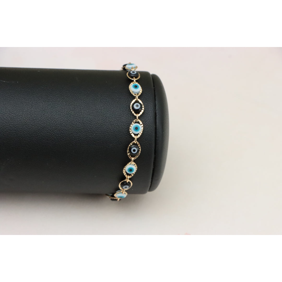 A protective and fashionable accessory, this dual-tone evil eye bracelet blends traditional symbolism with modern style.