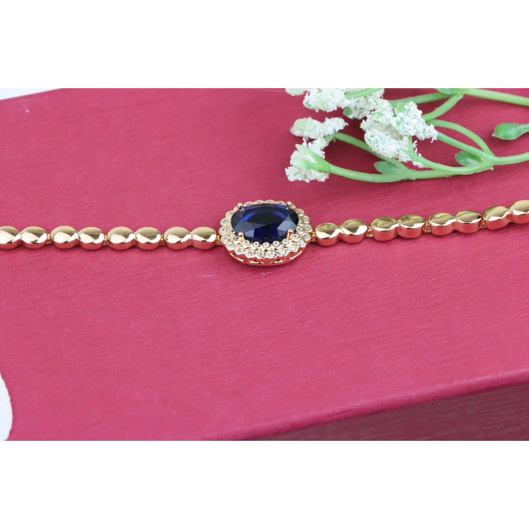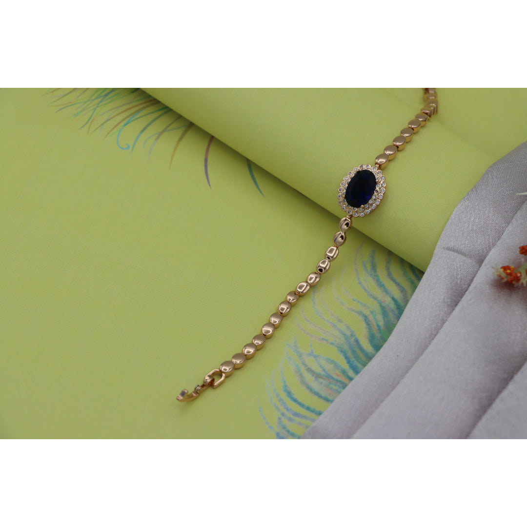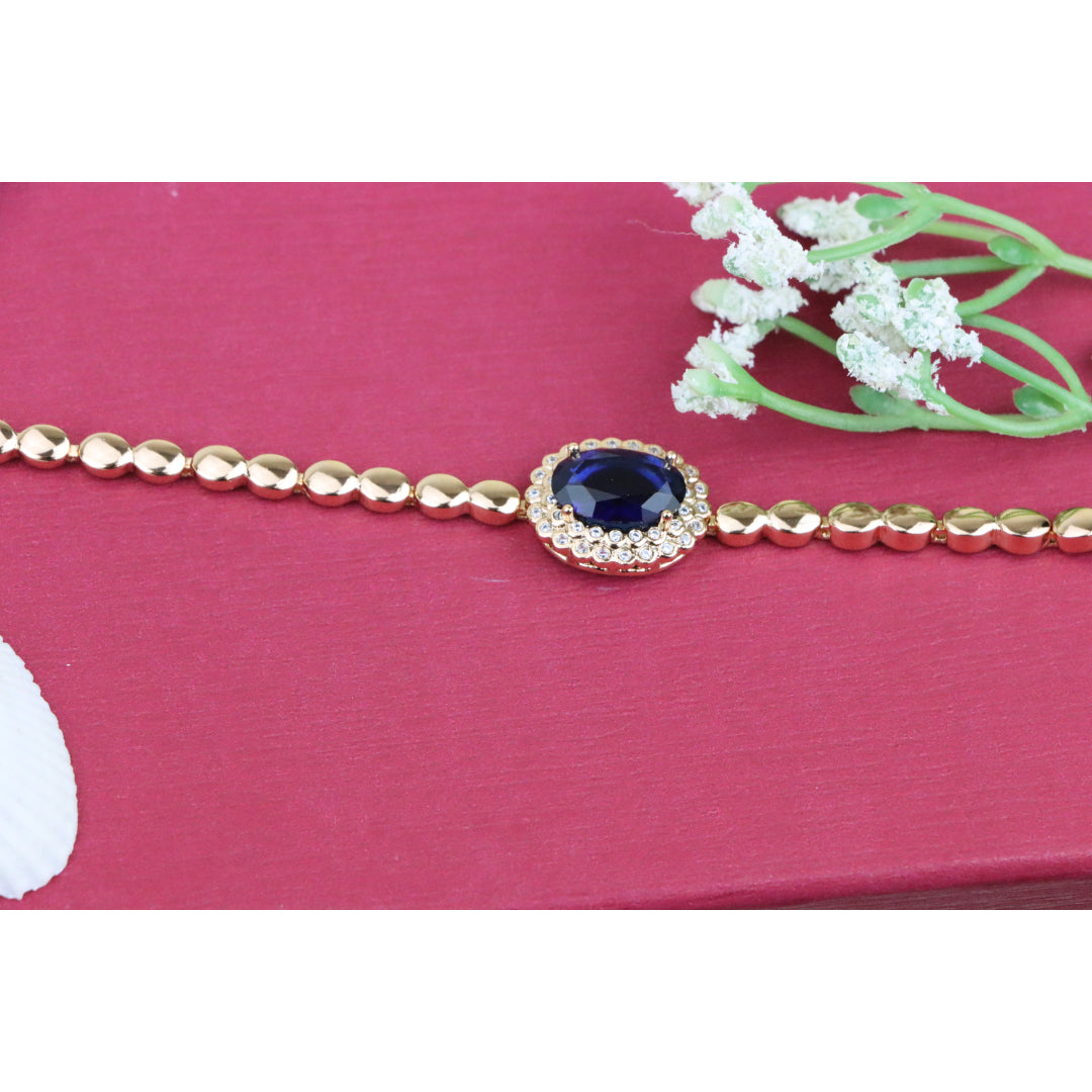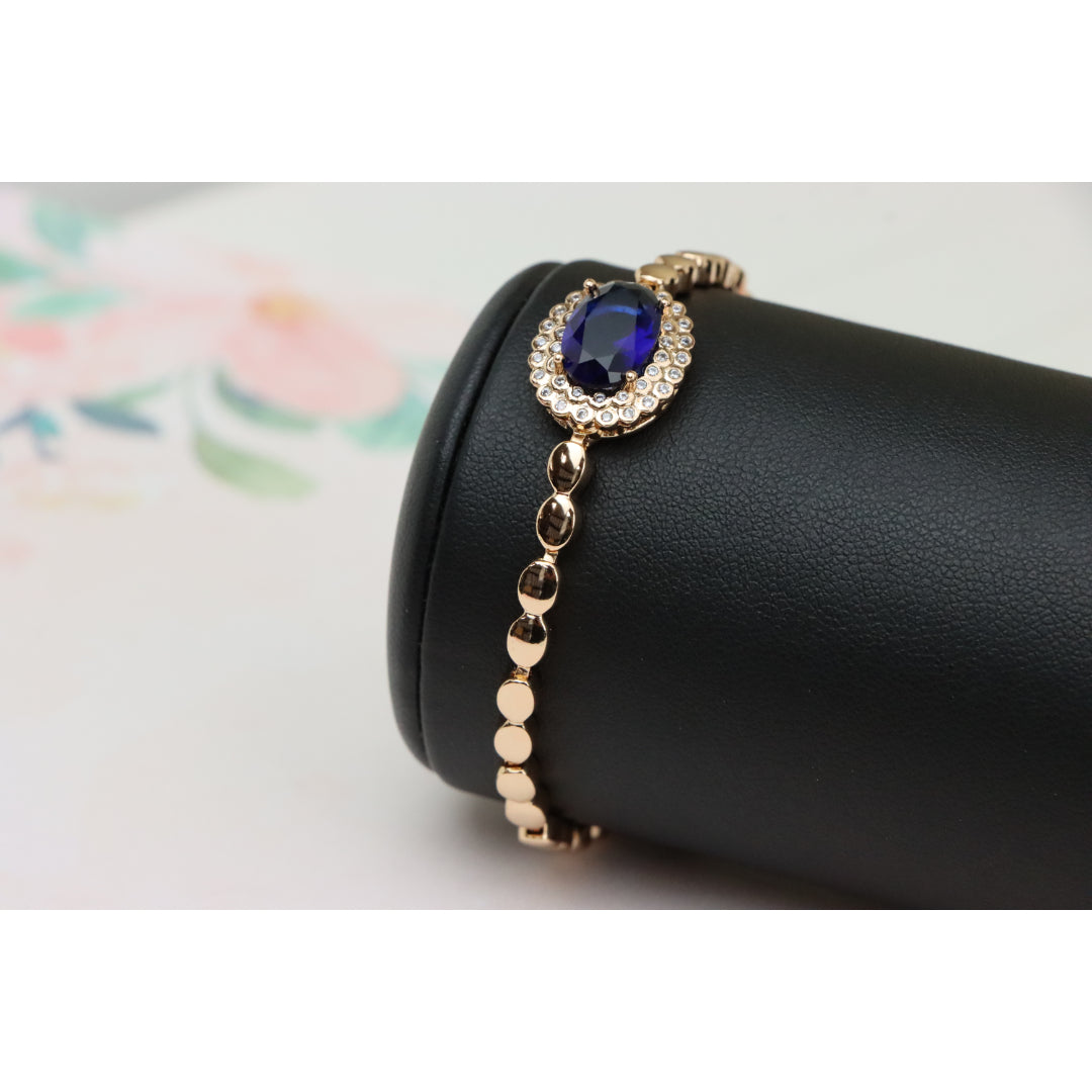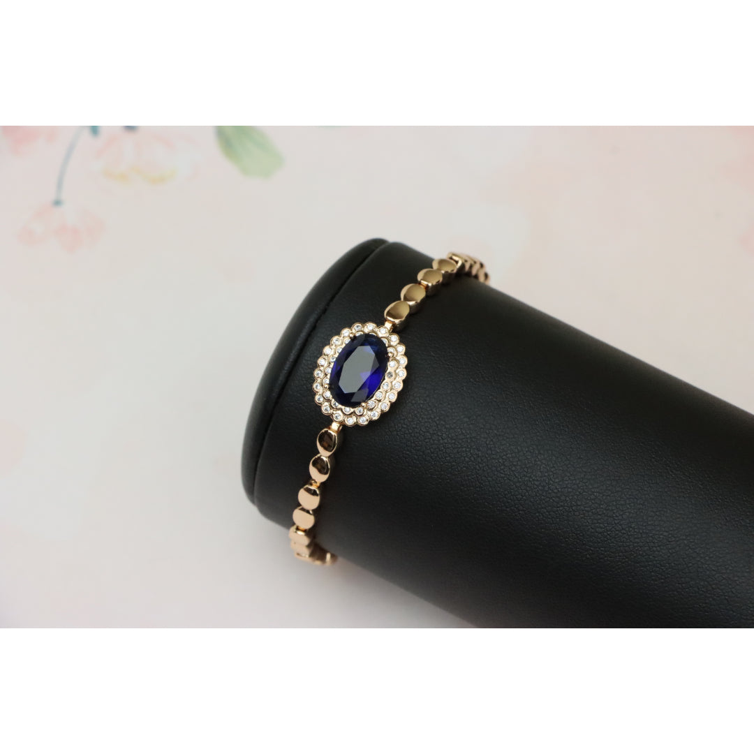 This elegant rose gold bracelet, featuring a deep blue centerpiece surrounded by shimmering stones, brings timeless beauty to every wrist.
