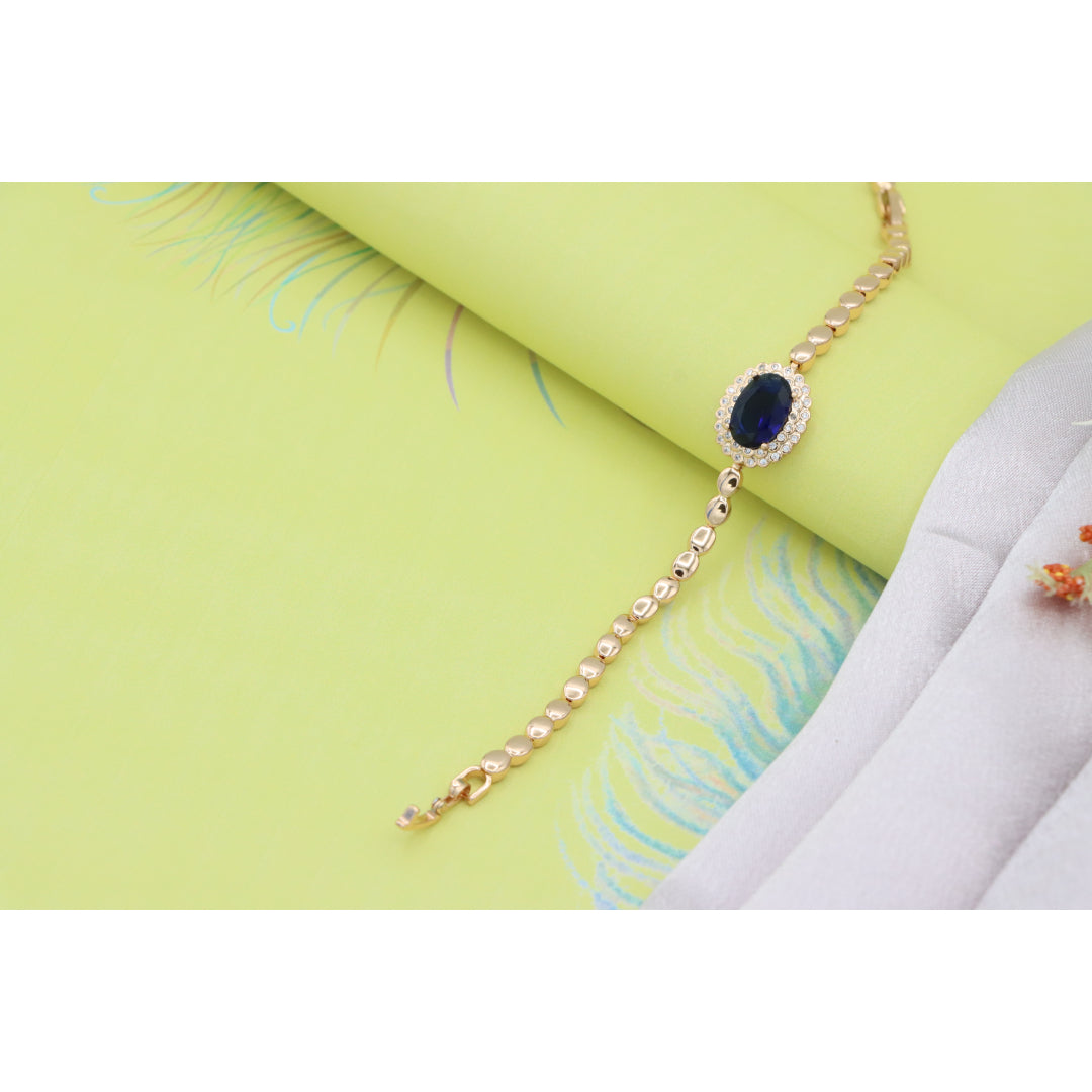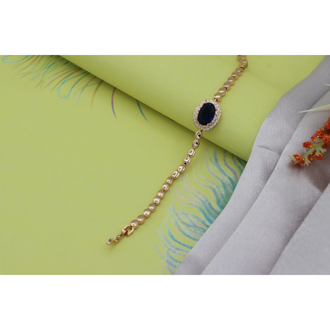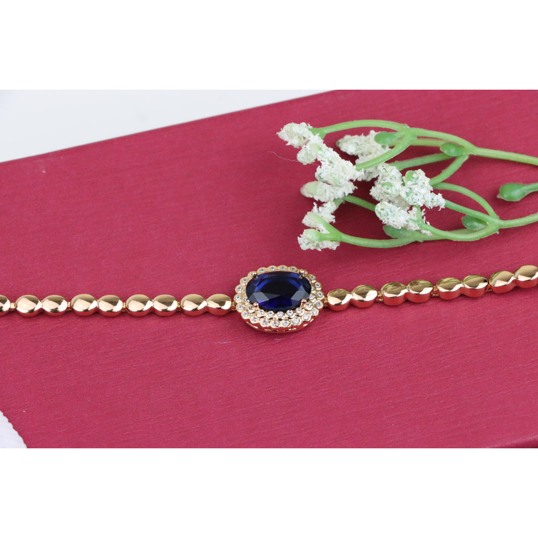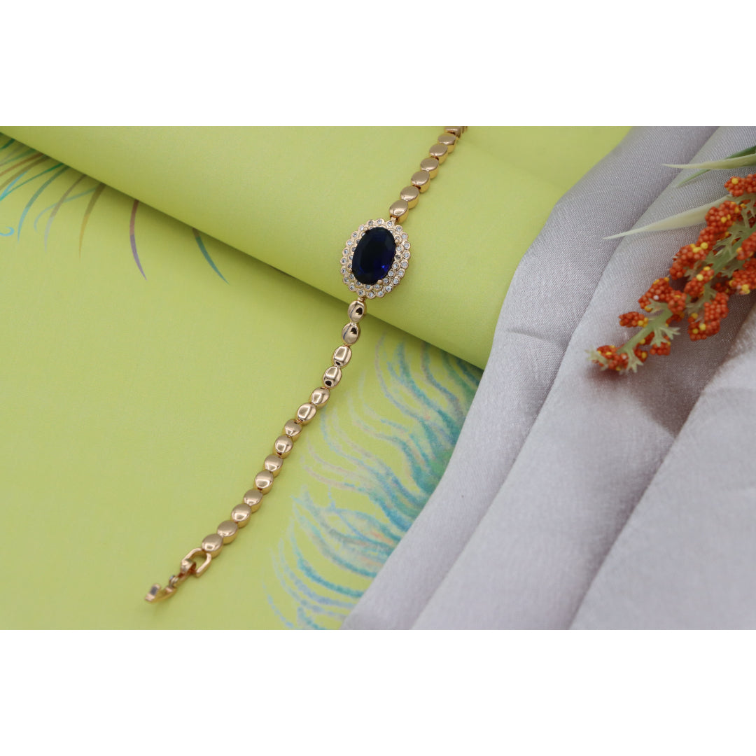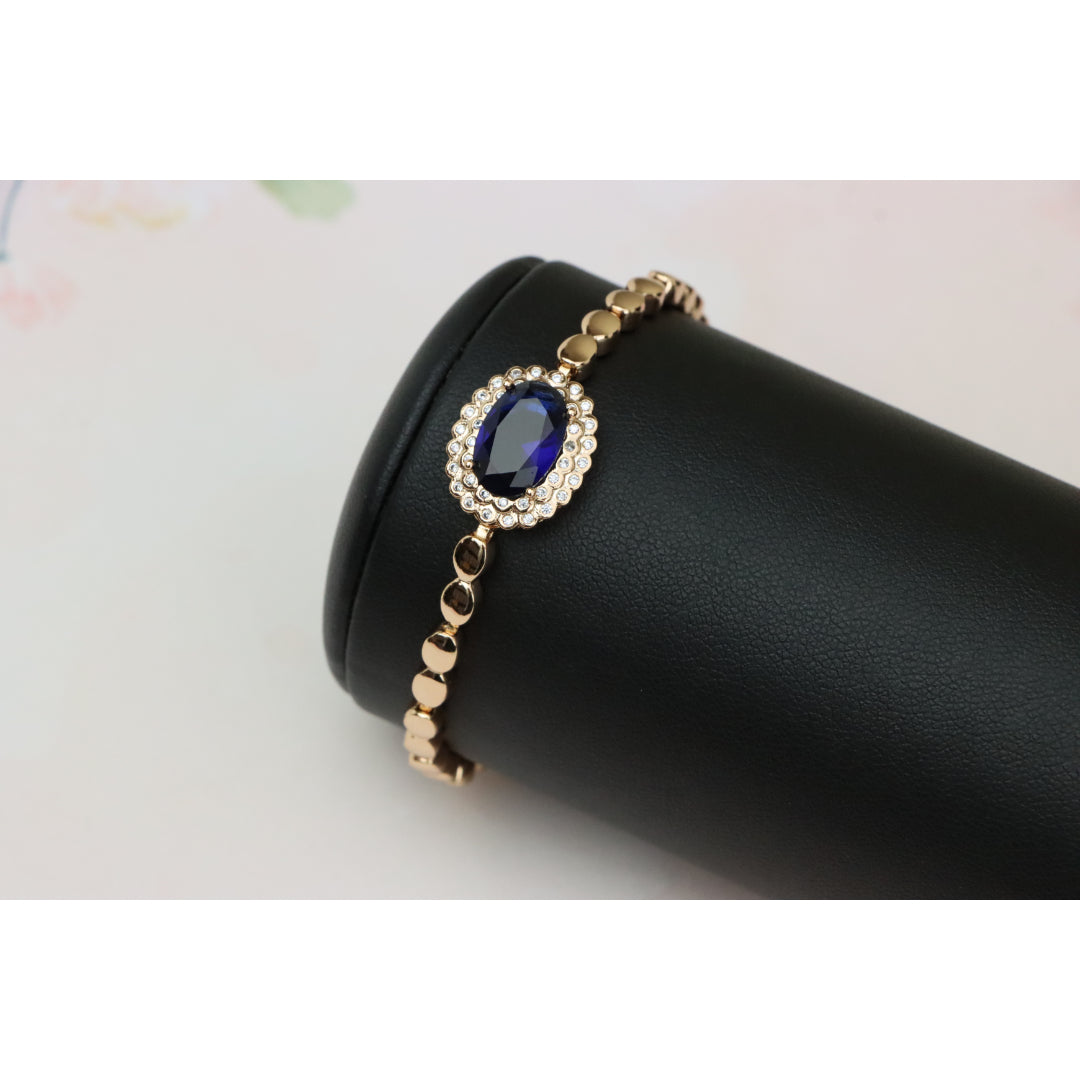 This elegant rose gold bracelet, featuring a deep blue centerpiece surrounded by shimmering stones, brings timeless beauty to every wrist.