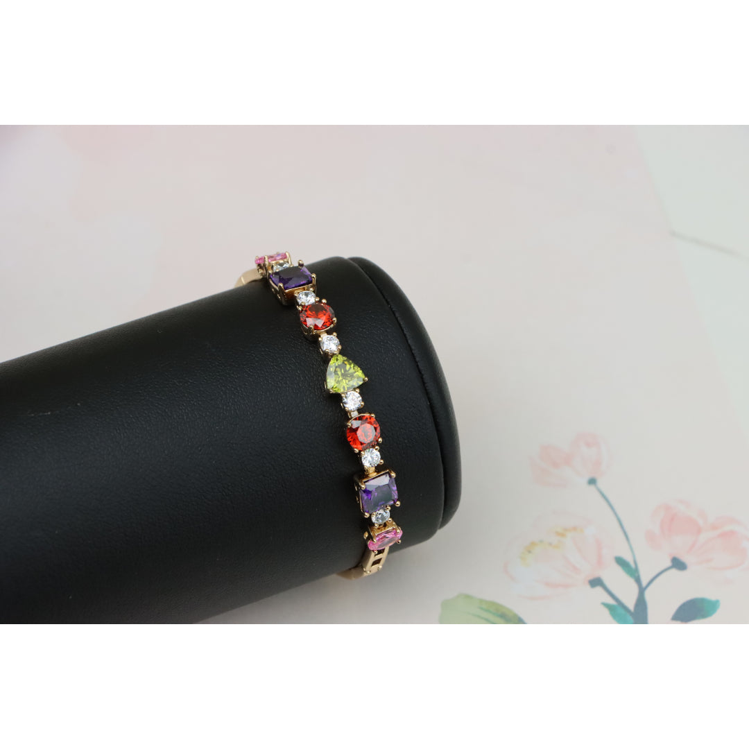 Elegant rose gold bracelet featuring vibrant multicolored cubic zirconia stones, adding sparkle and charm to your look.