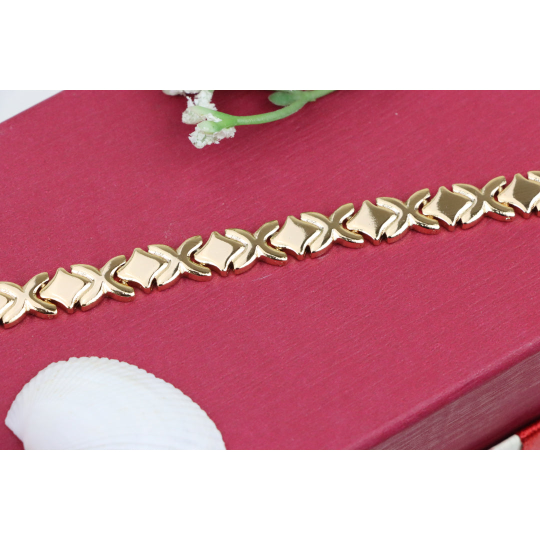 Rose Gold Bracelet with High-Polish X Pattern Links, XPBL0819