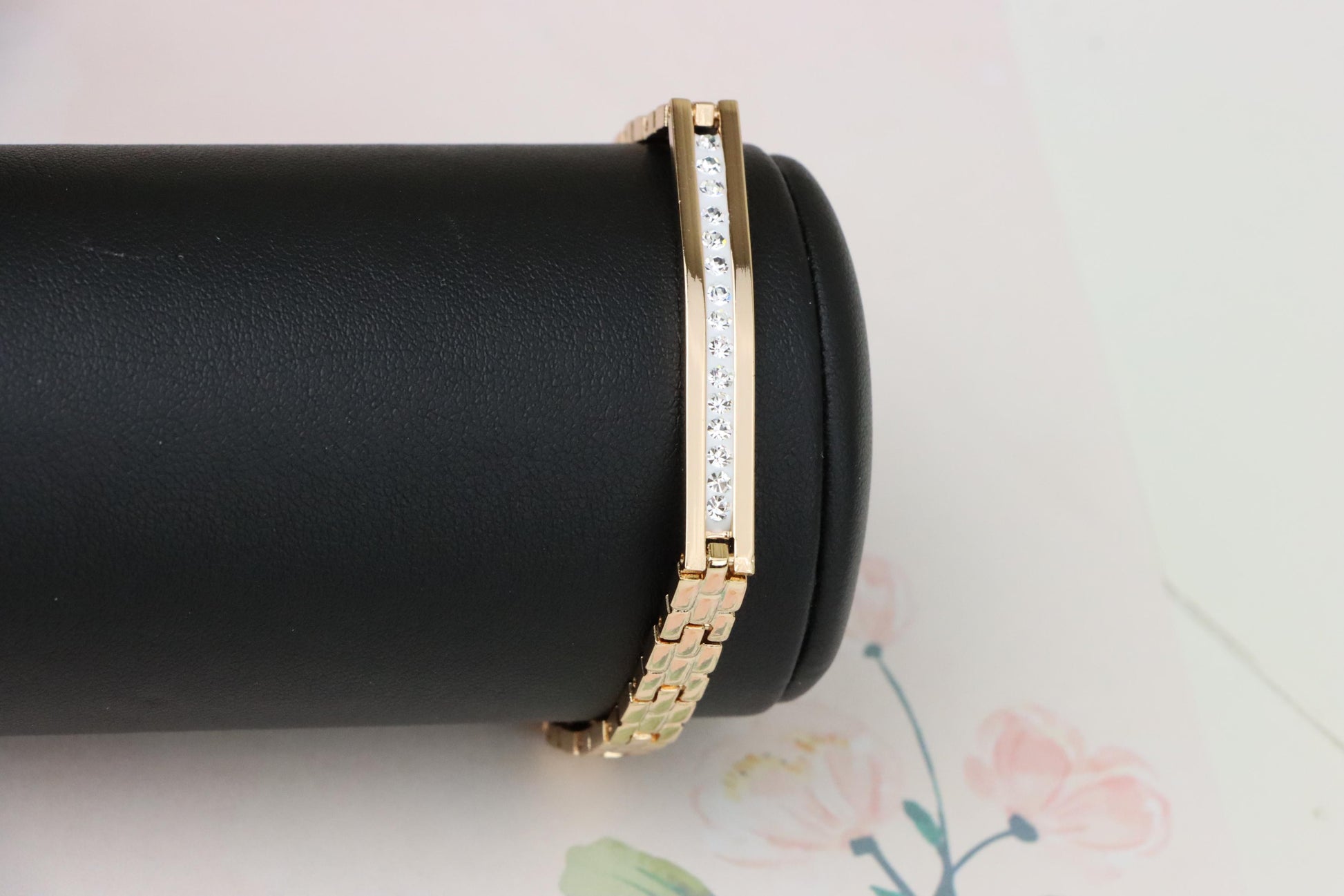 A sleek bracelet with a modern crystal bar centerpiece for effortless sophistication.