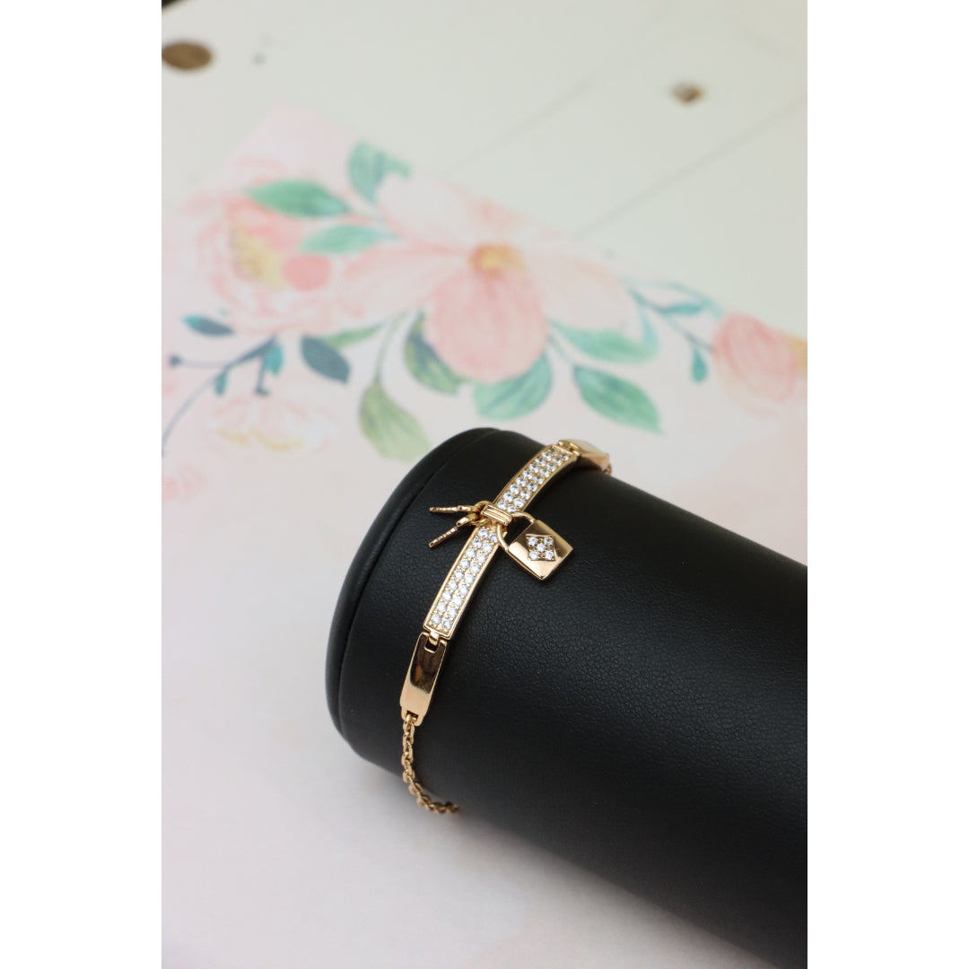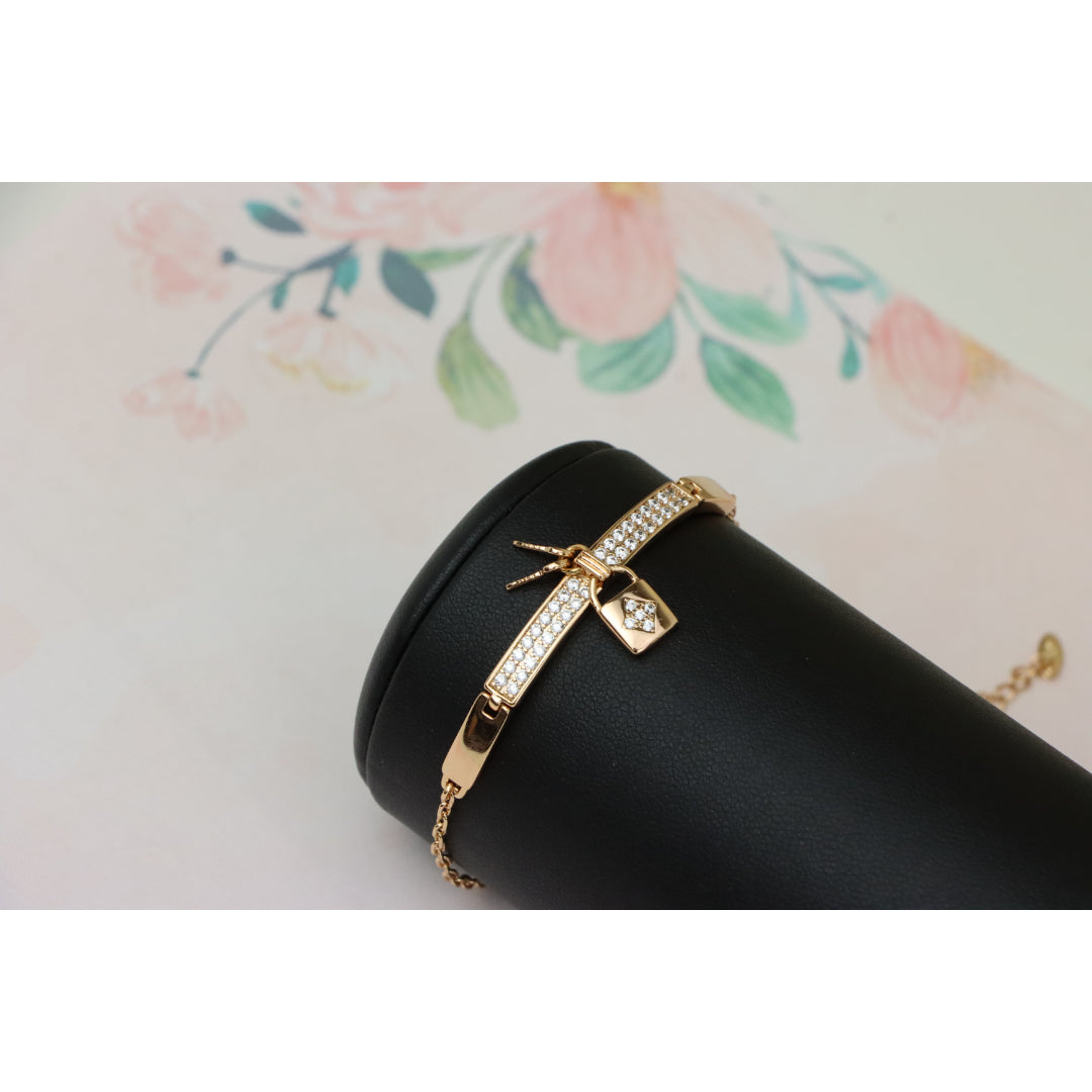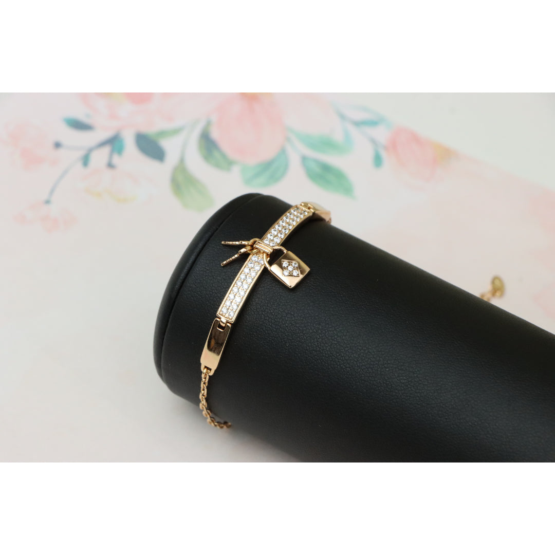 Rose Gold Bracelet with Lock Charm and Crystal Paved Center Bar, XPBL0723