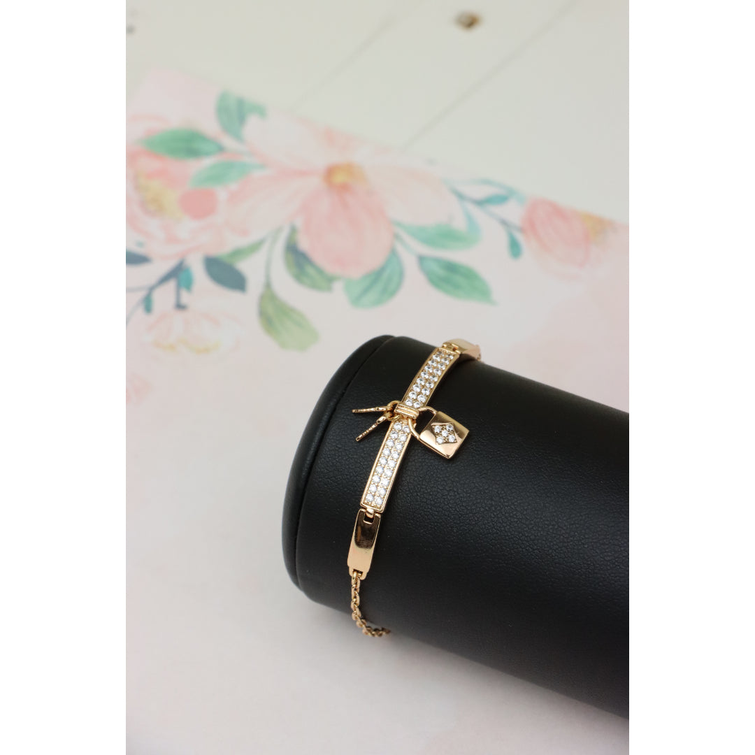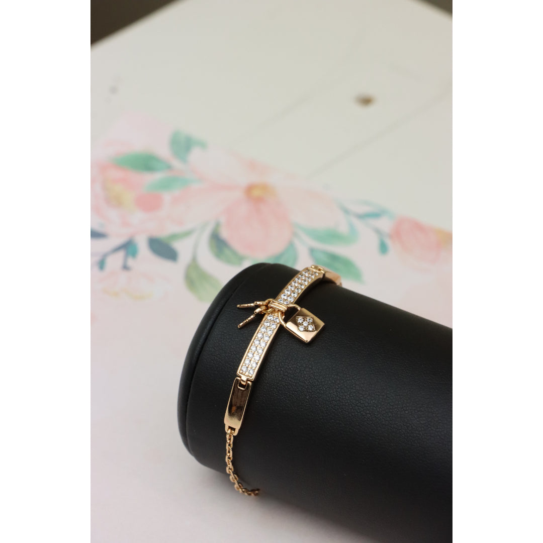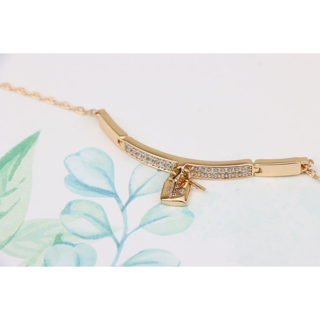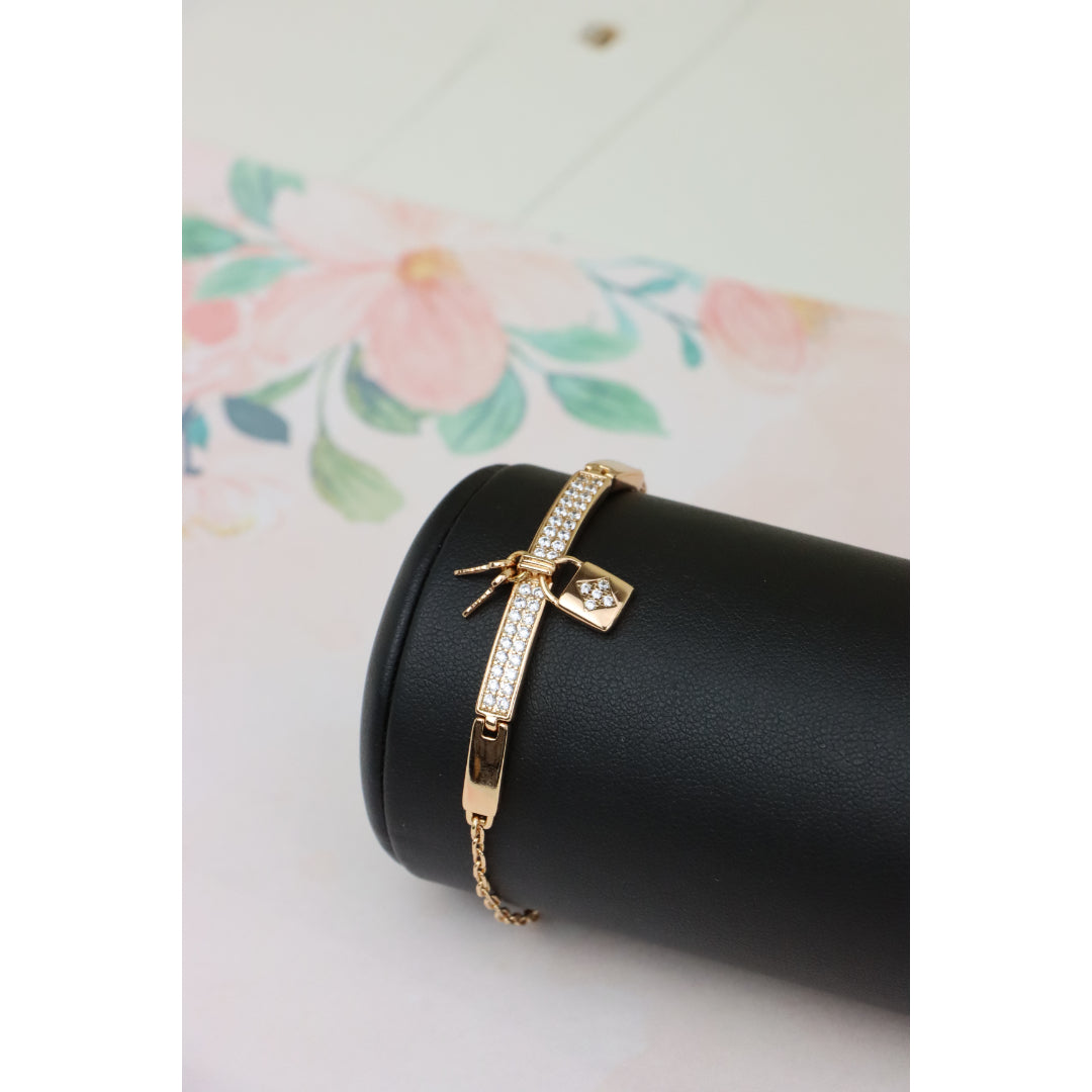 Rose Gold Bracelet with Lock Charm and Crystal Paved Center Bar, XPBL0723