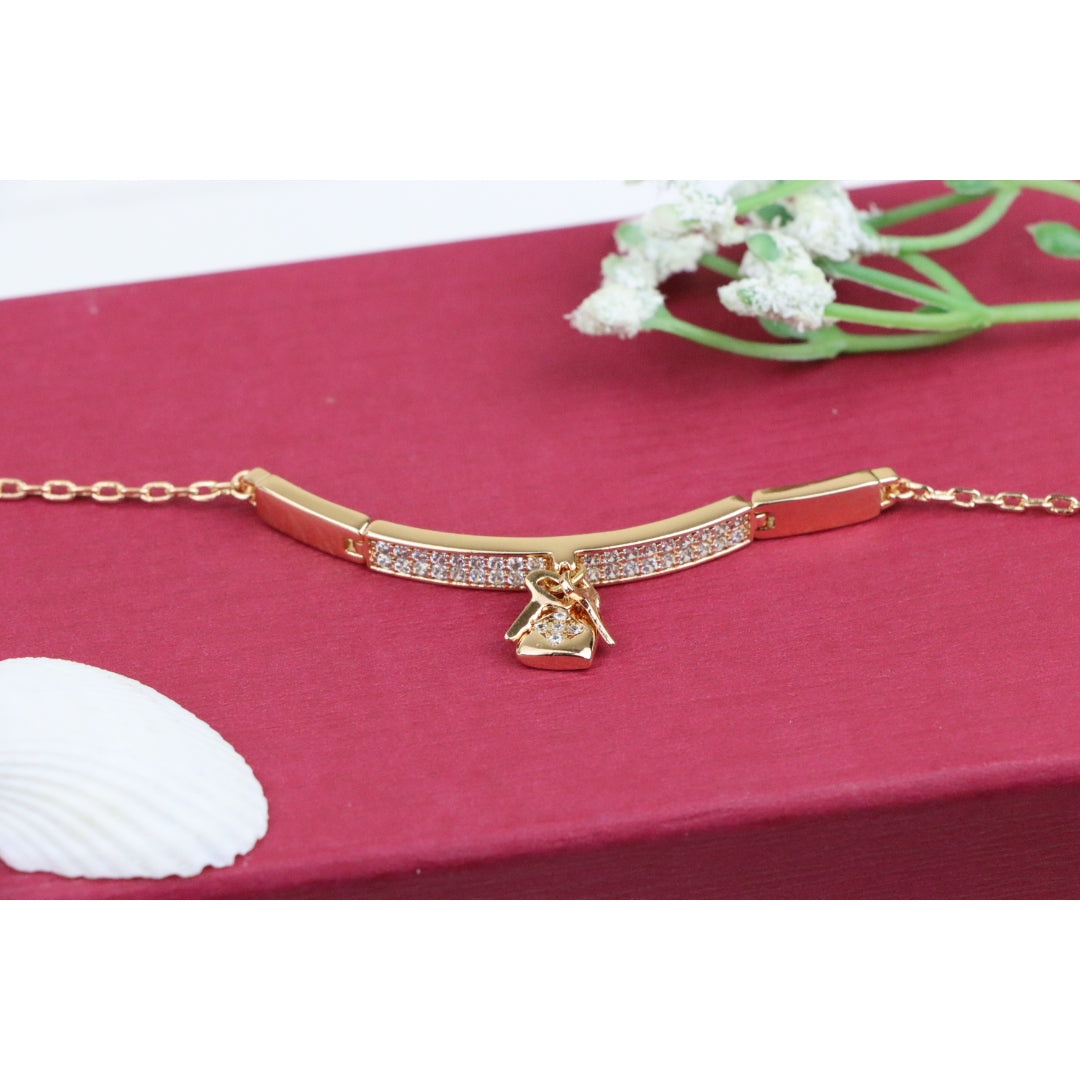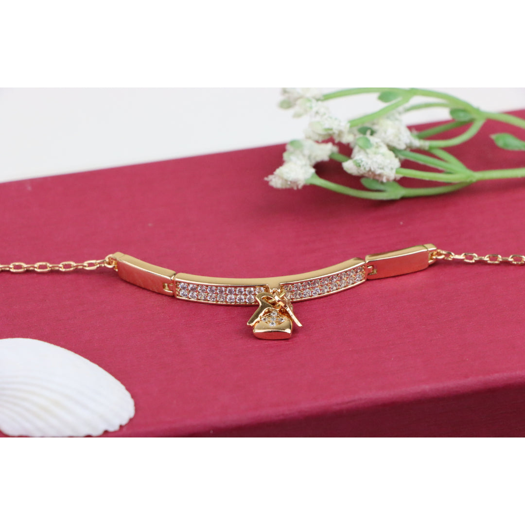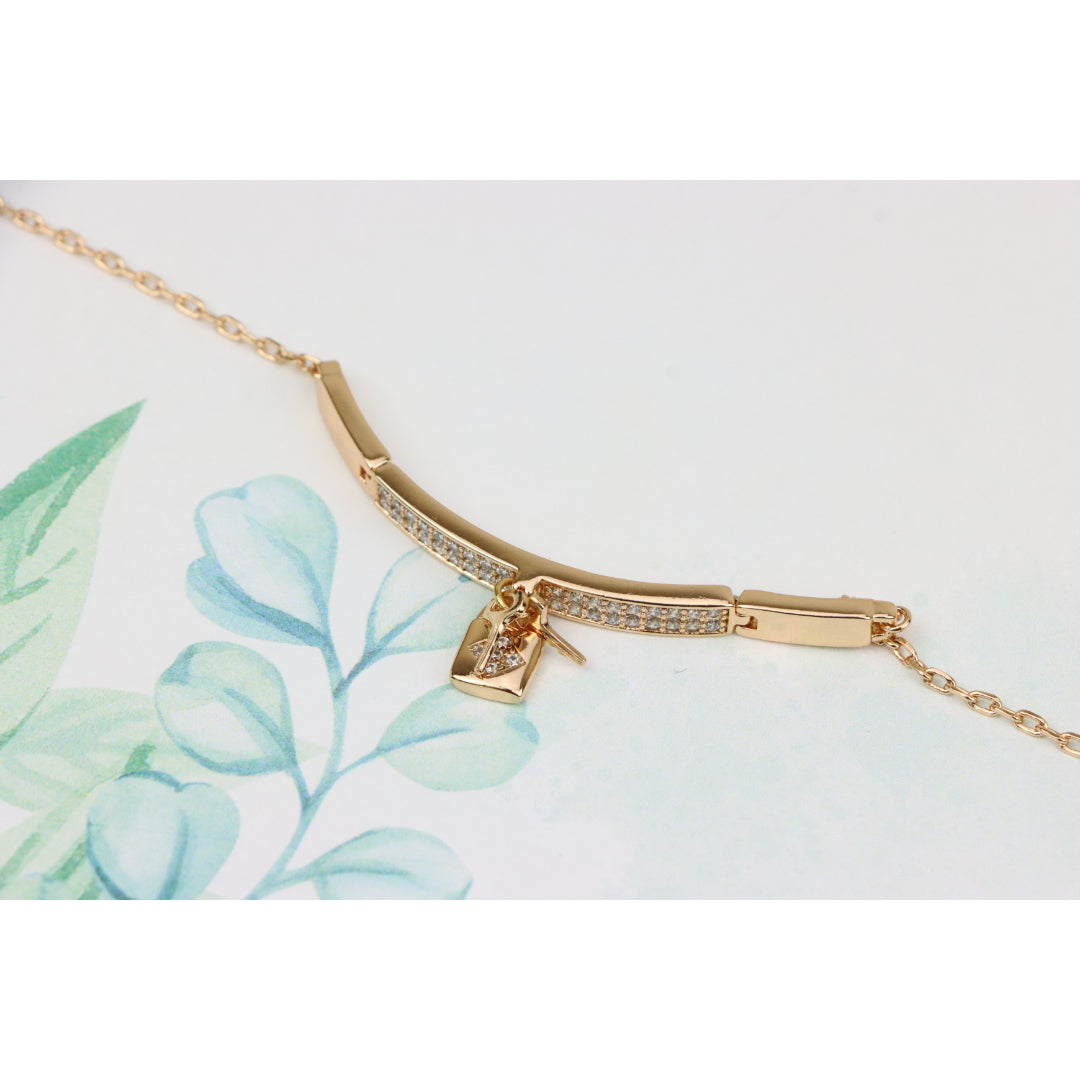 Rose Gold Bracelet with Lock Charm and Crystal Paved Center Bar, XPBL0723 (2073-2)