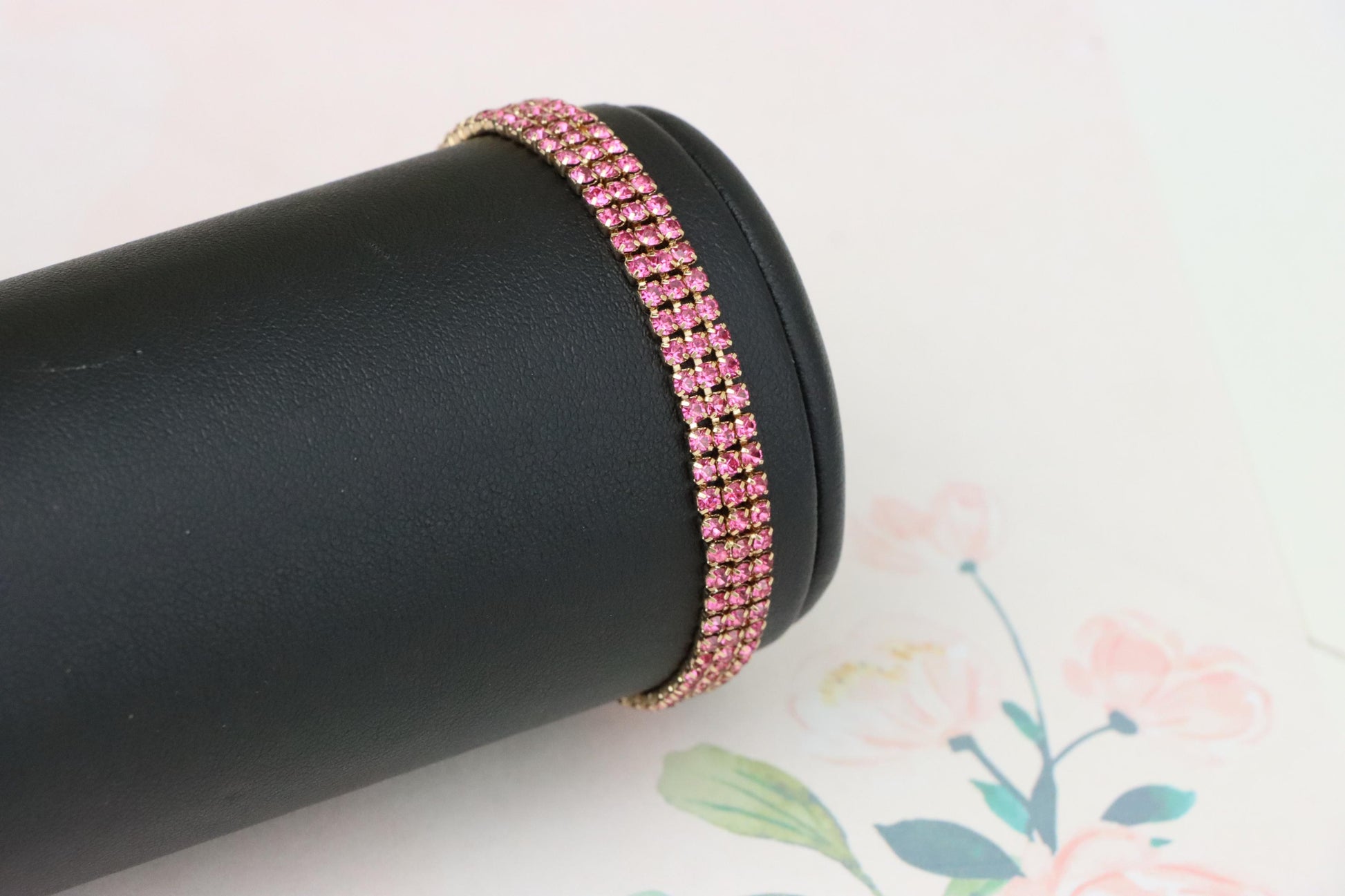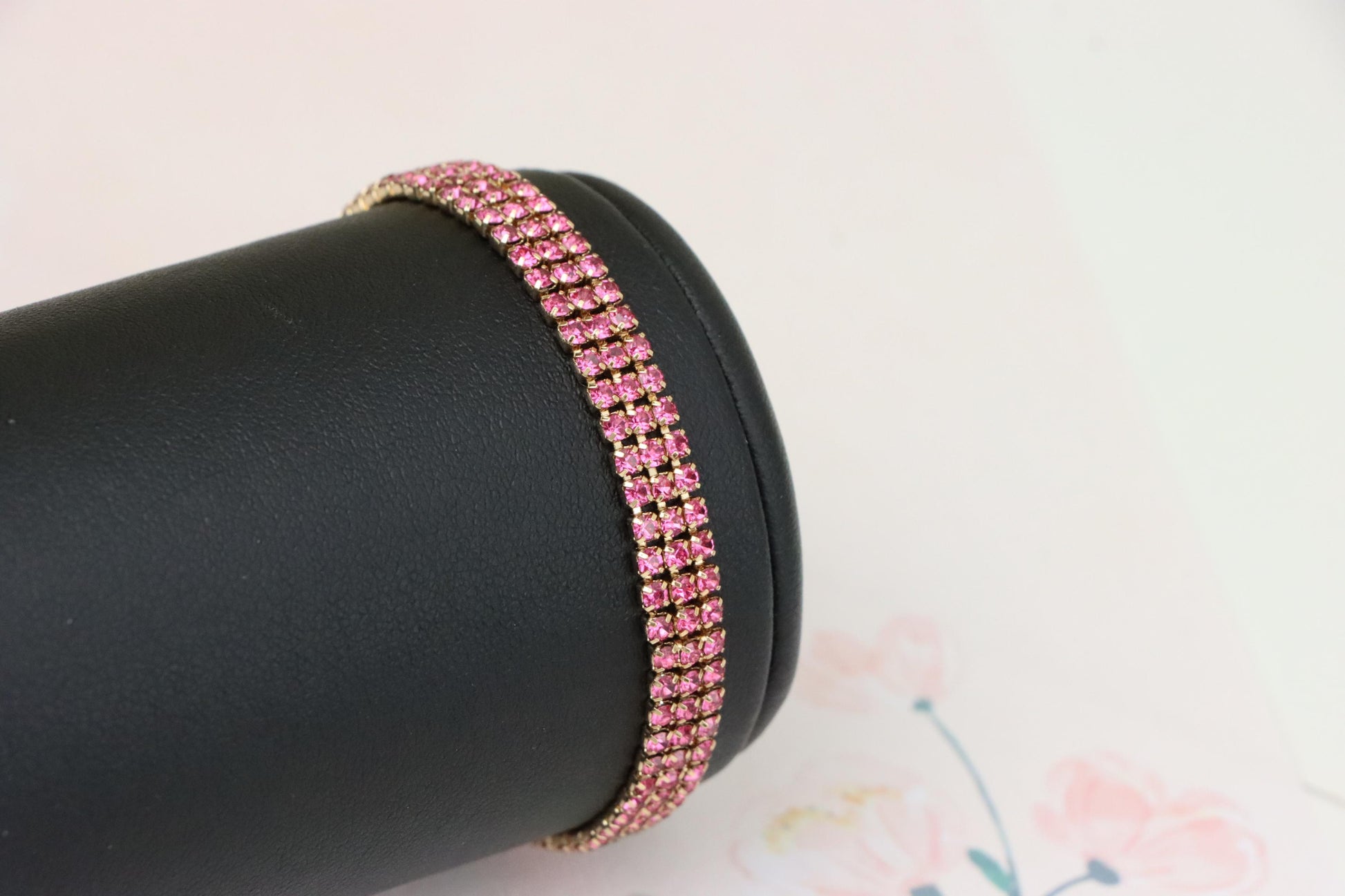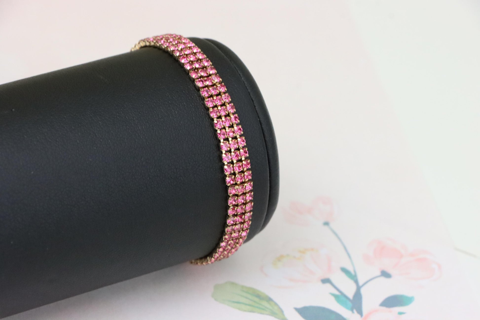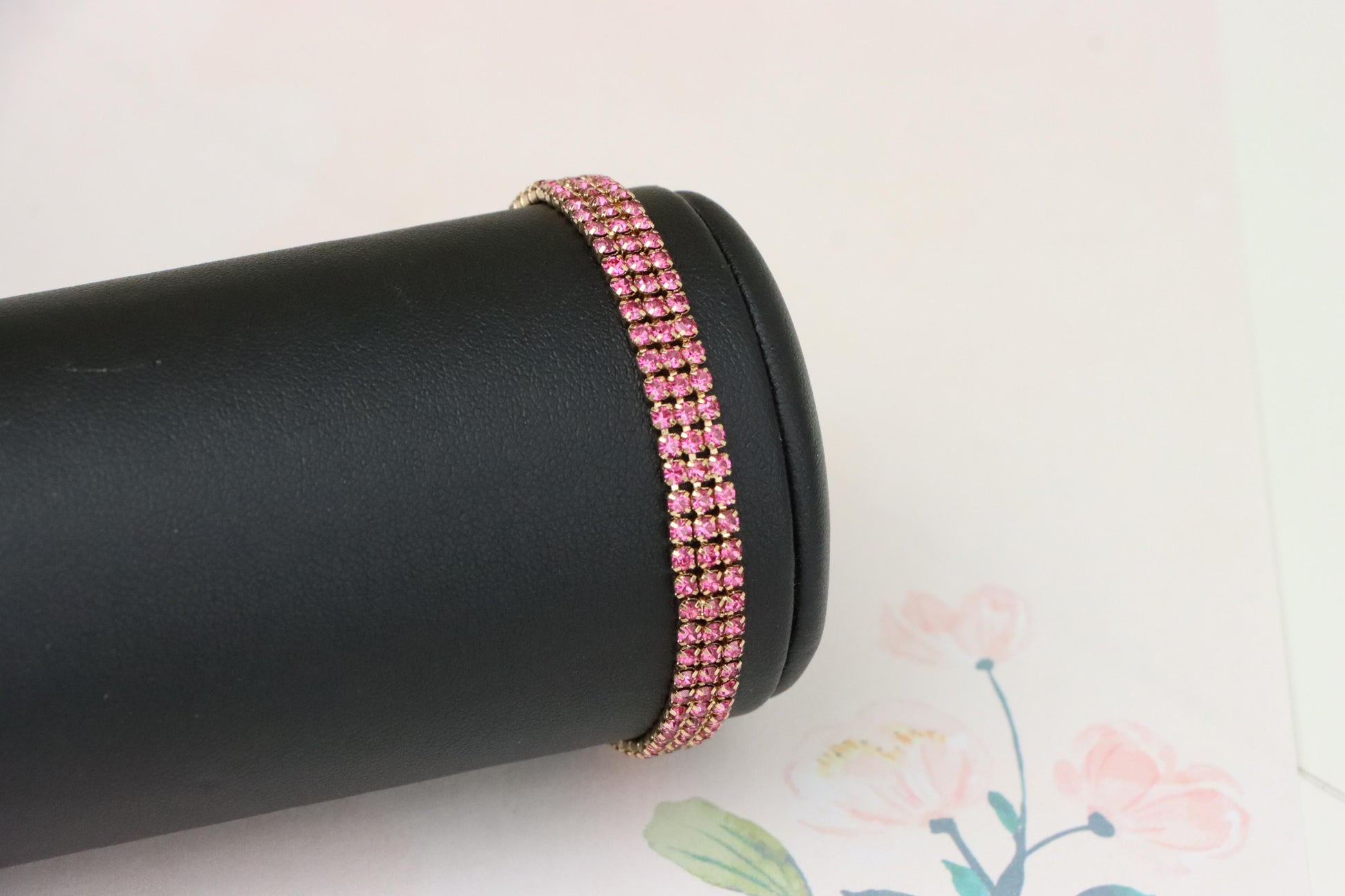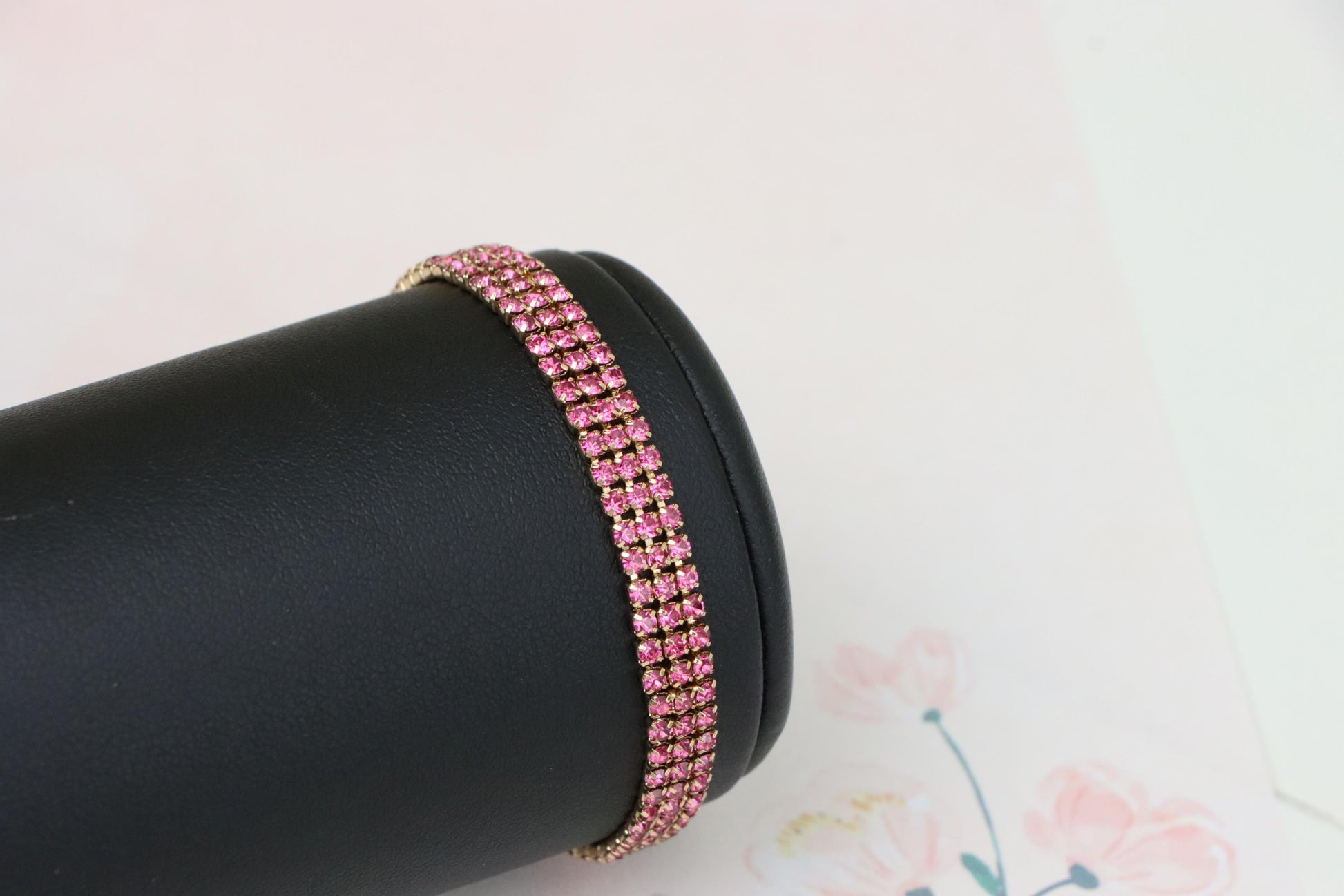 ✔ Elegant rose gold tone with vibrant pink crystal rows for a bold look