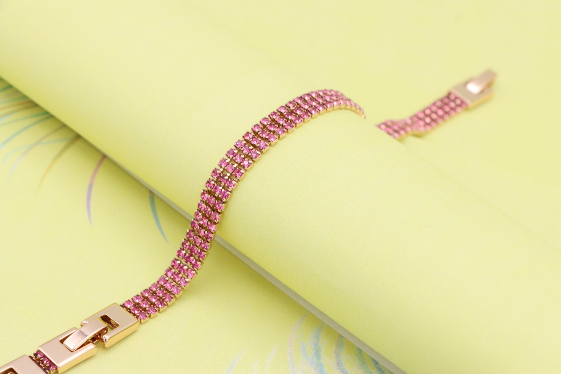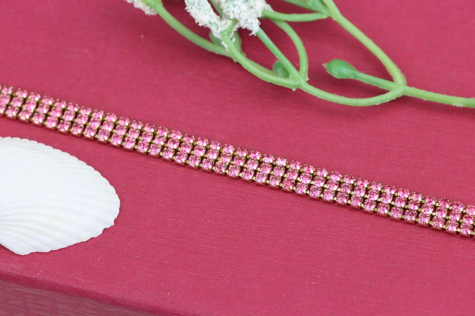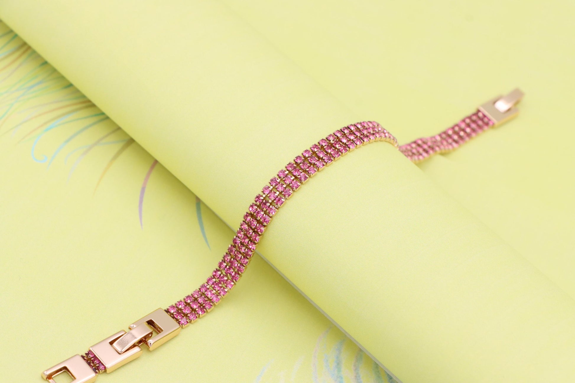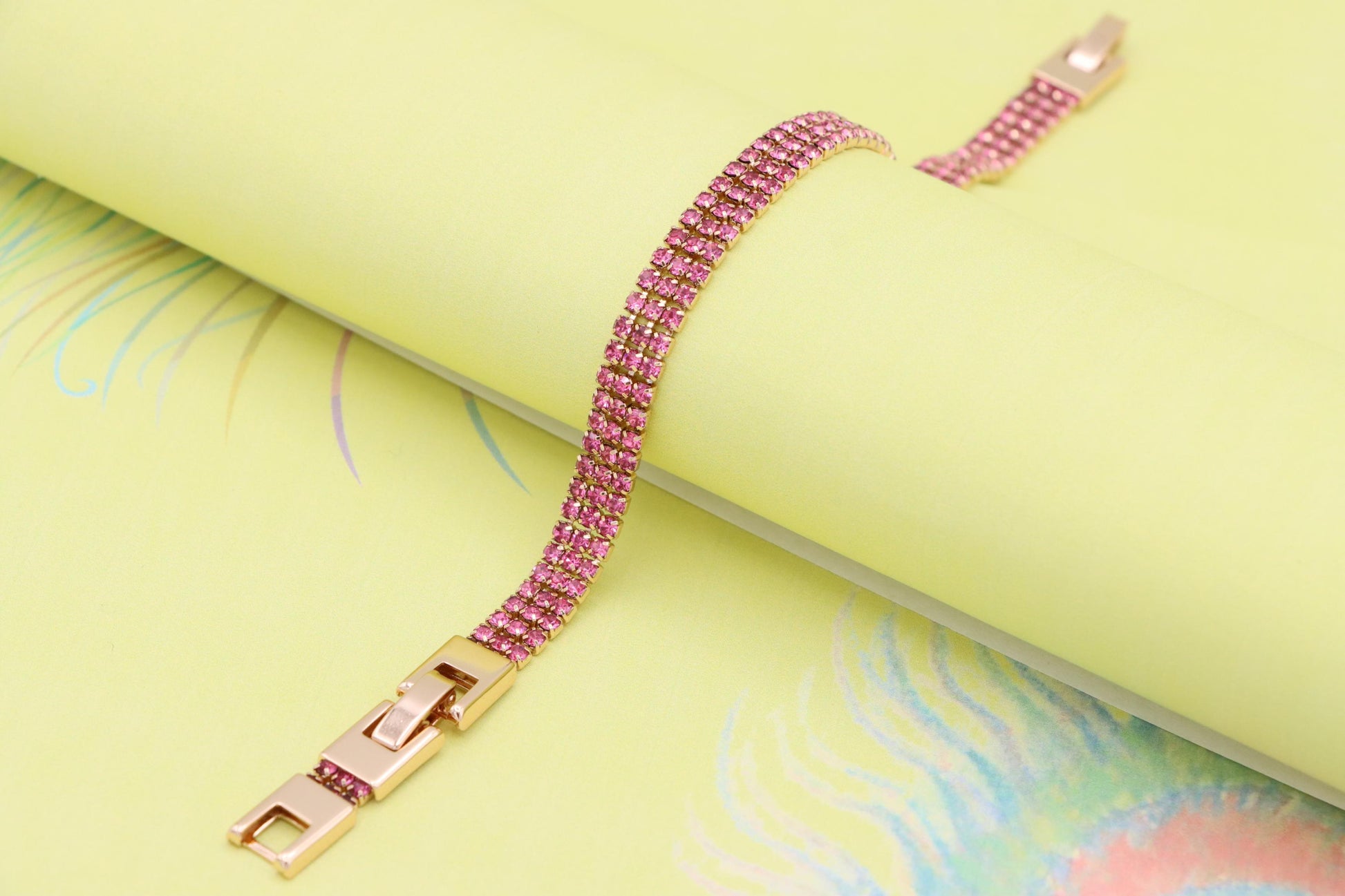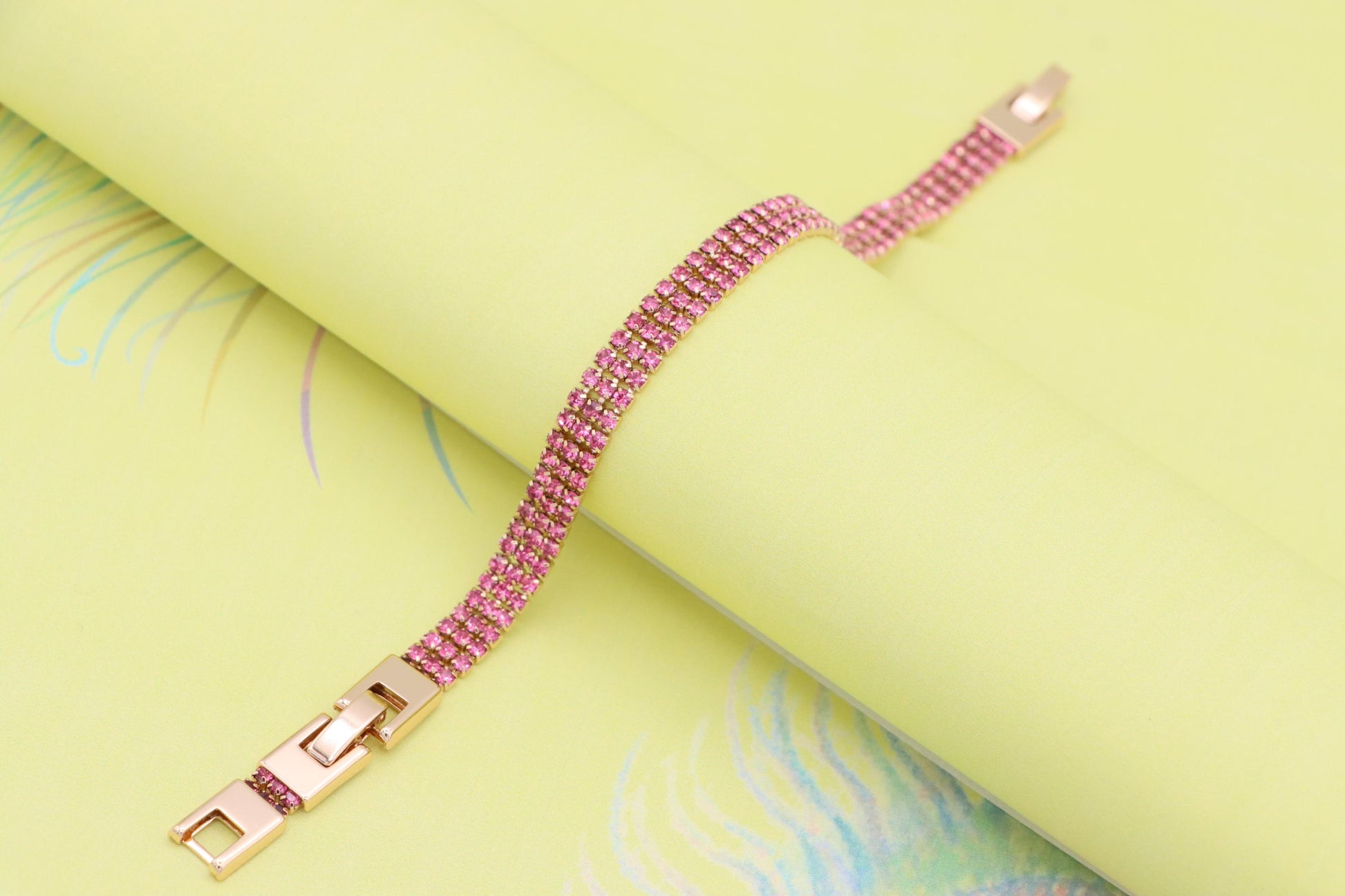 ✔ Elegant rose gold tone with vibrant pink crystal rows for a bold look