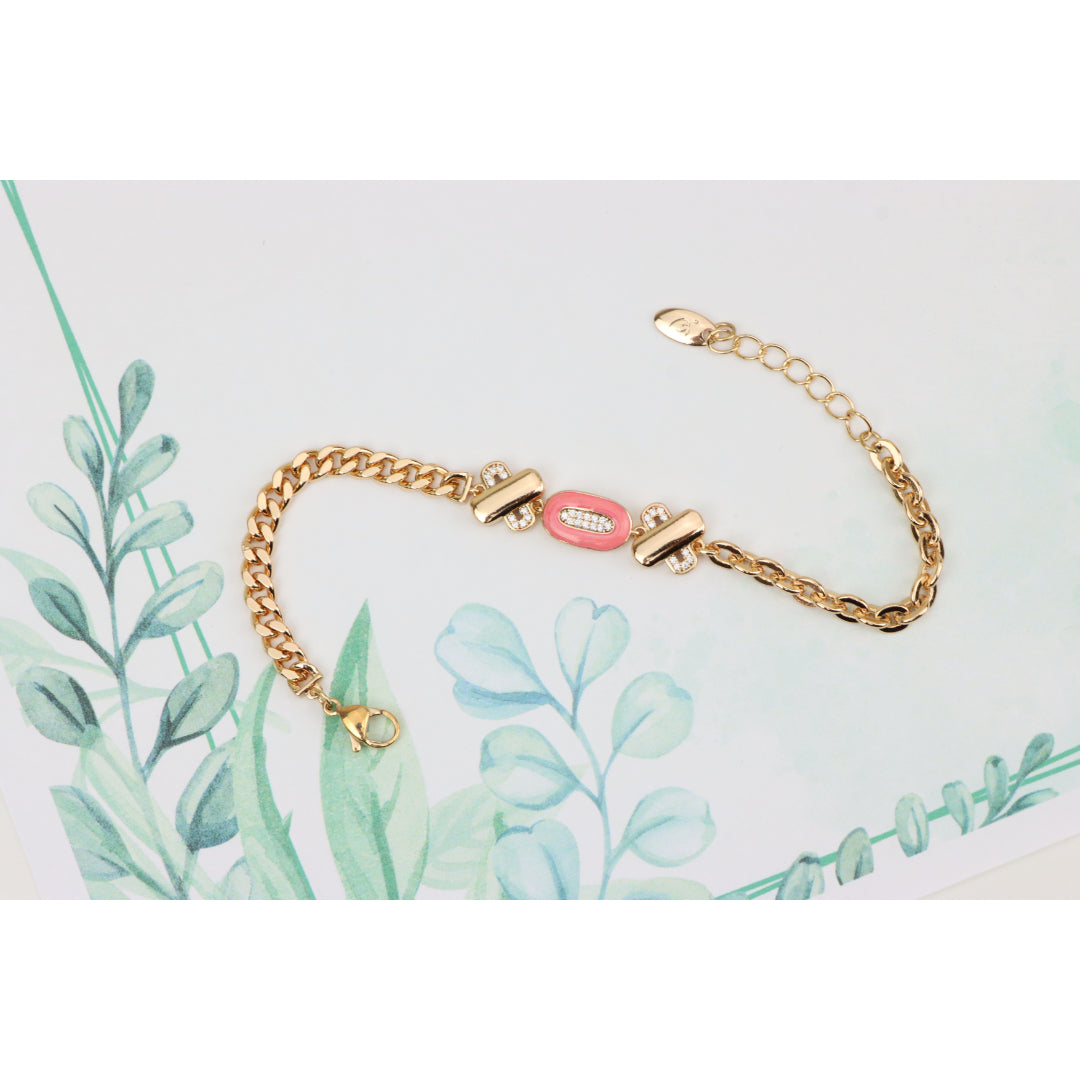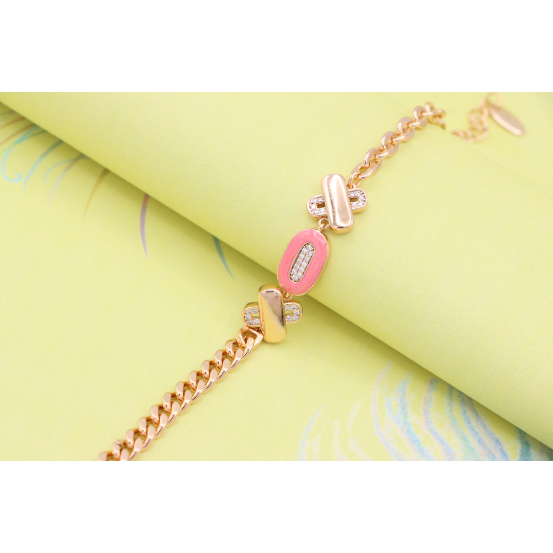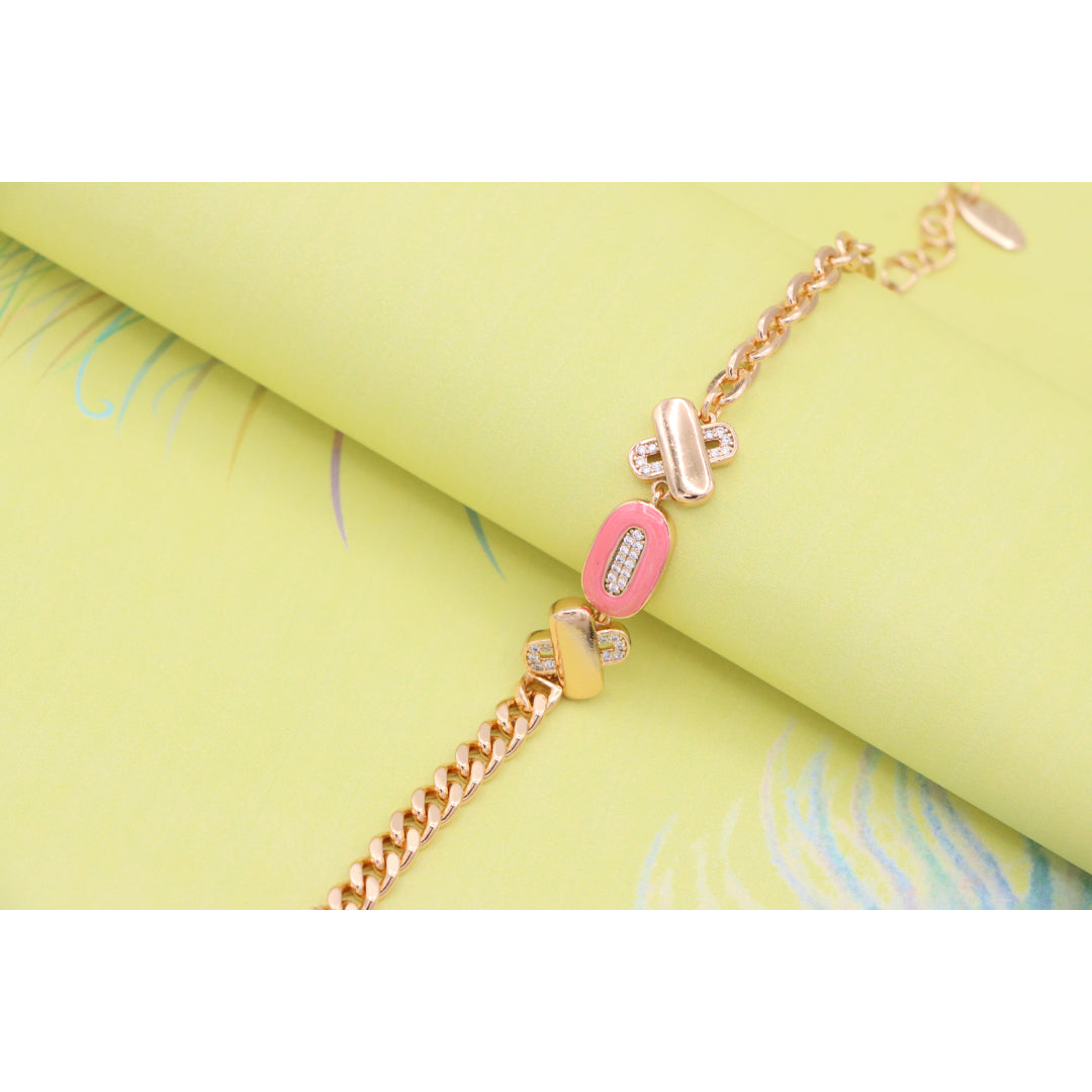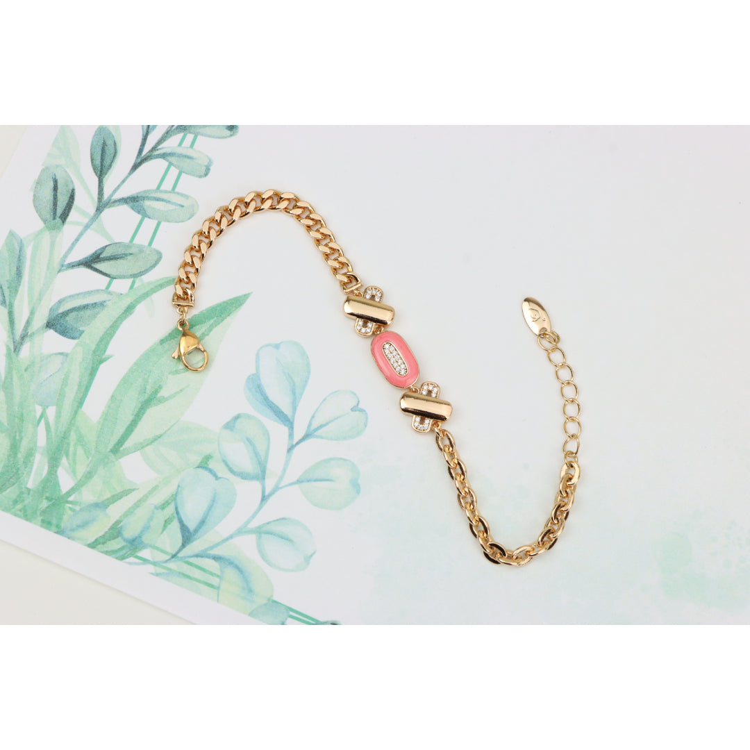 Rose Gold Bracelet with Pink Enamel and Crystal Accents, XPBL0815