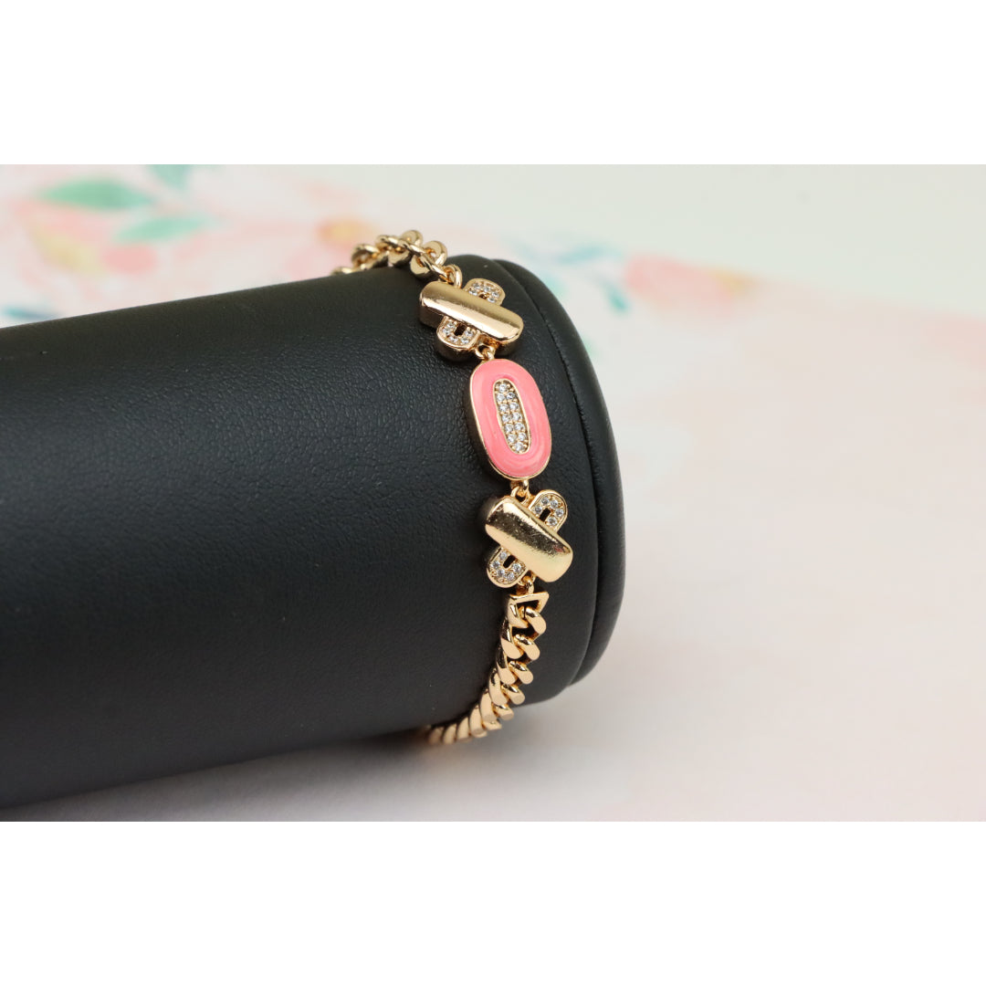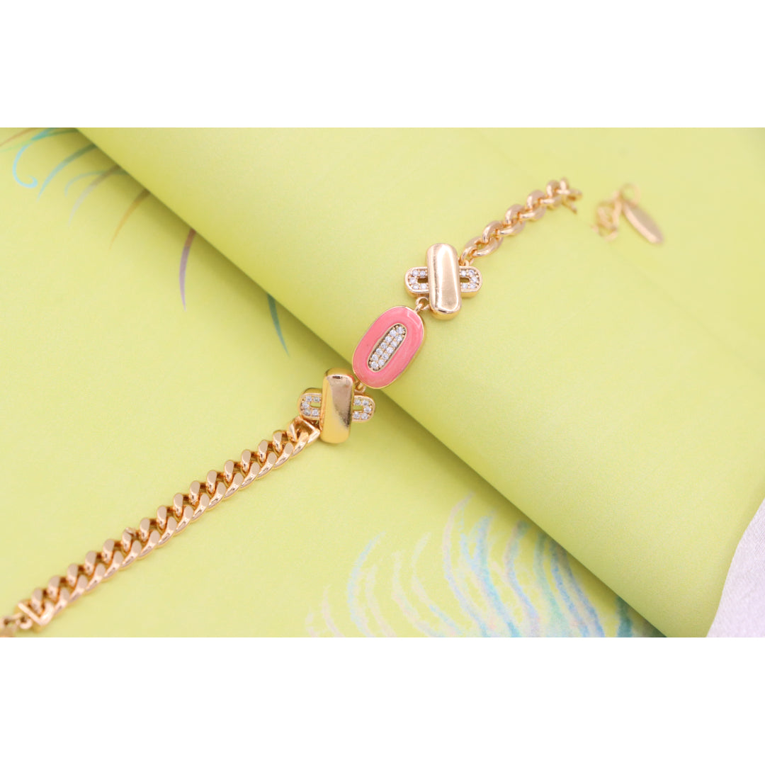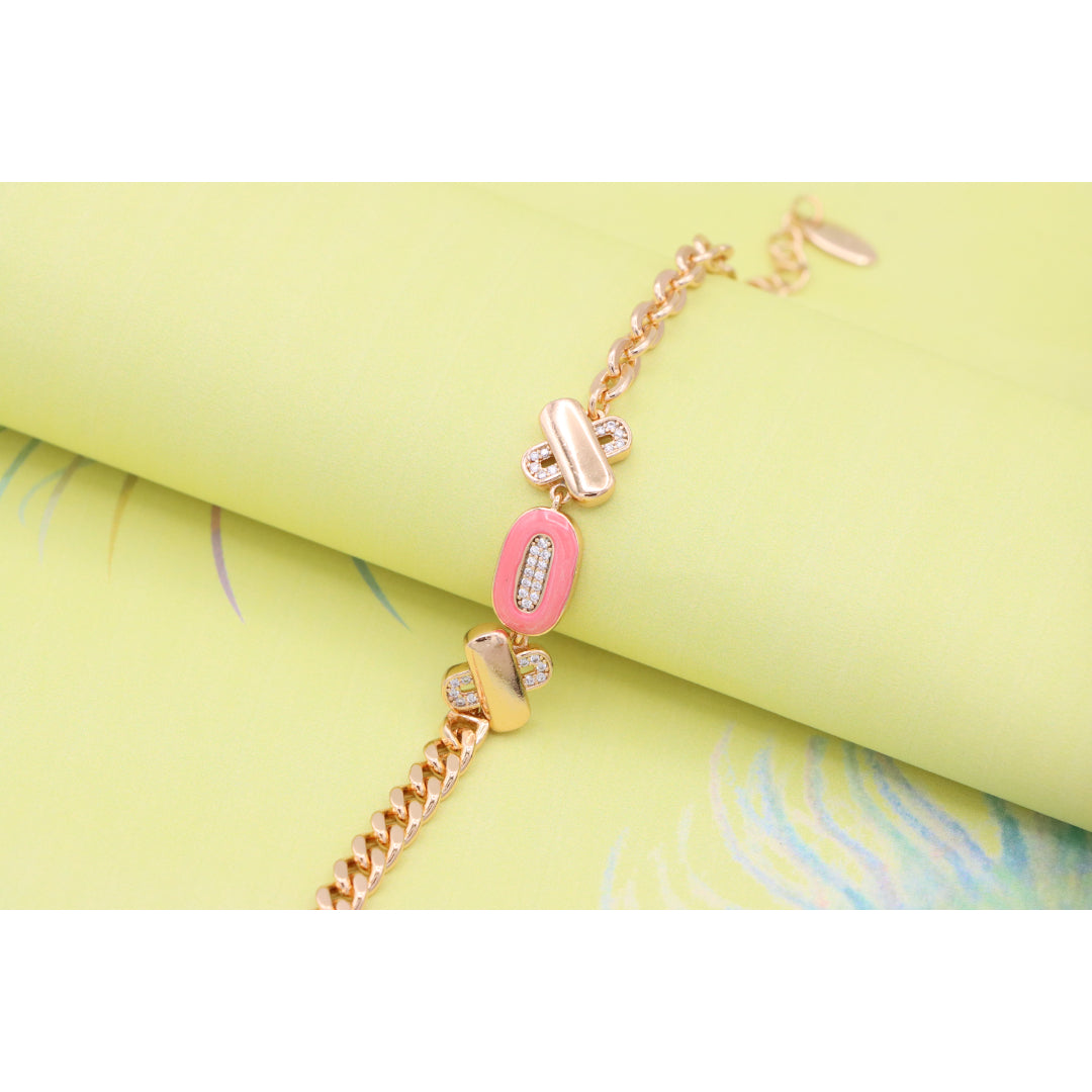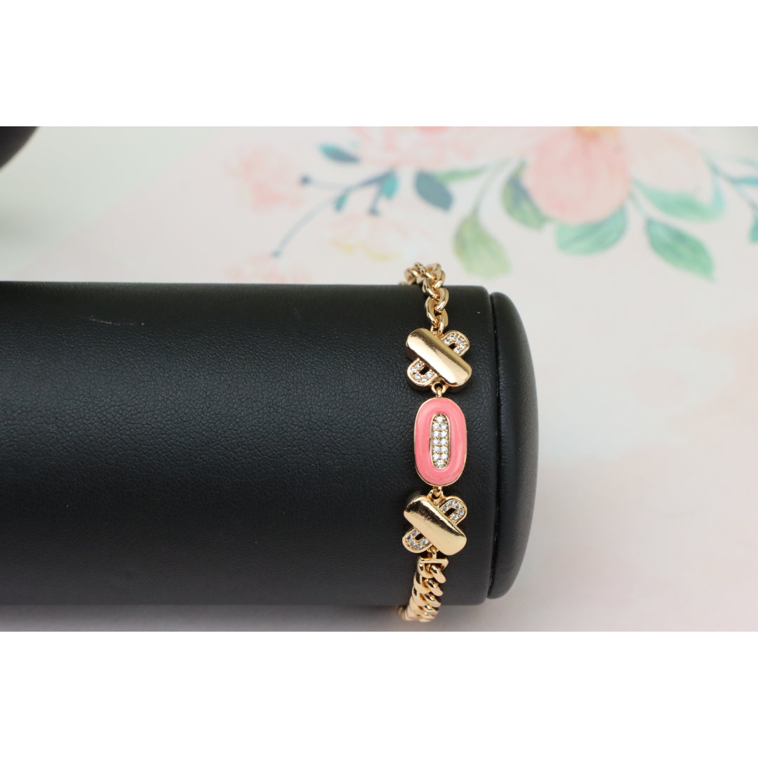 Rose Gold Bracelet with Pink Enamel and Crystal Accents, XPBL0815