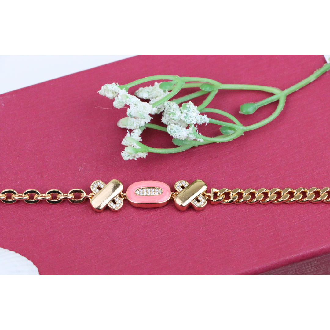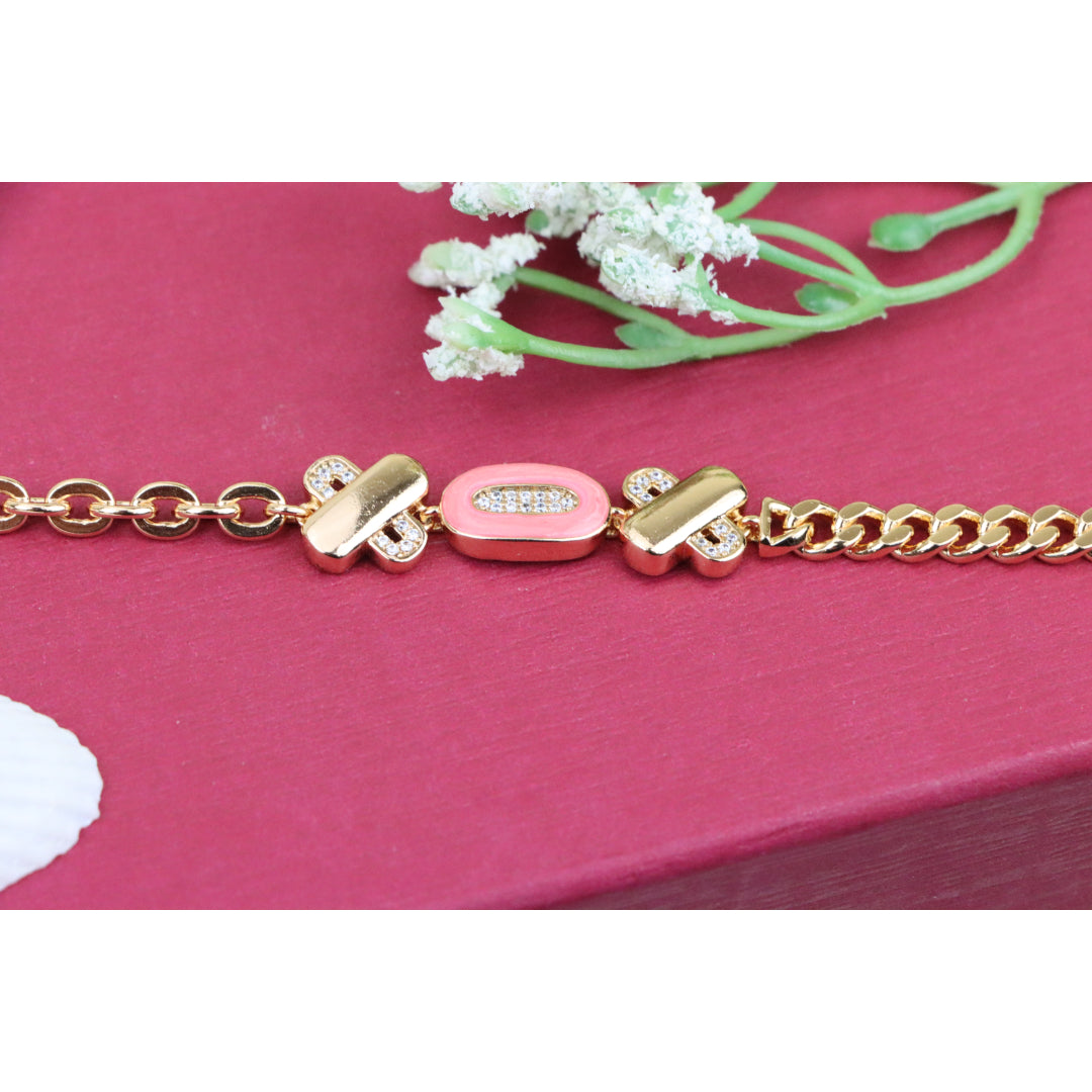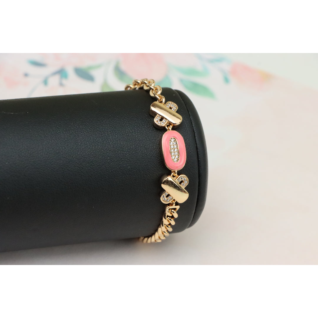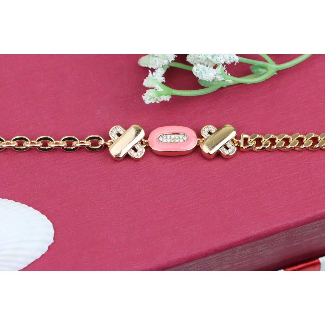 Rose Gold Bracelet with Pink Enamel and Crystal Accents, XPBL0815