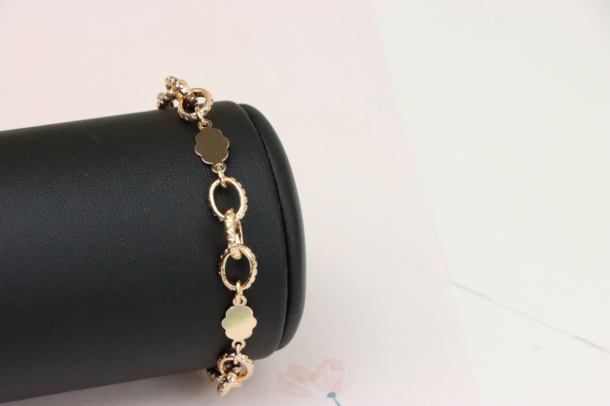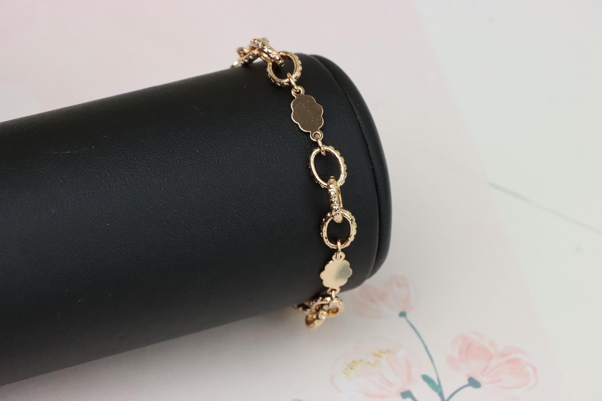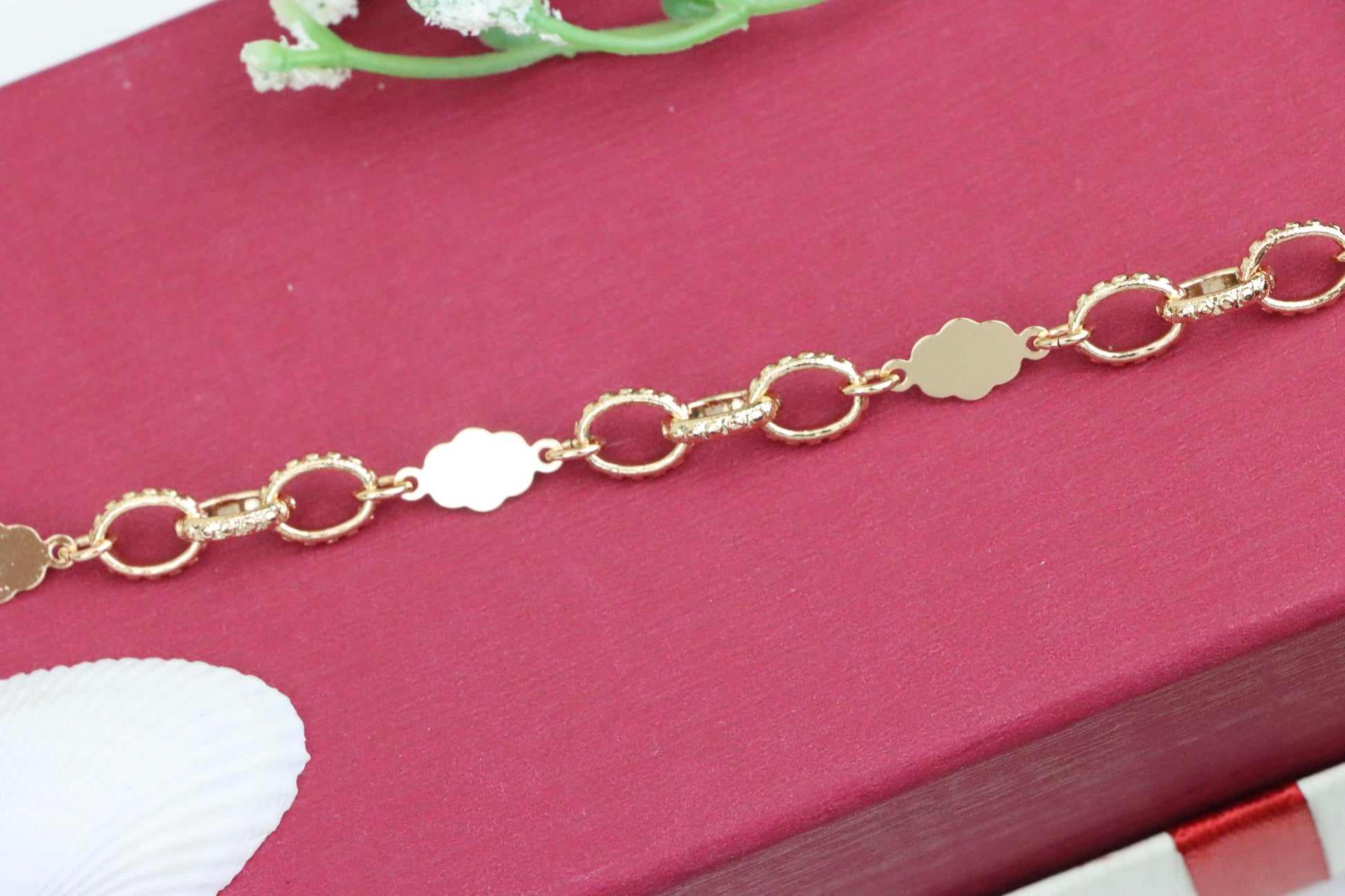 ✓ Elegant rose gold bracelet with delicate floral and ring link pattern