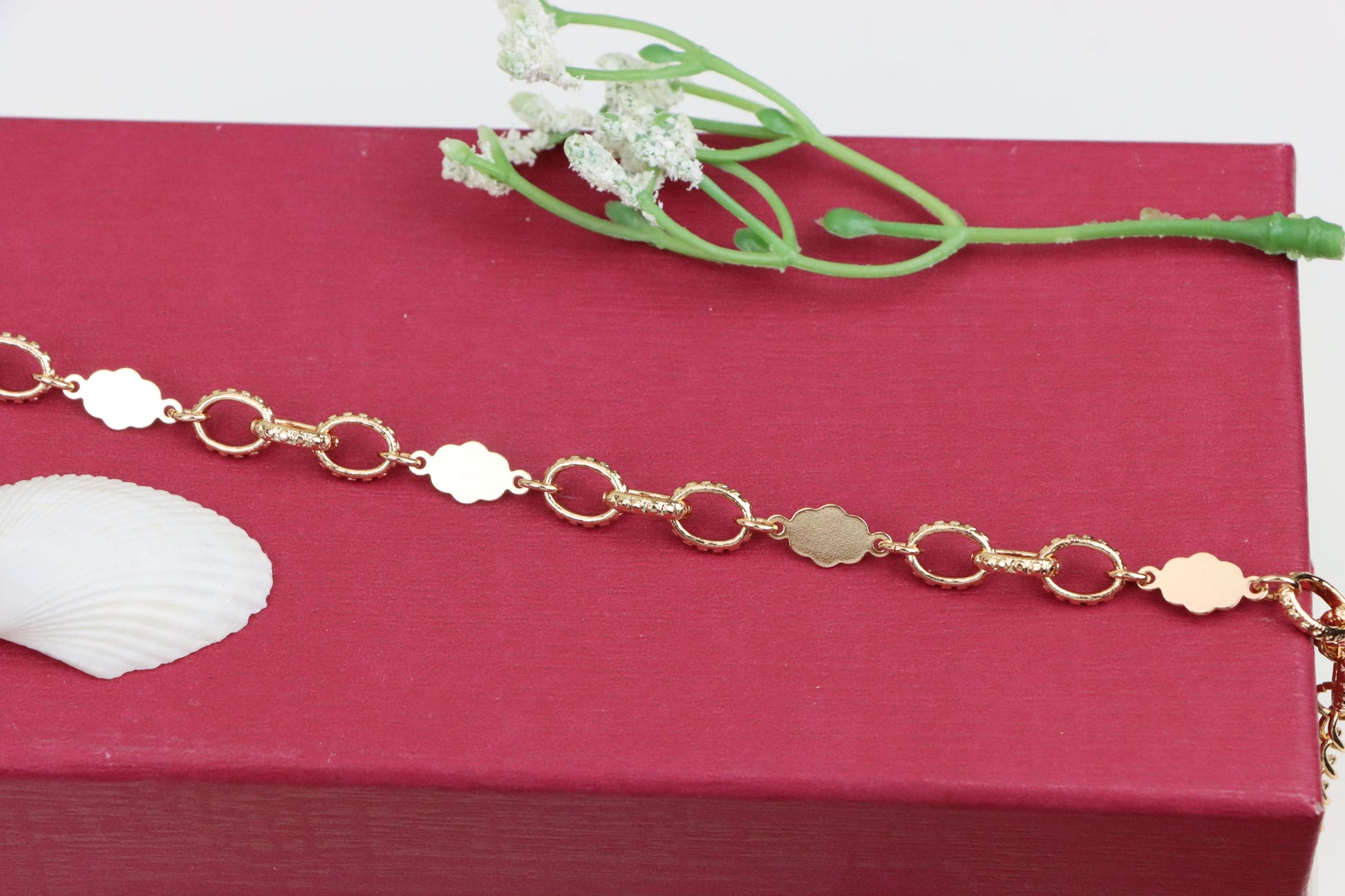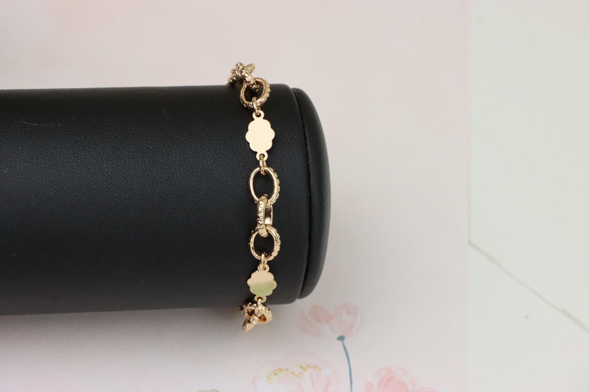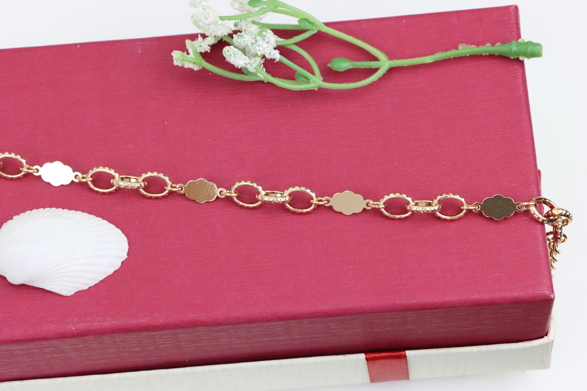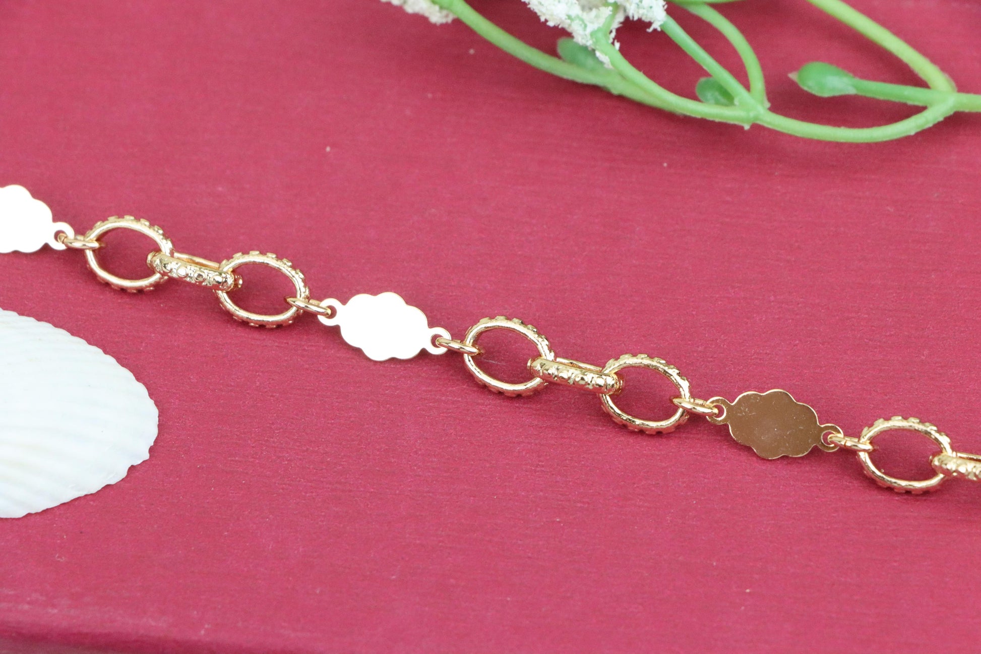 ✓ Elegant rose gold bracelet with delicate floral and ring link pattern