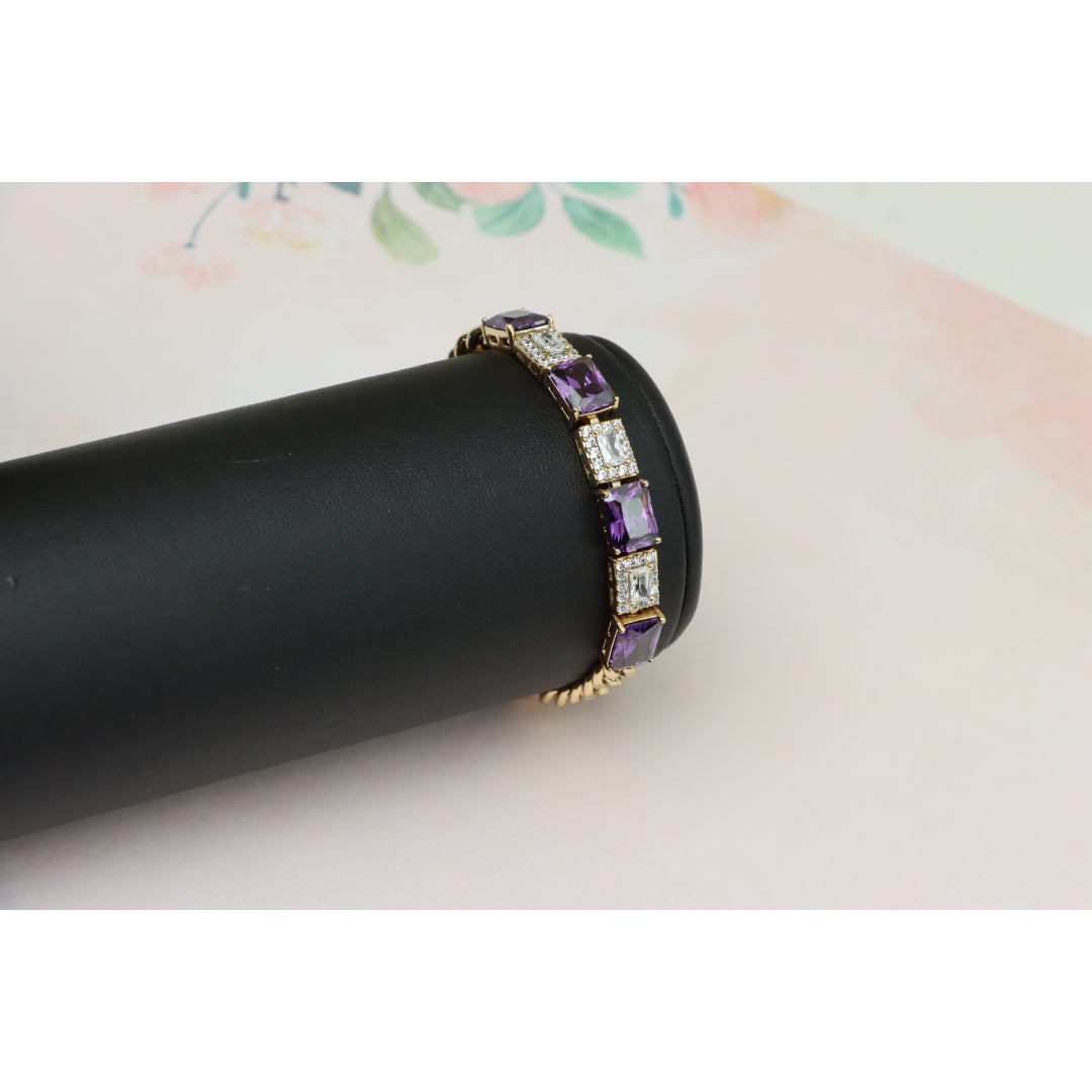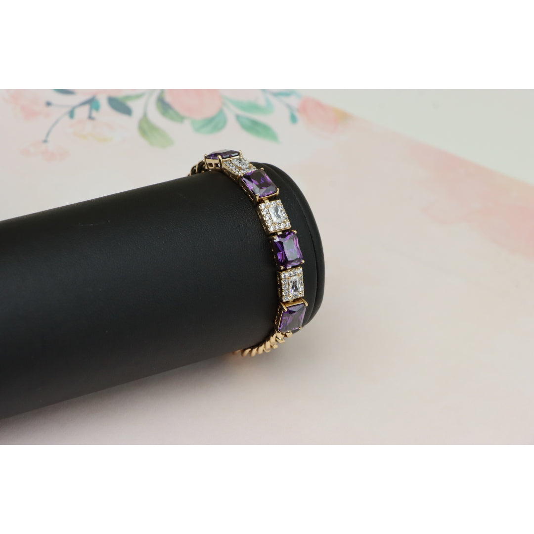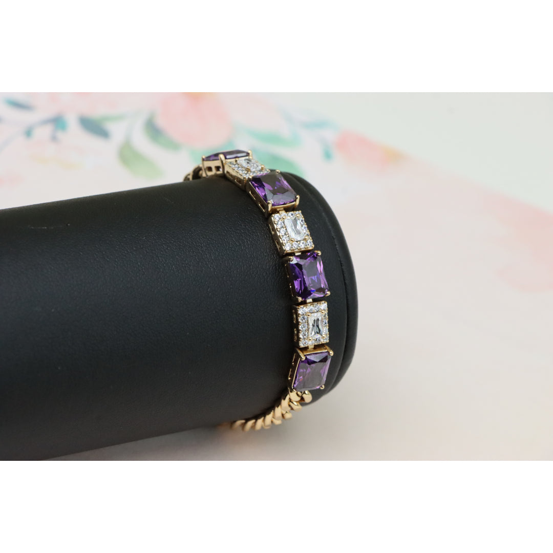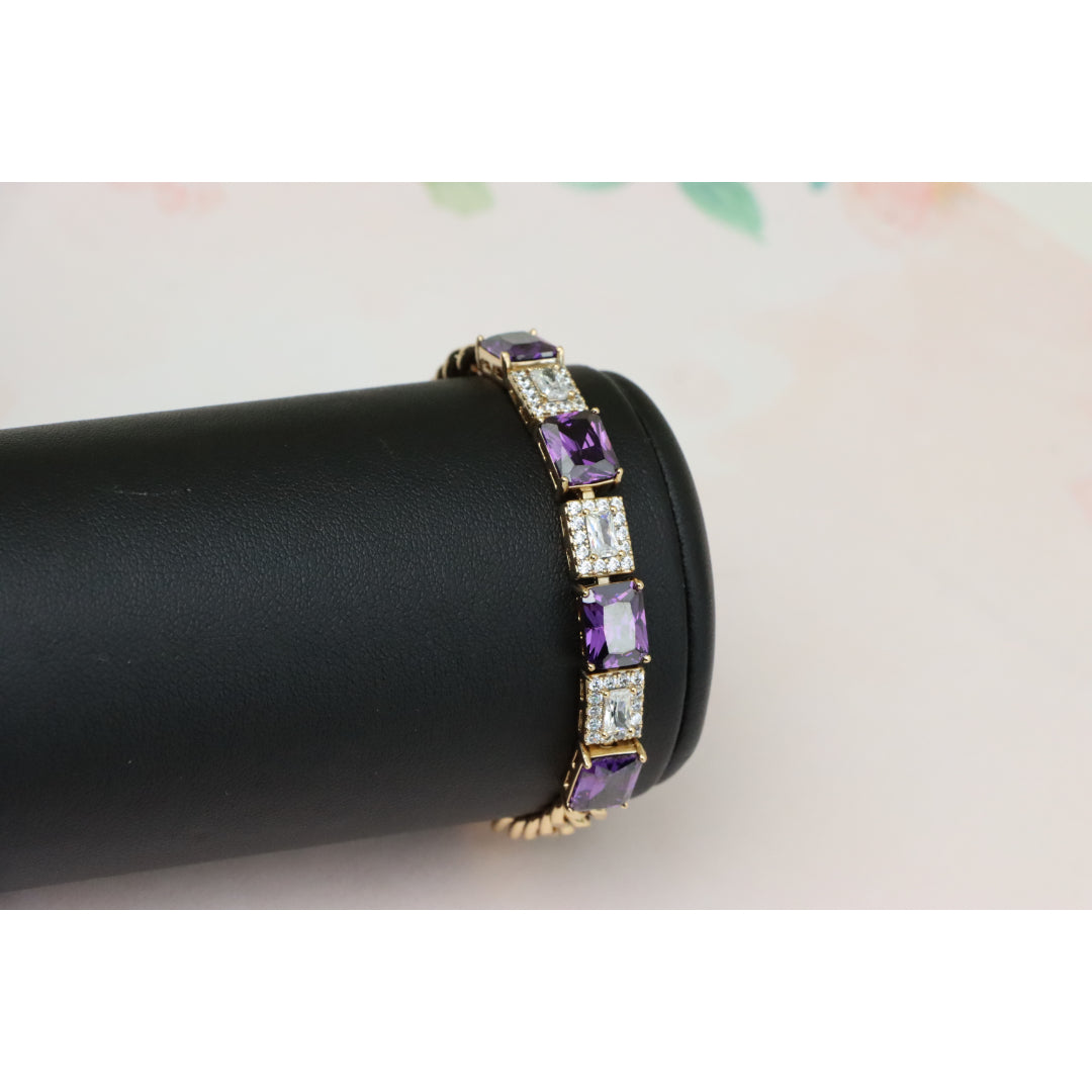 A luxurious bracelet featuring deep purple square-cut stones alternating with shimmering CZ accents.