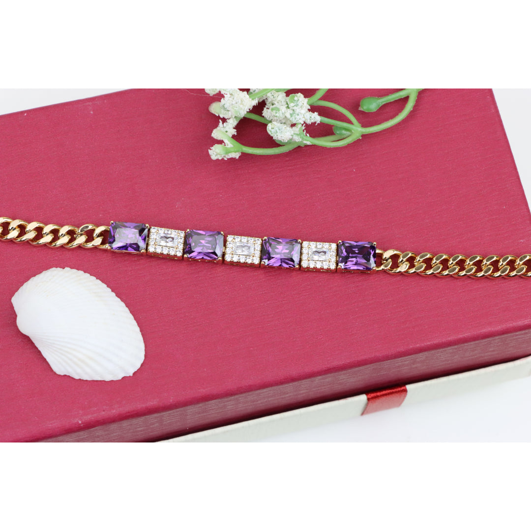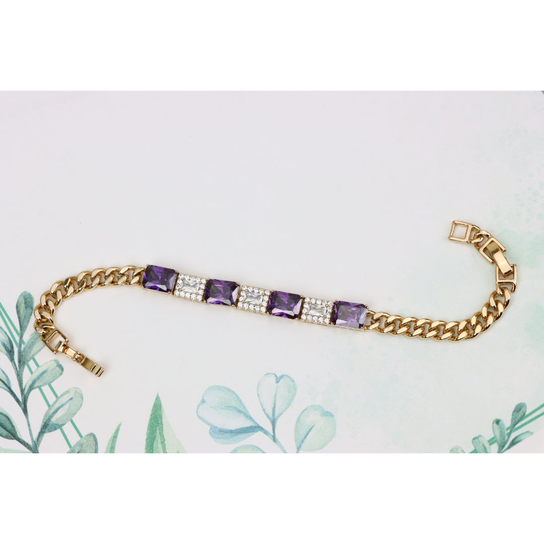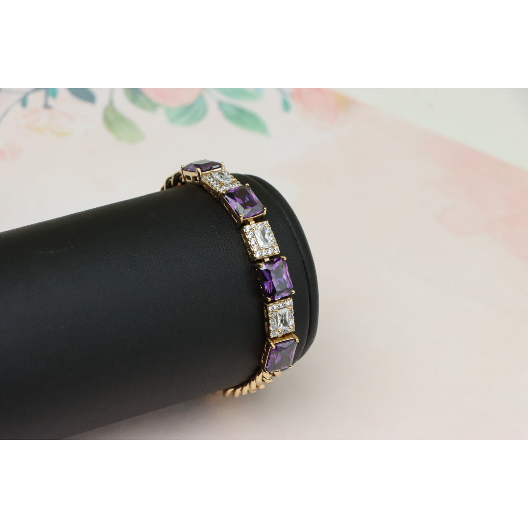 A luxurious bracelet featuring deep purple square-cut stones alternating with shimmering CZ accents.