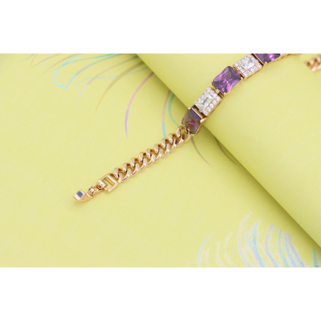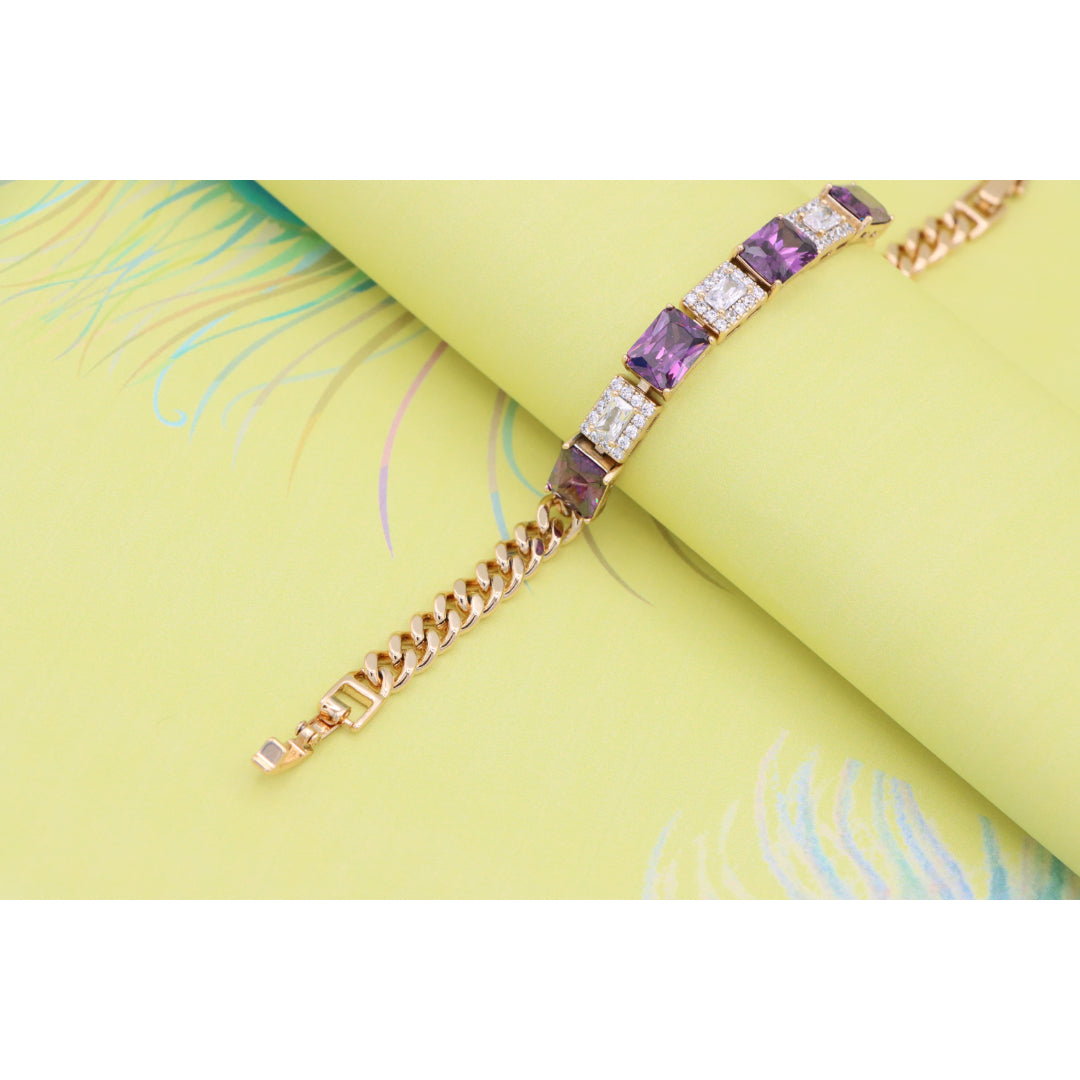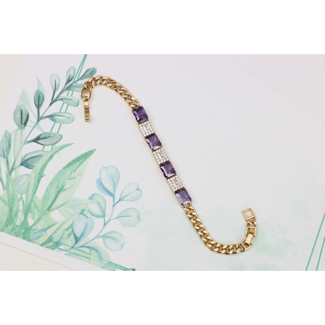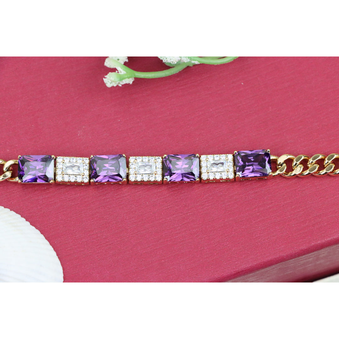 A luxurious bracelet featuring deep purple square-cut stones alternating with shimmering CZ accents.
