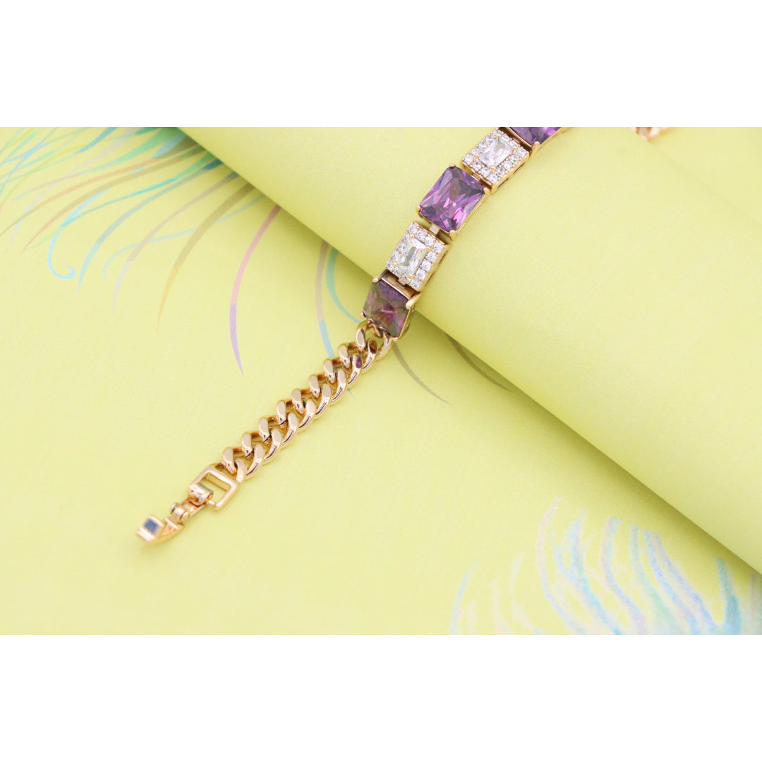 Rose Gold Bracelet with Purple and CZ Rectangle Stones, XPBL0821