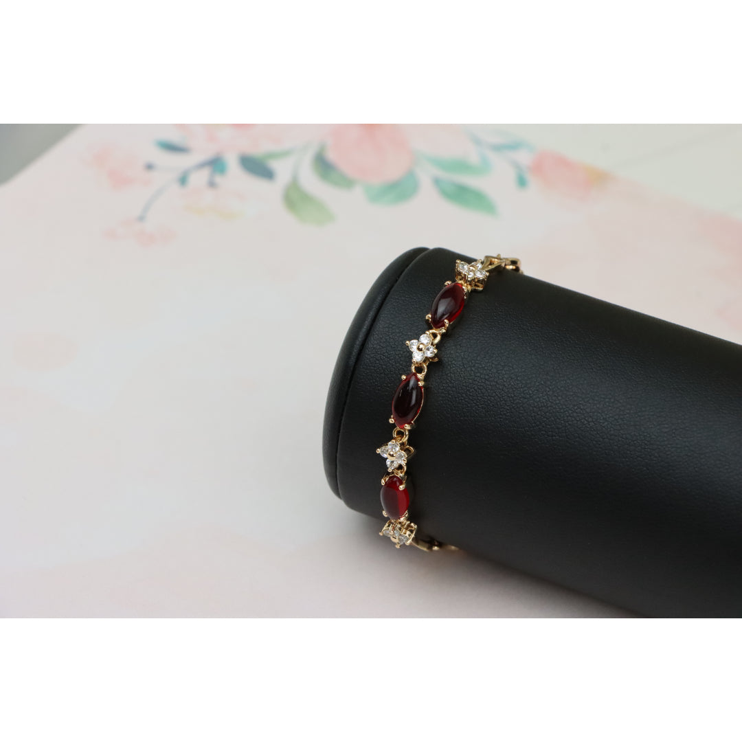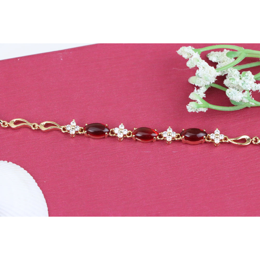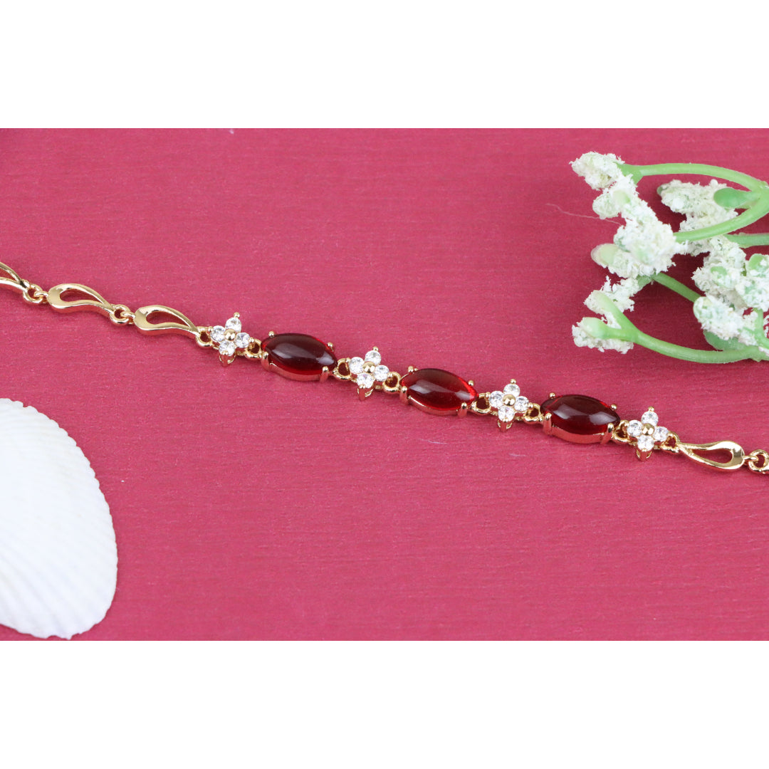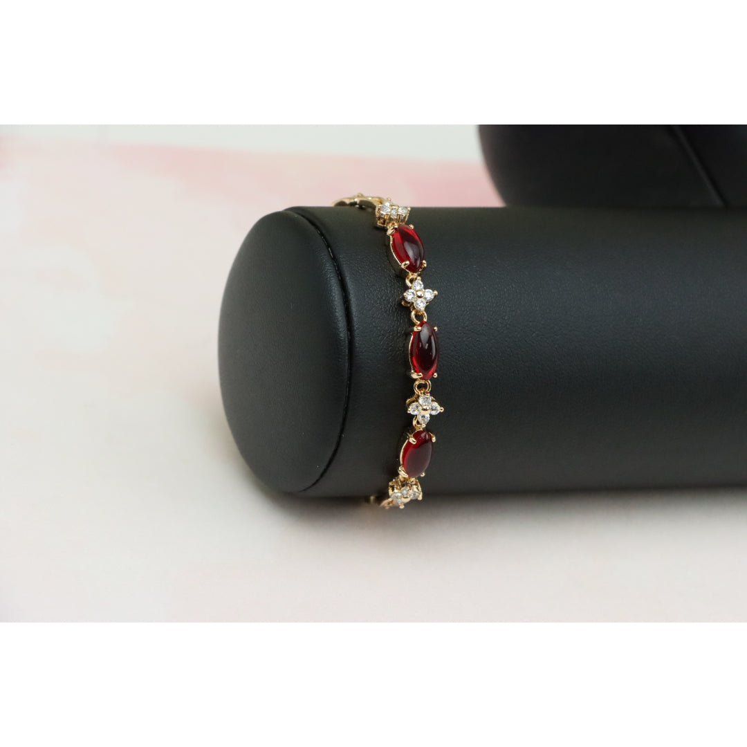 Grace your wrist with this stunning rose gold bracelet, highlighted by deep red stones and sparkling white accents for a timeless, elegant look.