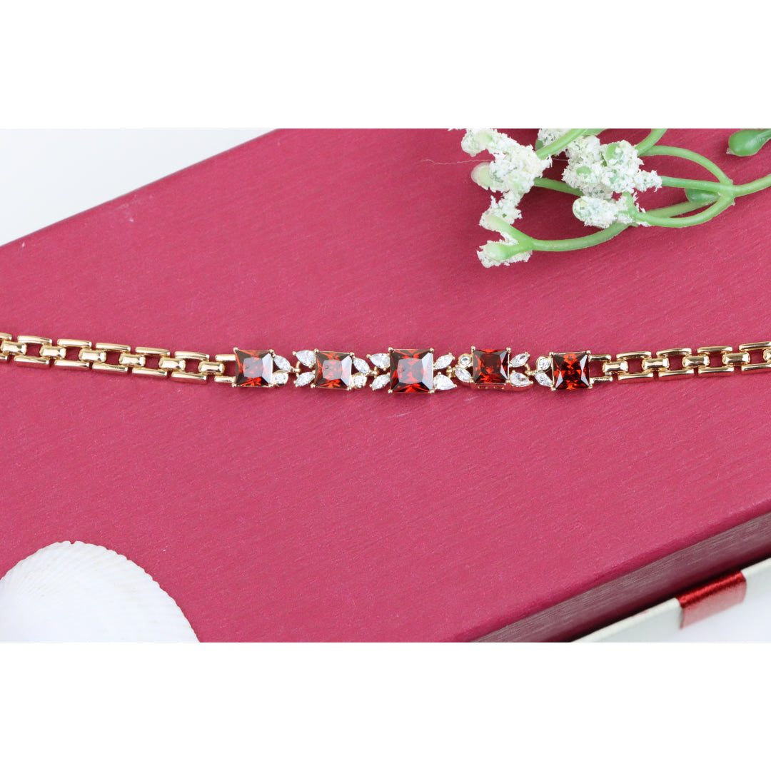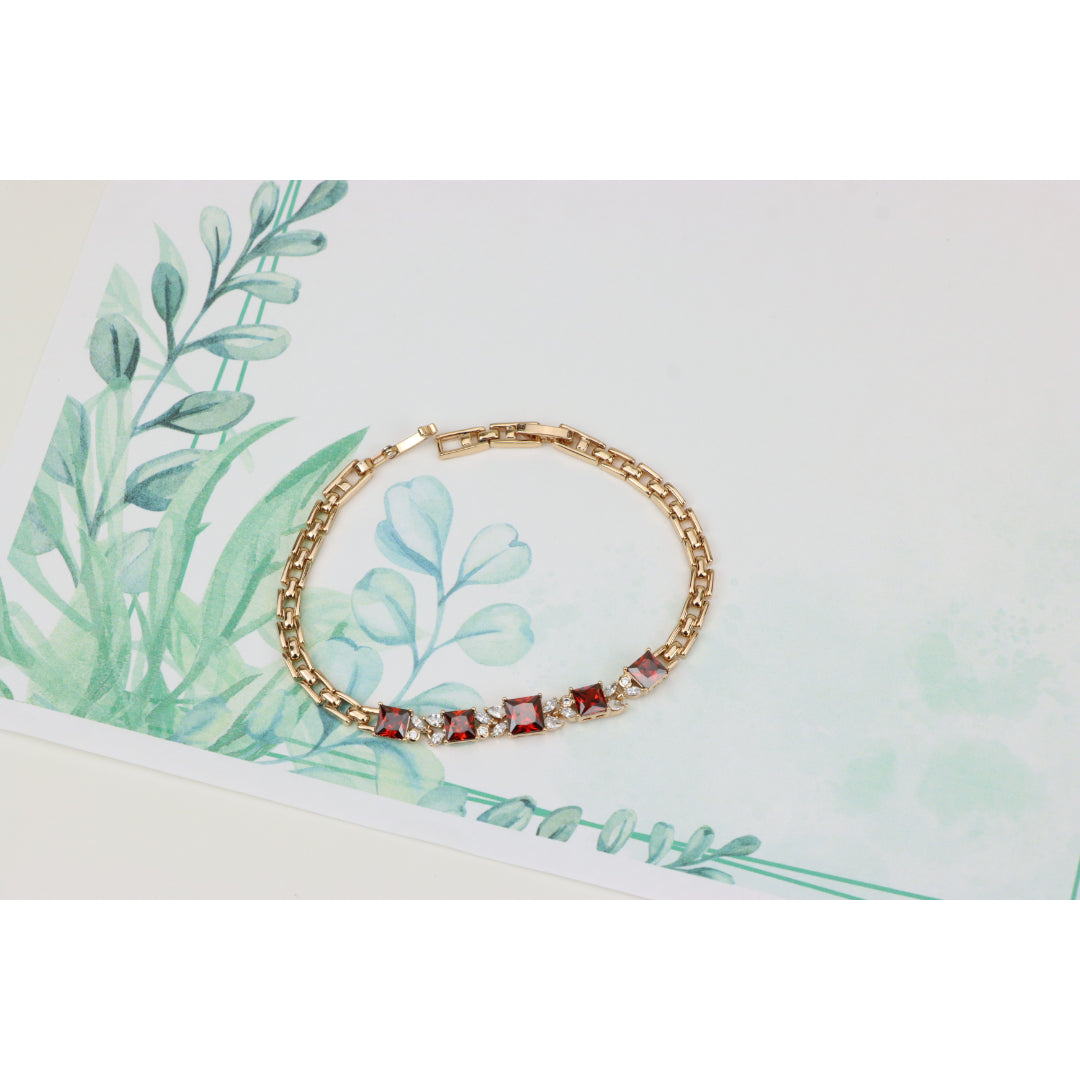 Rose Gold Bracelet with Red Stones – Gold Plated, XPBL0676
