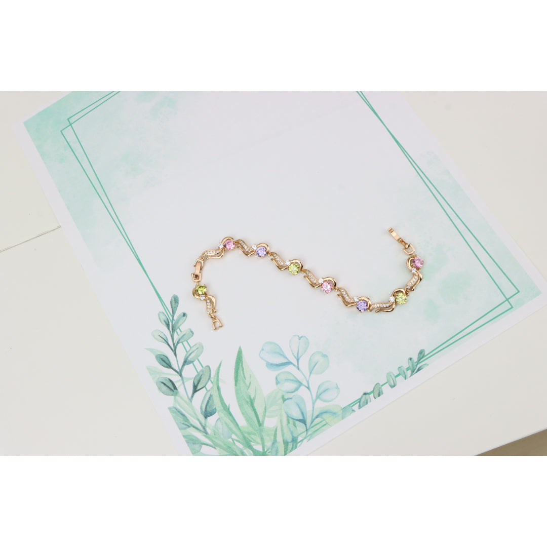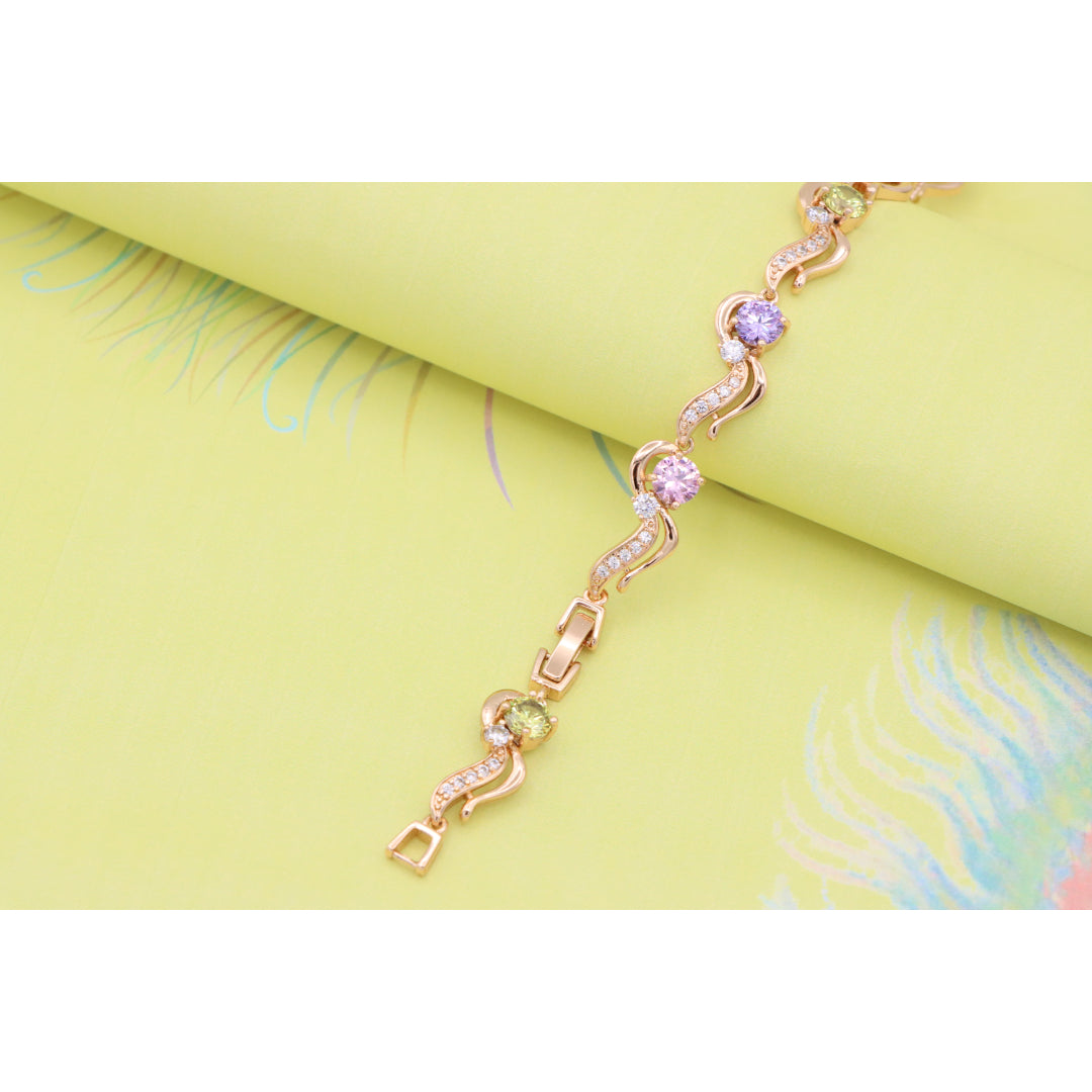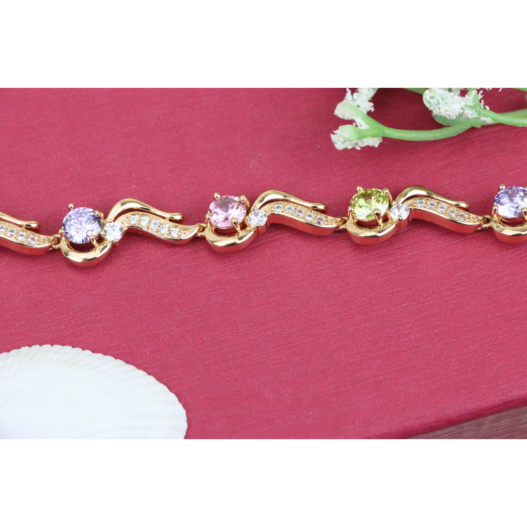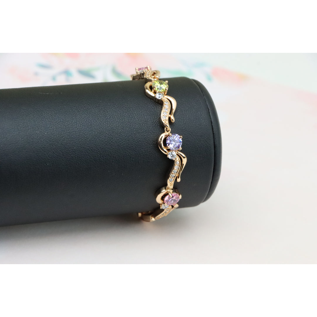 Rose Gold Bracelet with Wavy Design and Pastel Gemstones, XPBL0817 (2082-6)