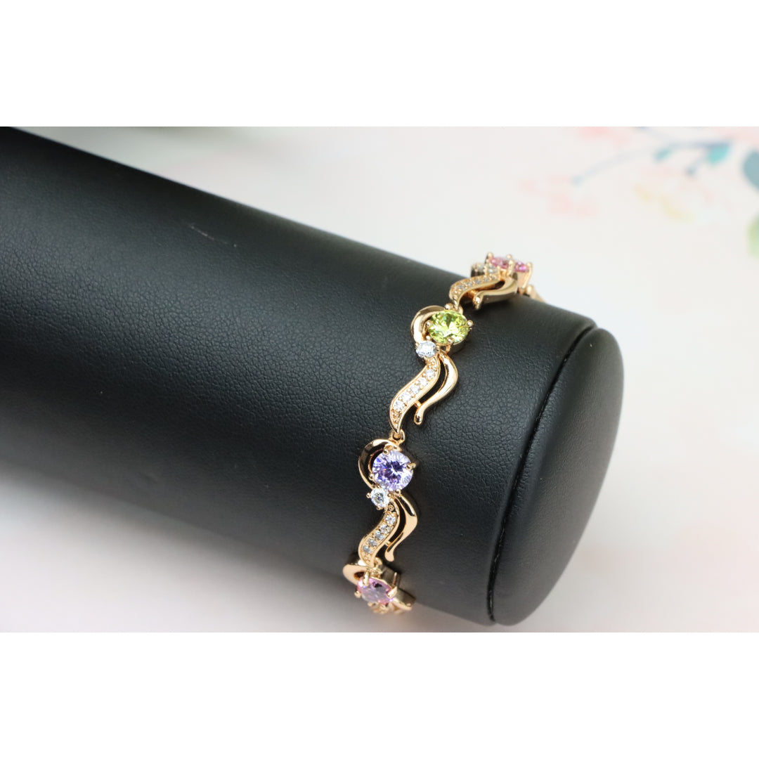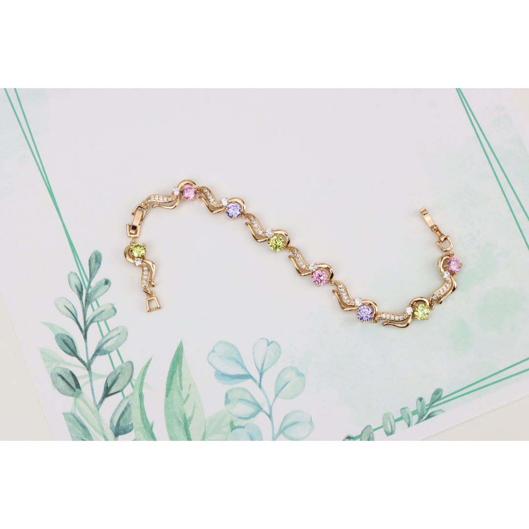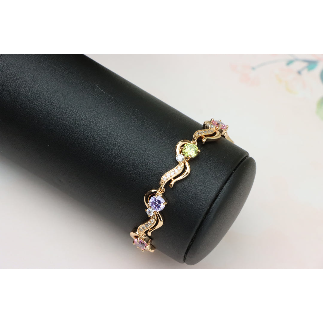 Rose Gold Bracelet with Wavy Design and Pastel Gemstones, XPBL0817 (2082-6)