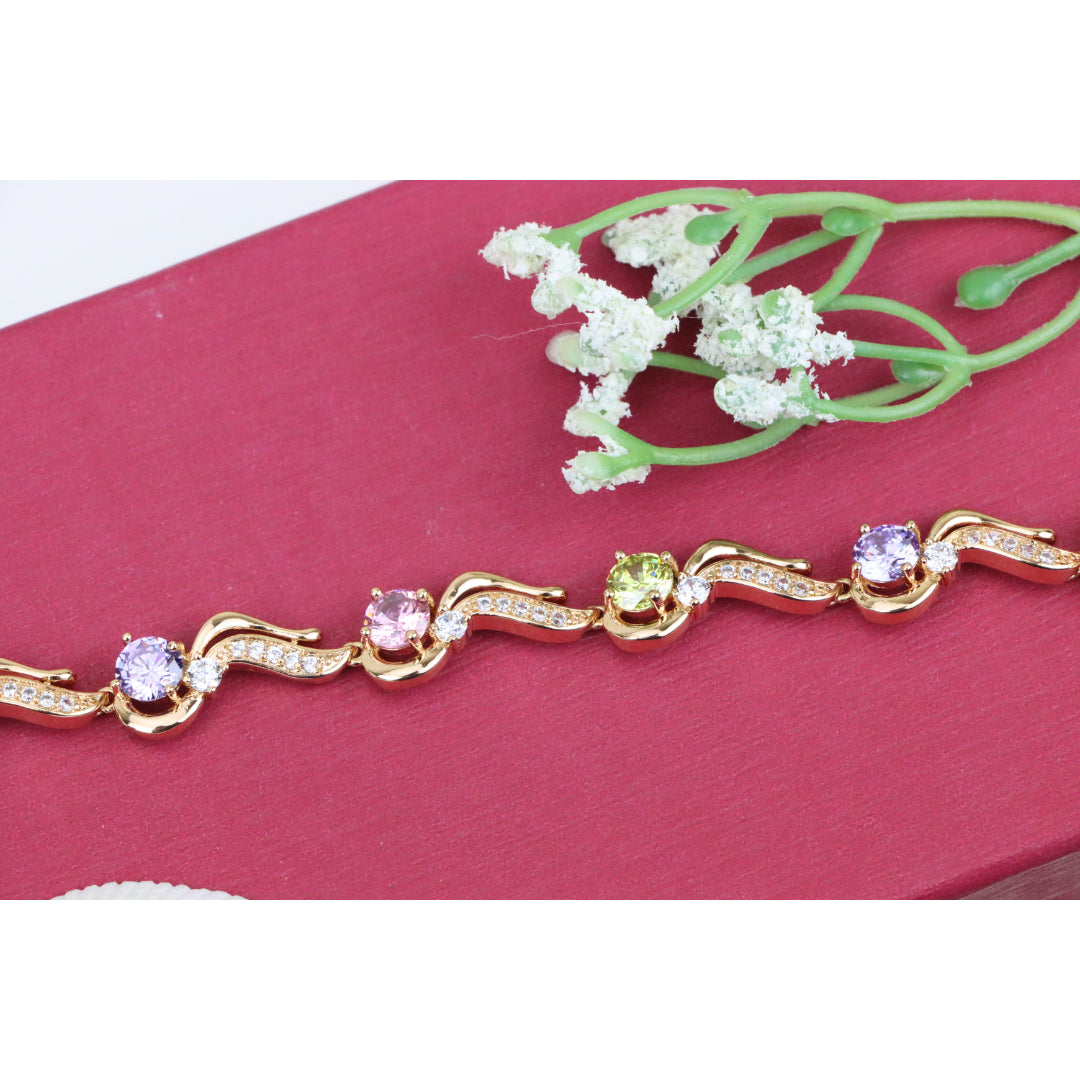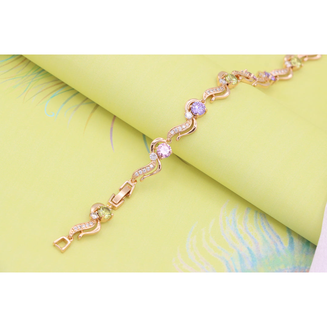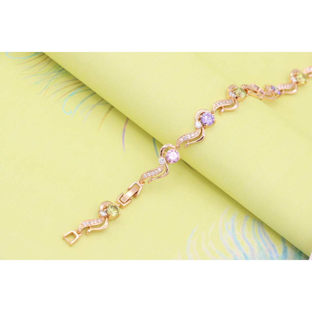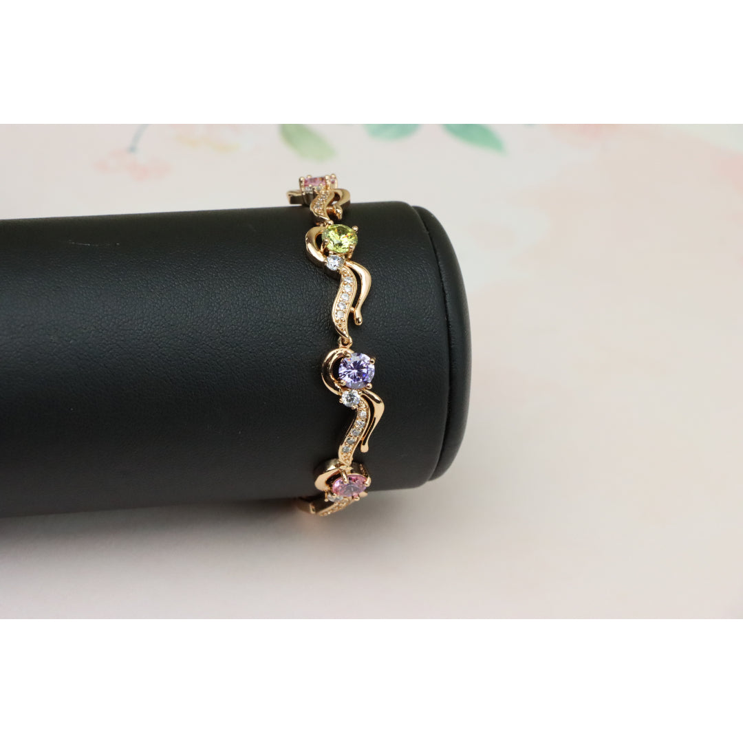 Rose Gold Bracelet with Wavy Design and Pastel Gemstones, XPBL0817 (2082-6)