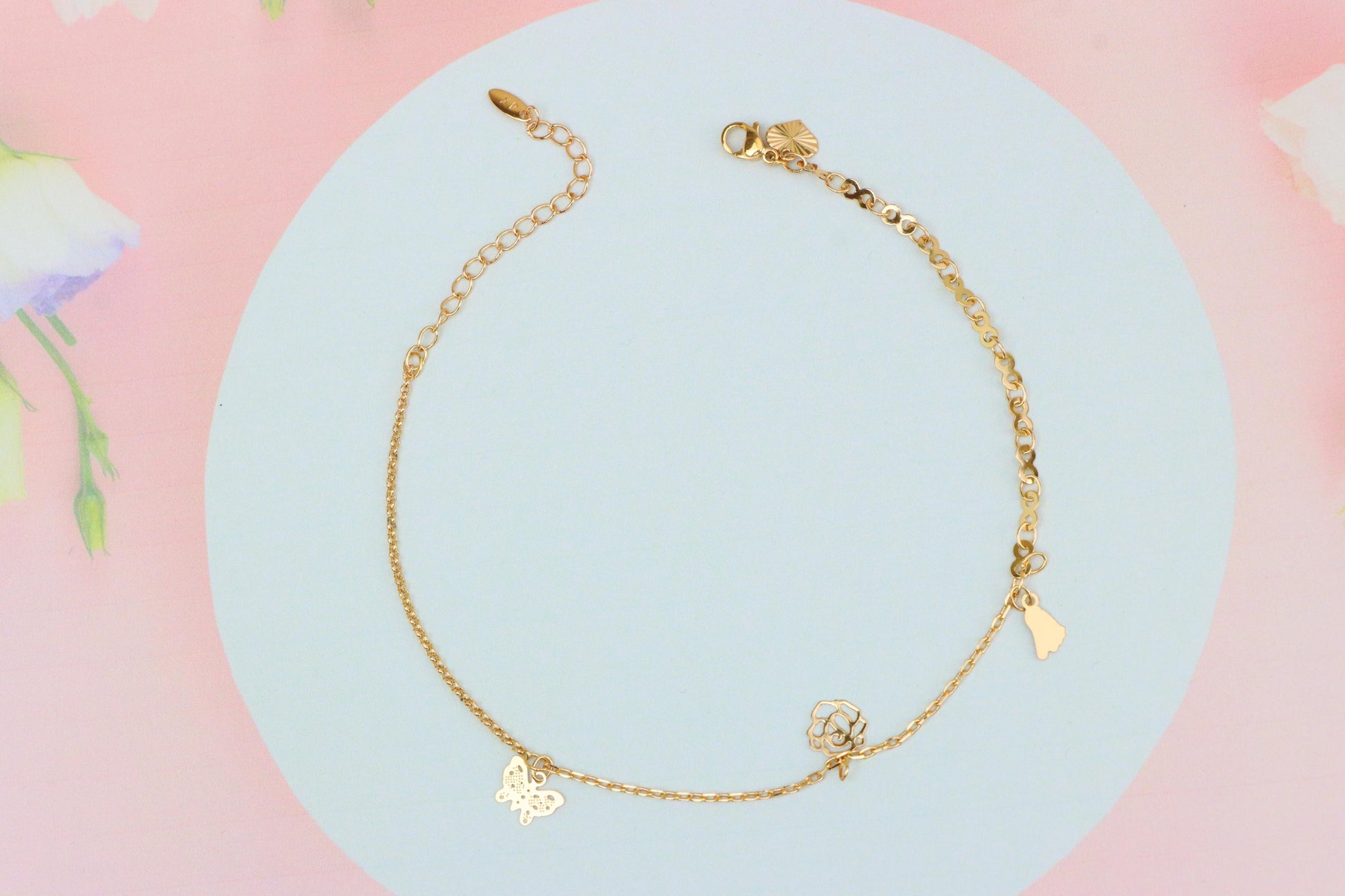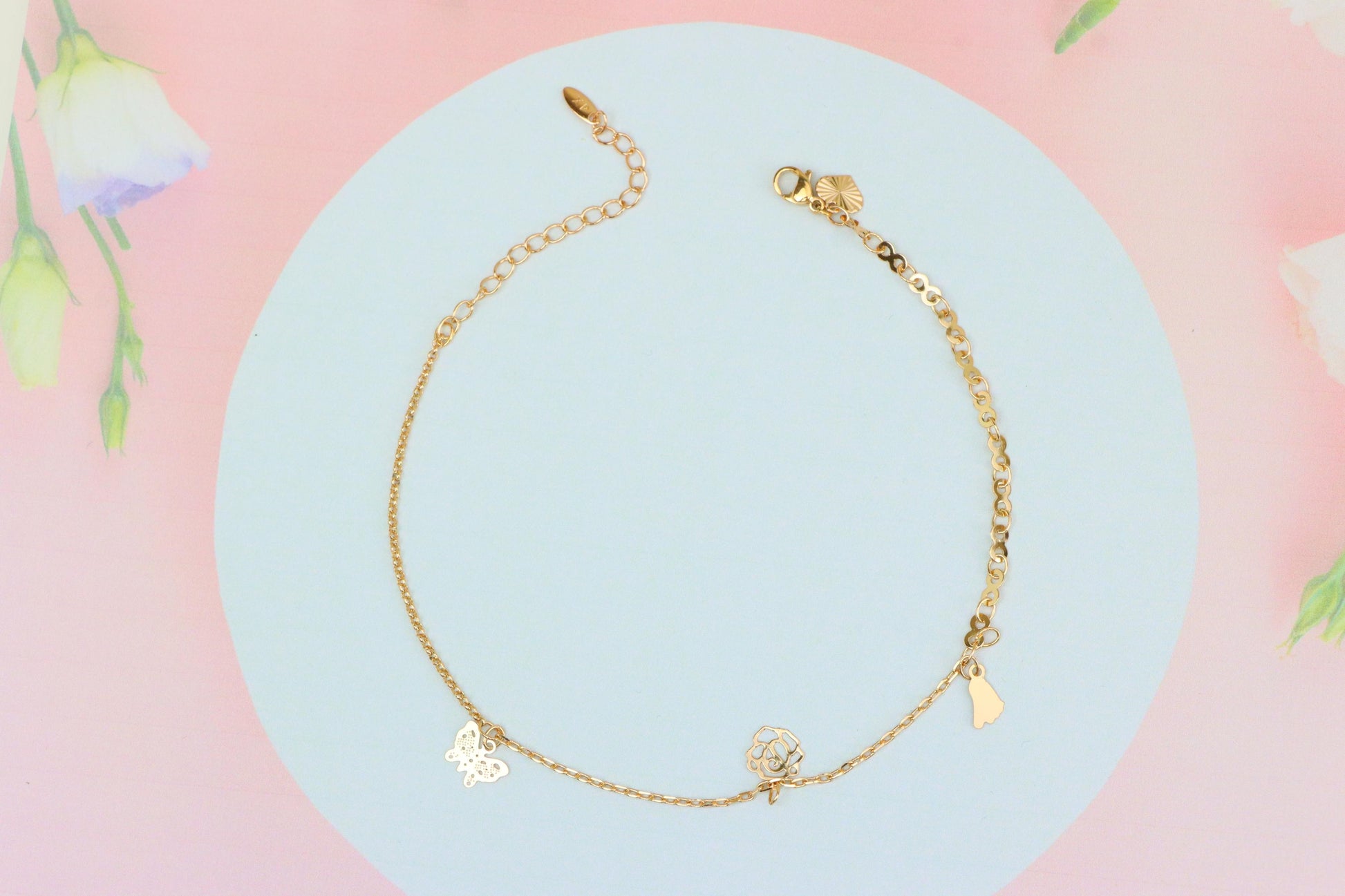 Rose Gold Butterfly and Floral Charm Anklet, XPAL1053