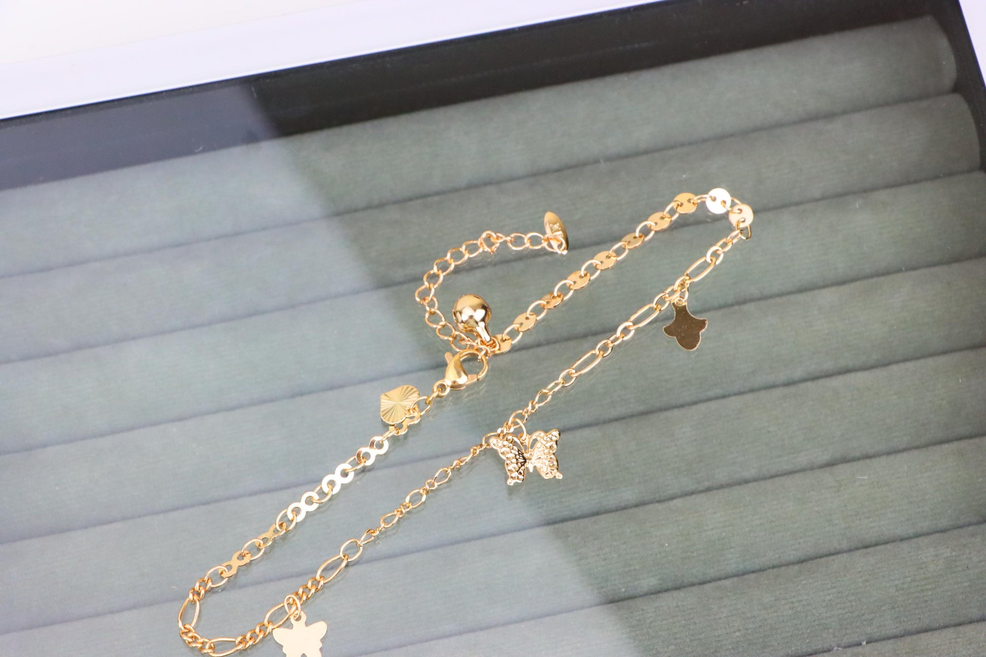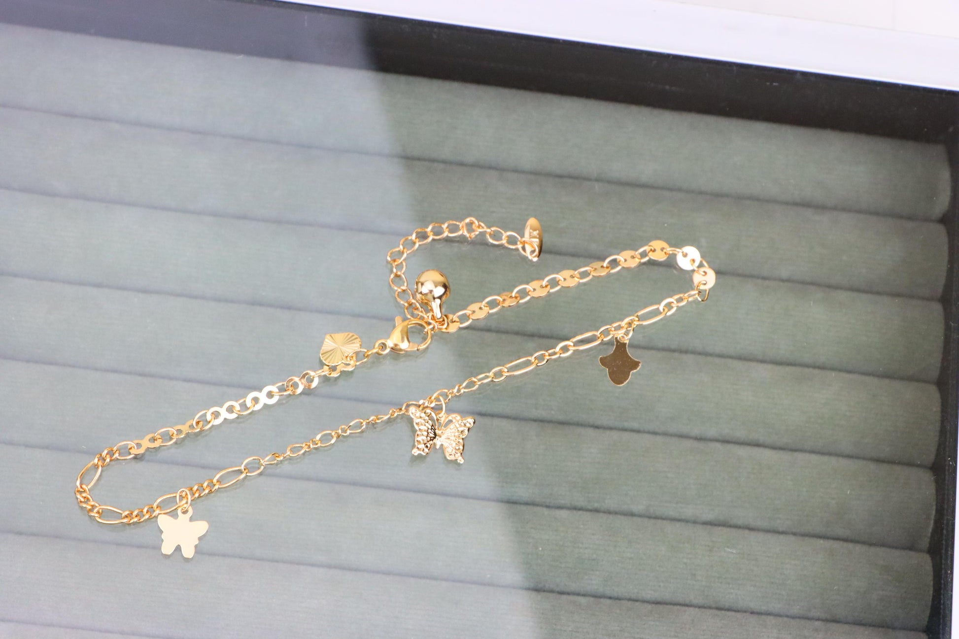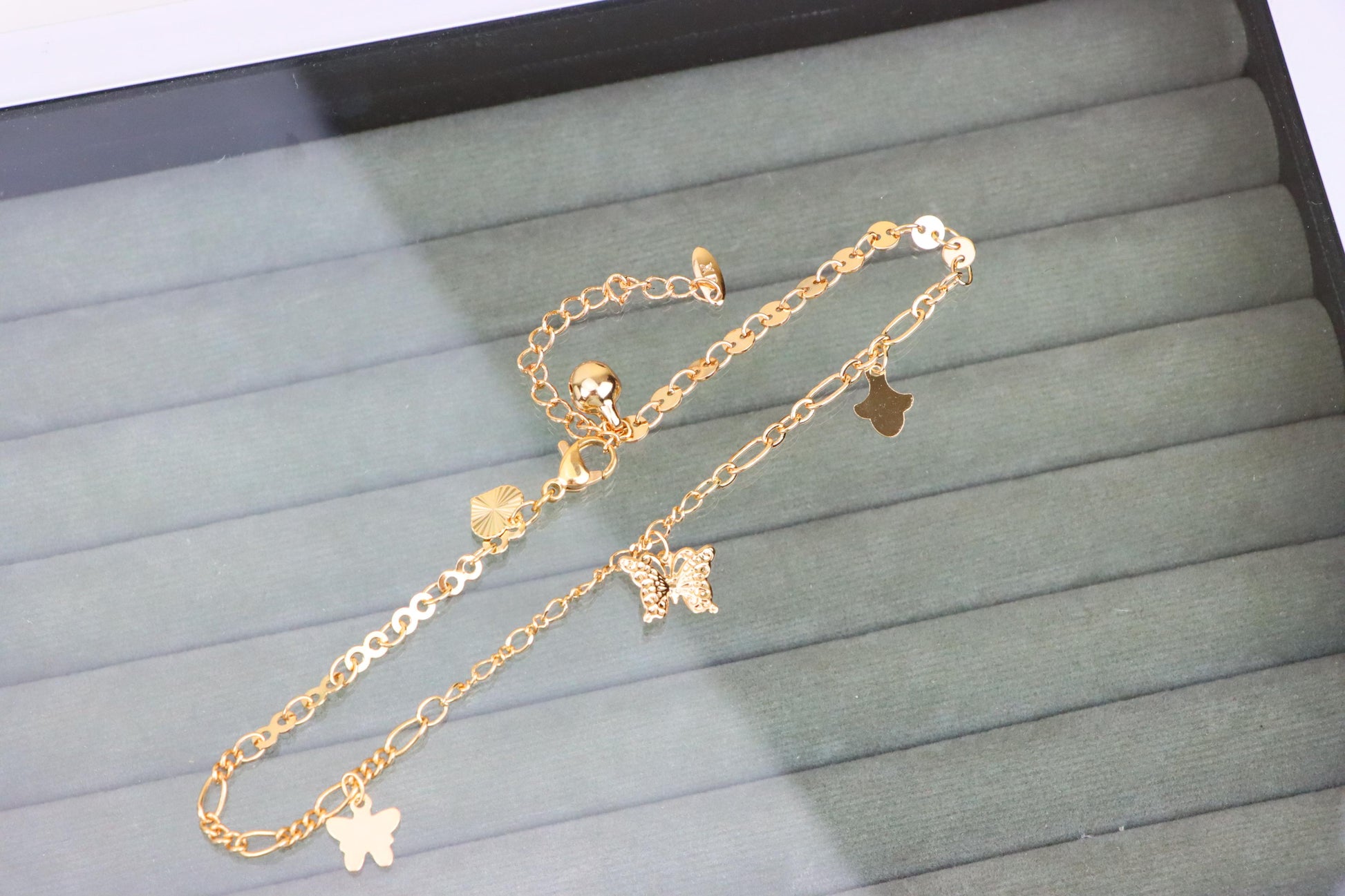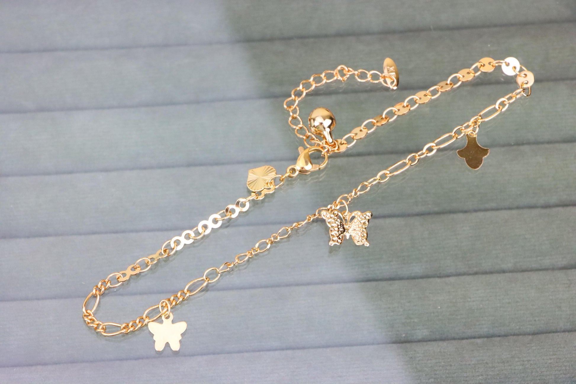 Rose Gold Butterfly Charm Anklet in Dual Link Design, XPAL1189