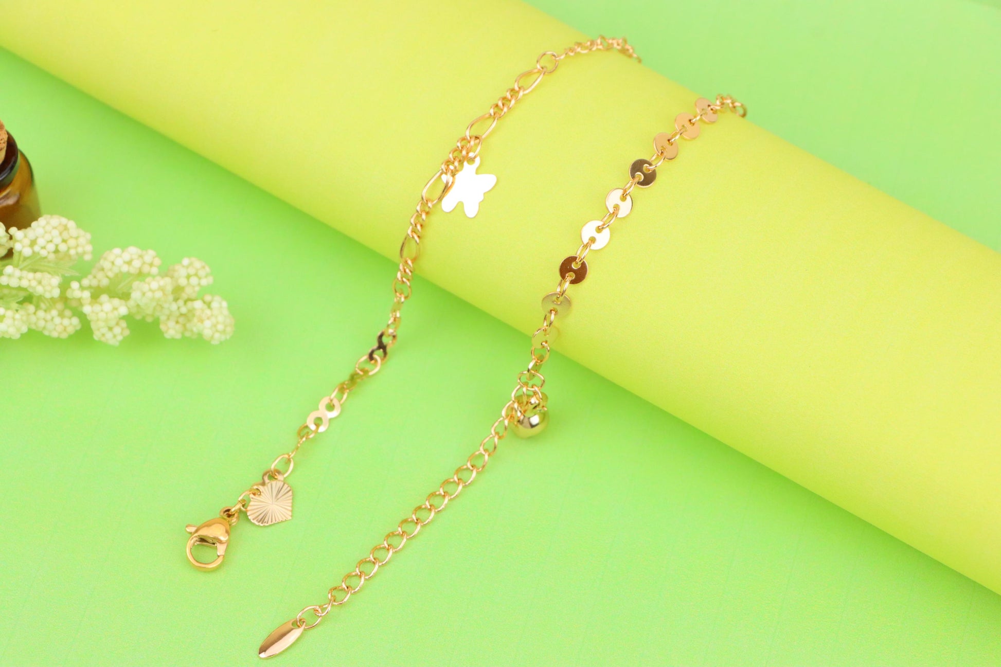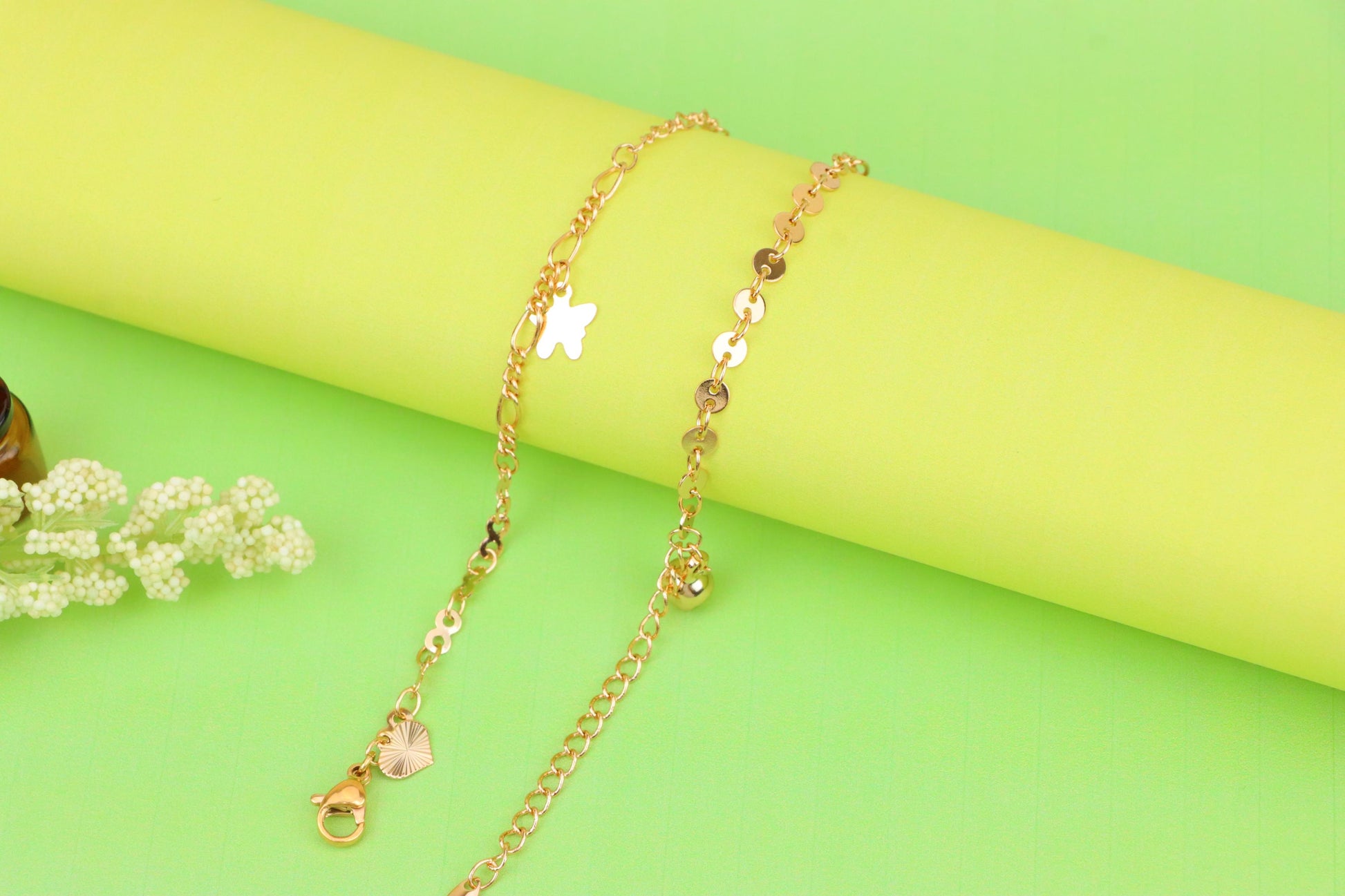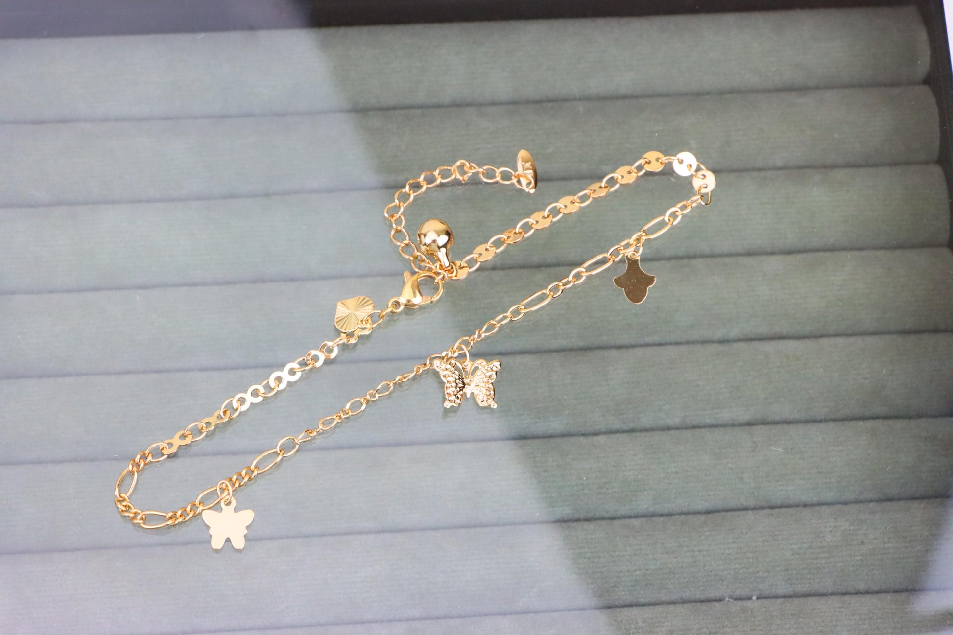 Rose Gold Butterfly Charm Anklet in Dual Link Design, XPAL1189