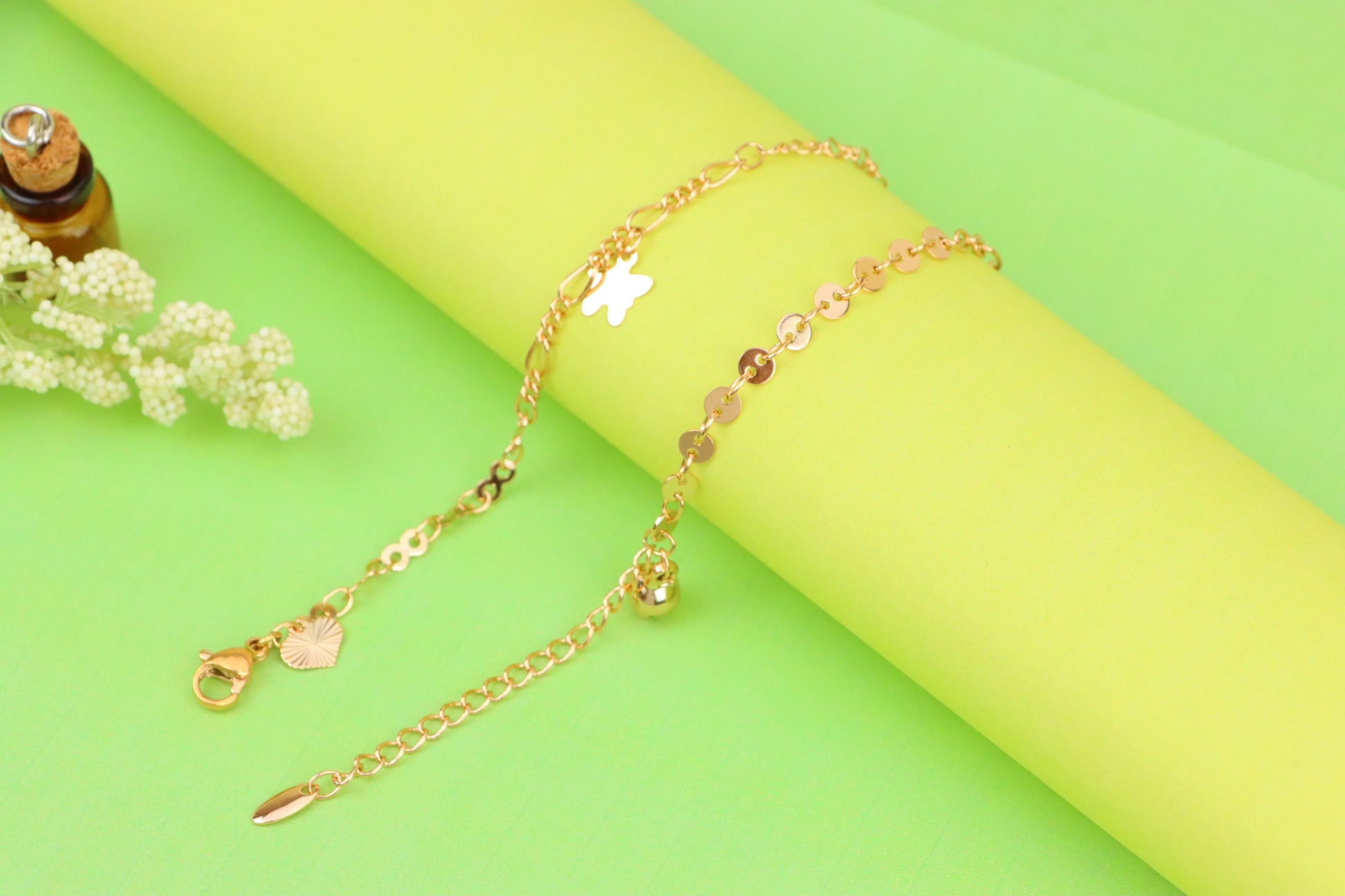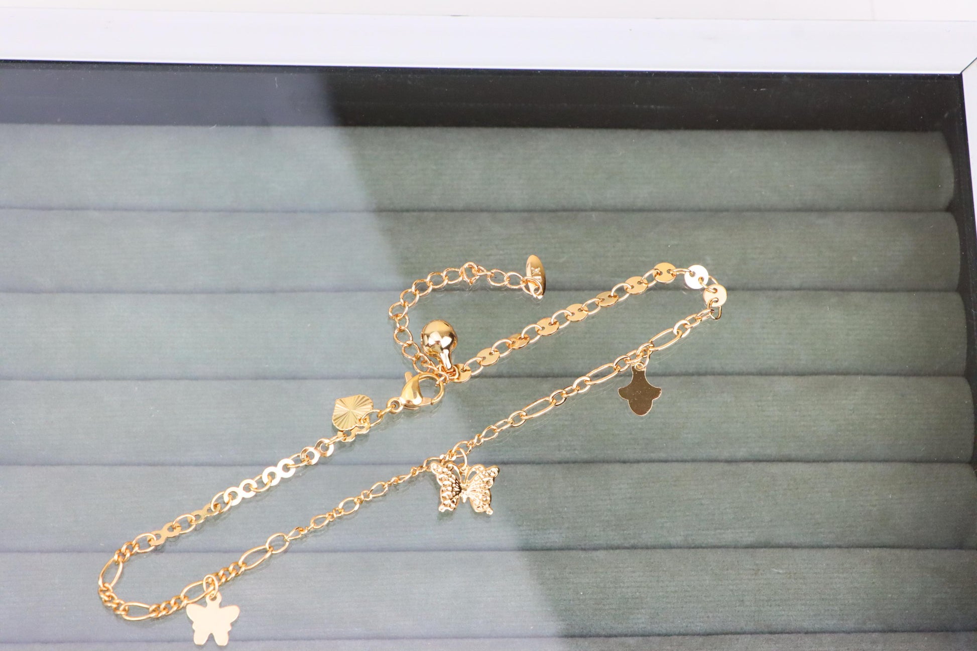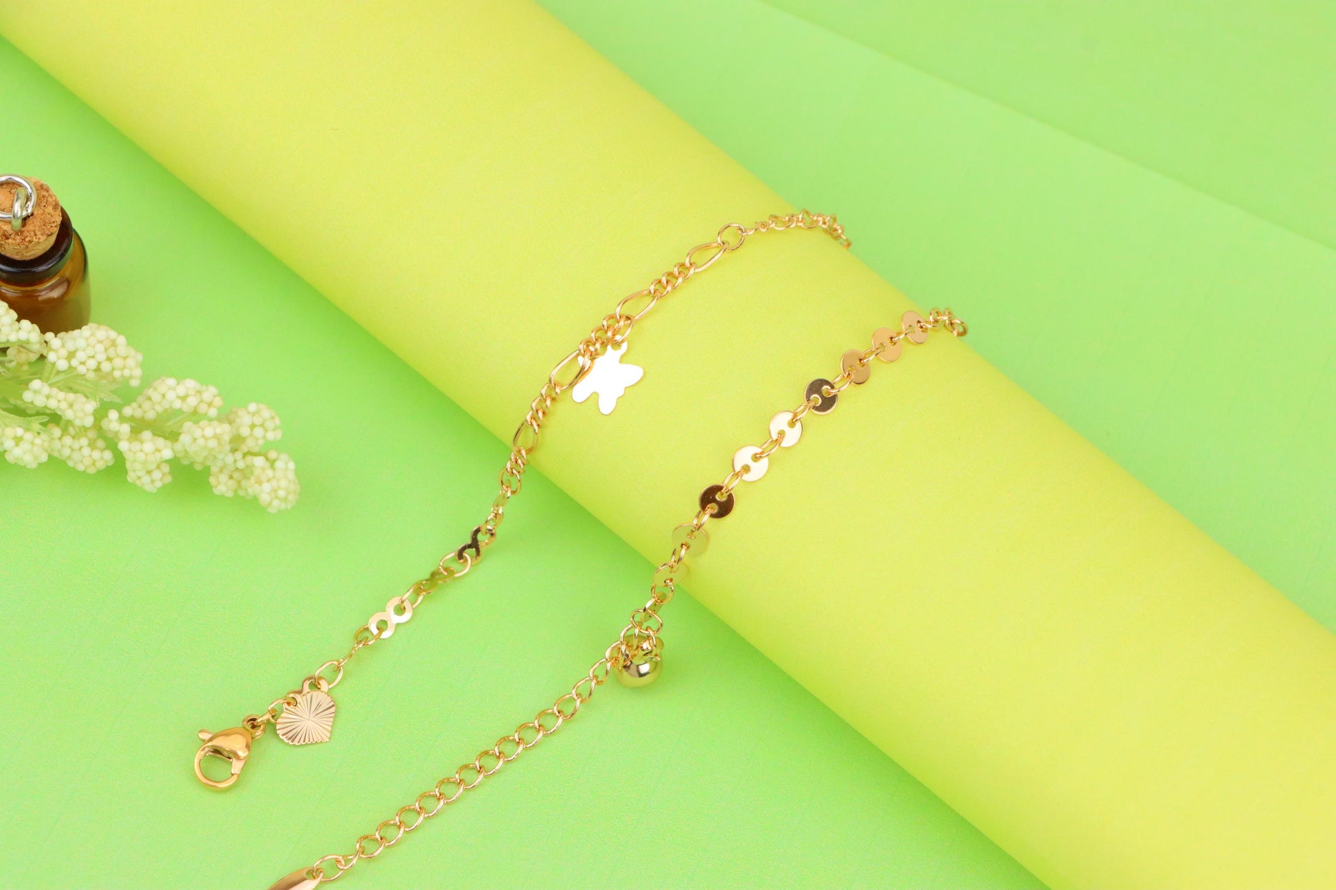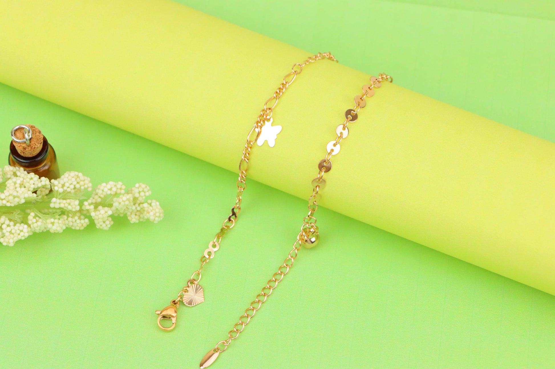 Rose Gold Butterfly Charm Anklet in Dual Link Design, XPAL1189