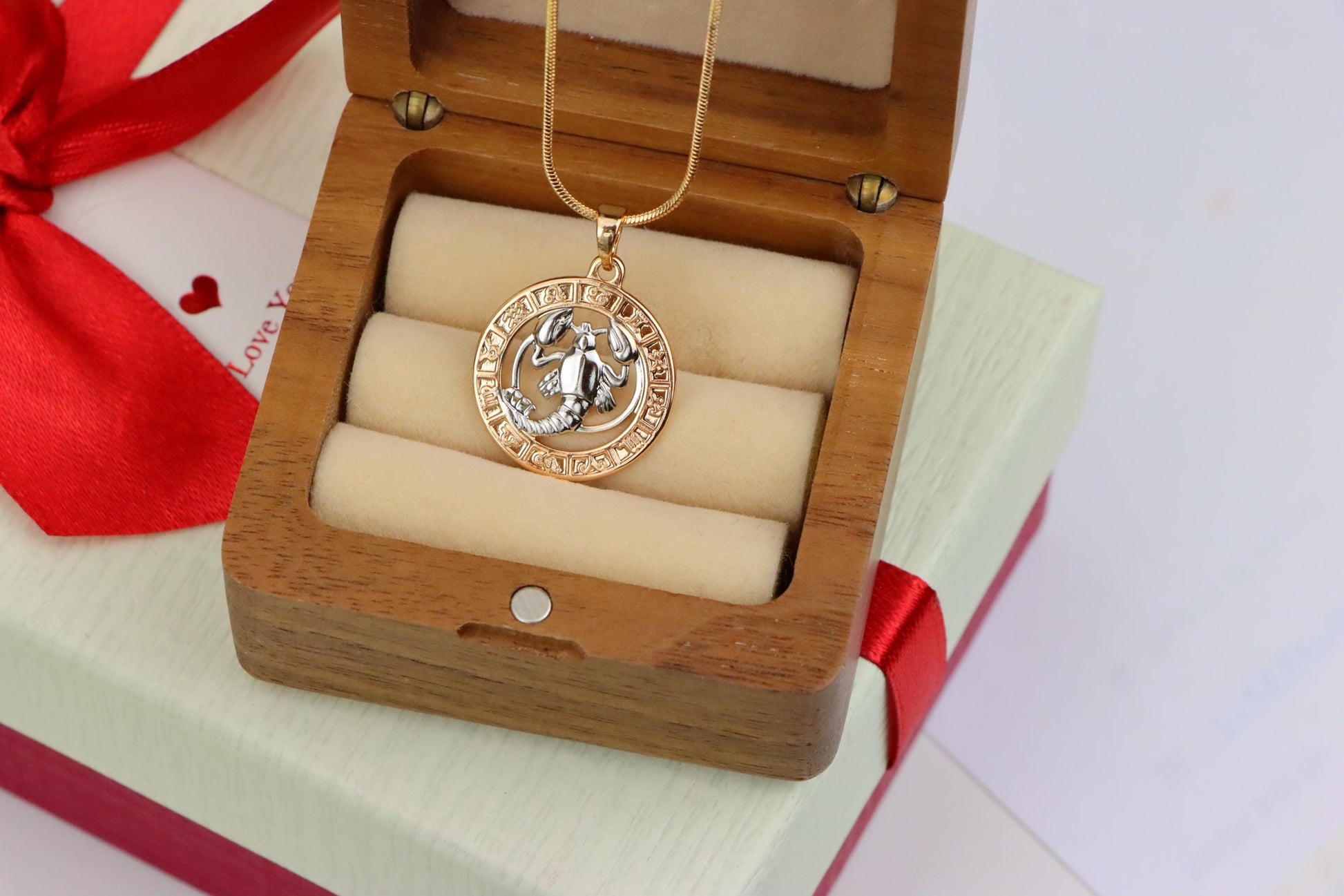 This beautifully crafted Cancer zodiac pendant reflects emotional depth and sensitivity in a stylish rose gold design.