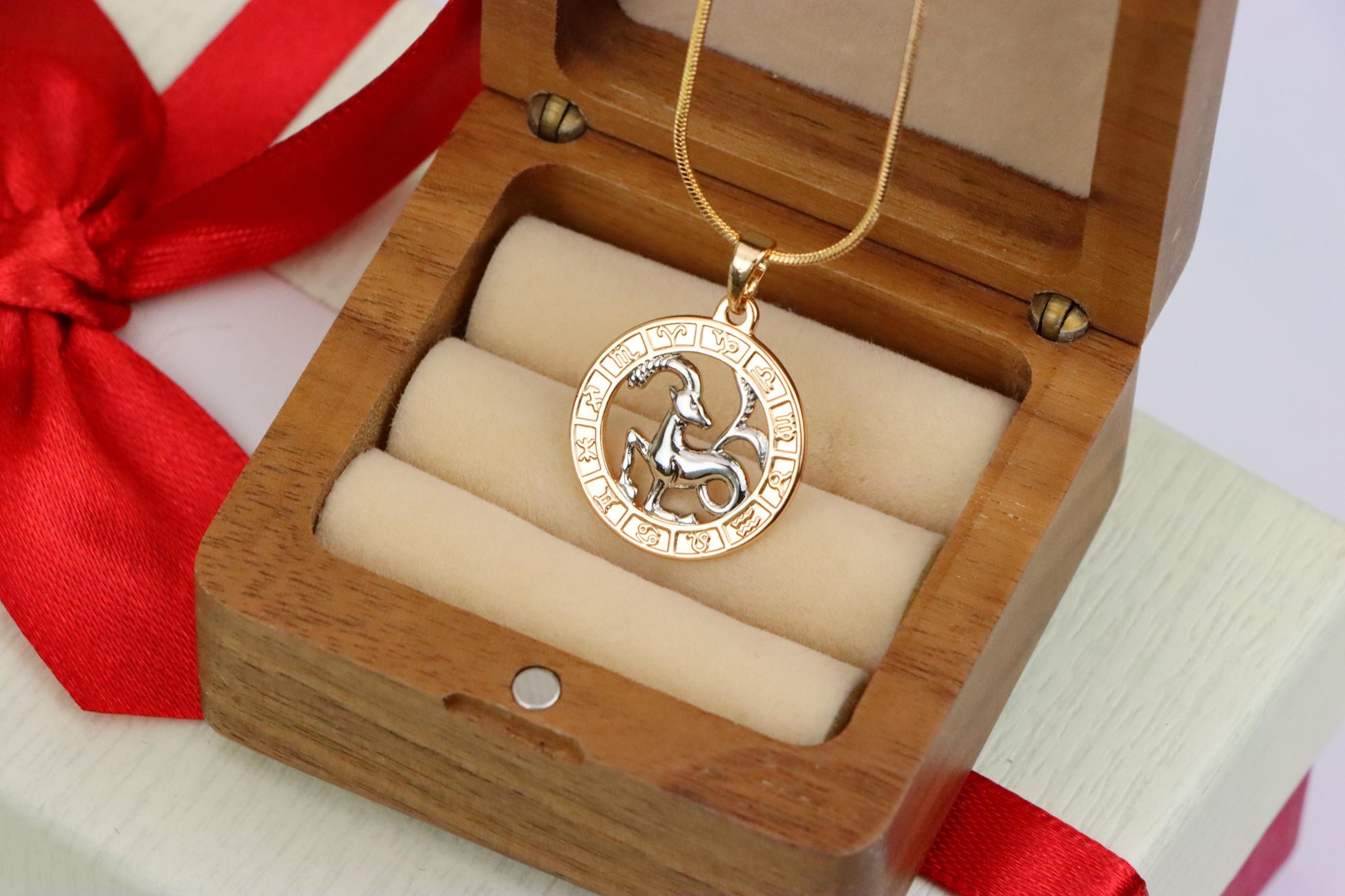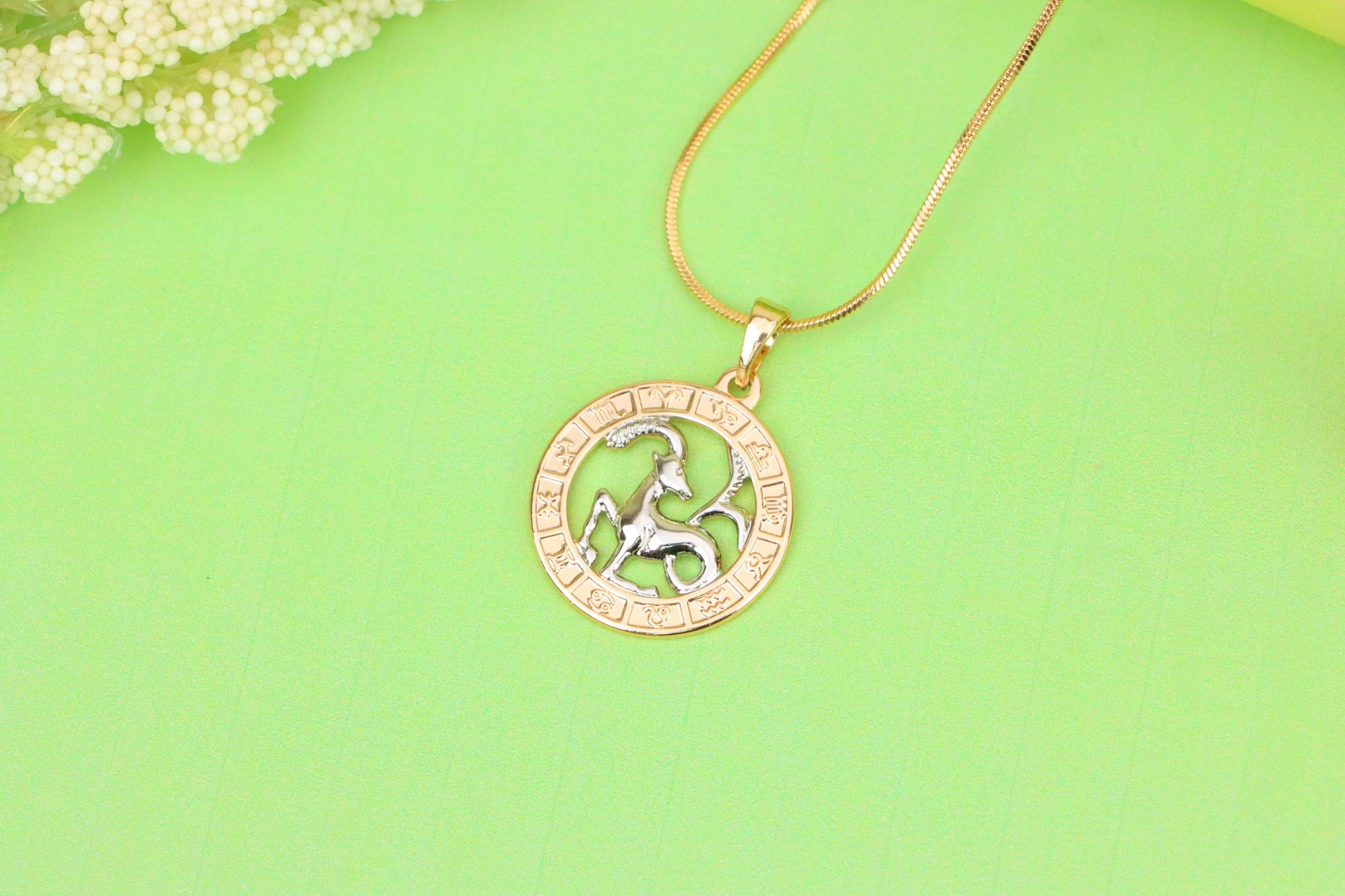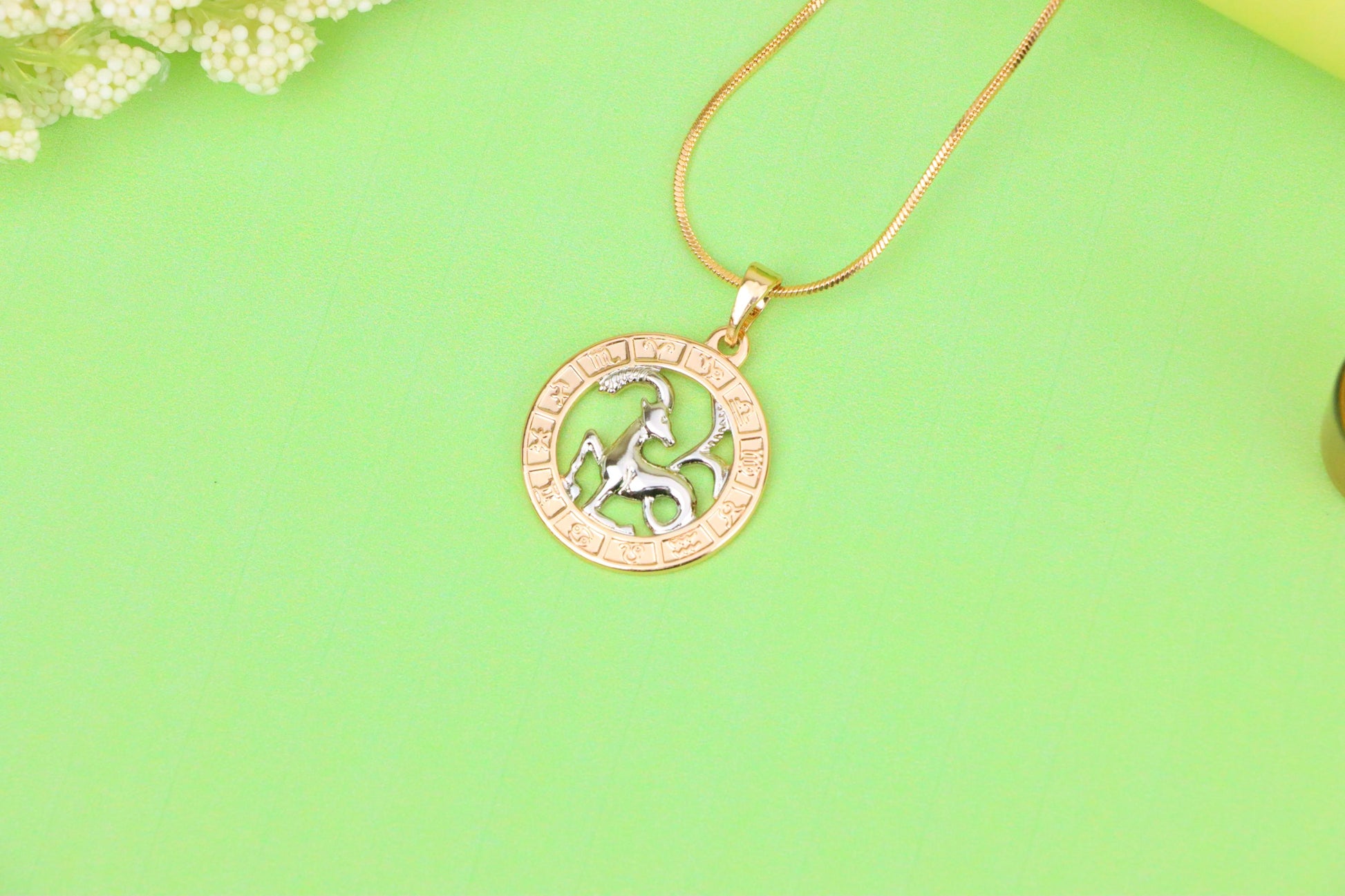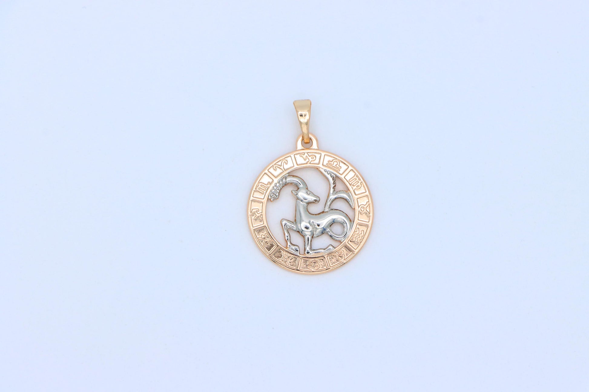Capture the spirit of Capricorn with this sophisticated zodiac pendant in a blend of rose gold and silver tones.