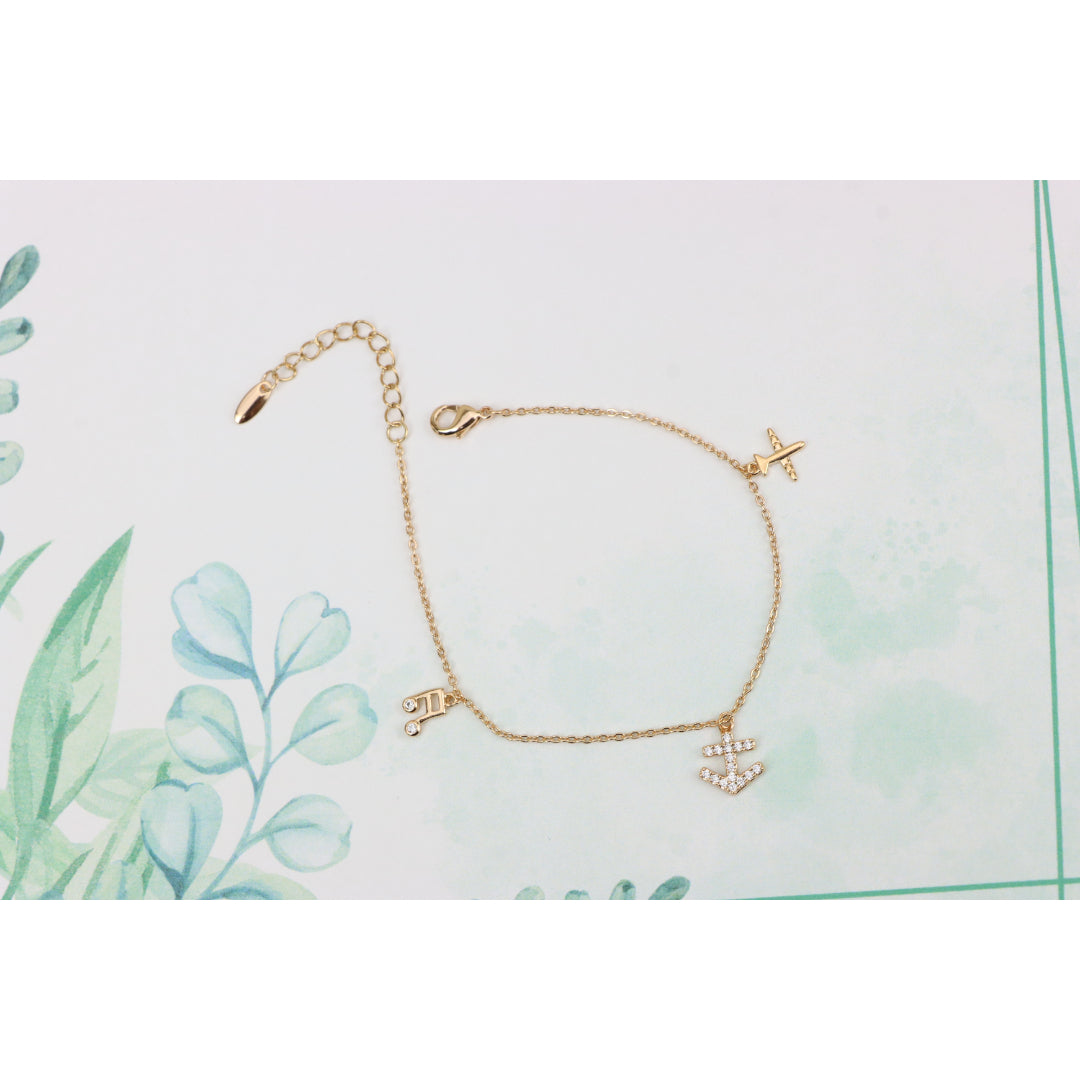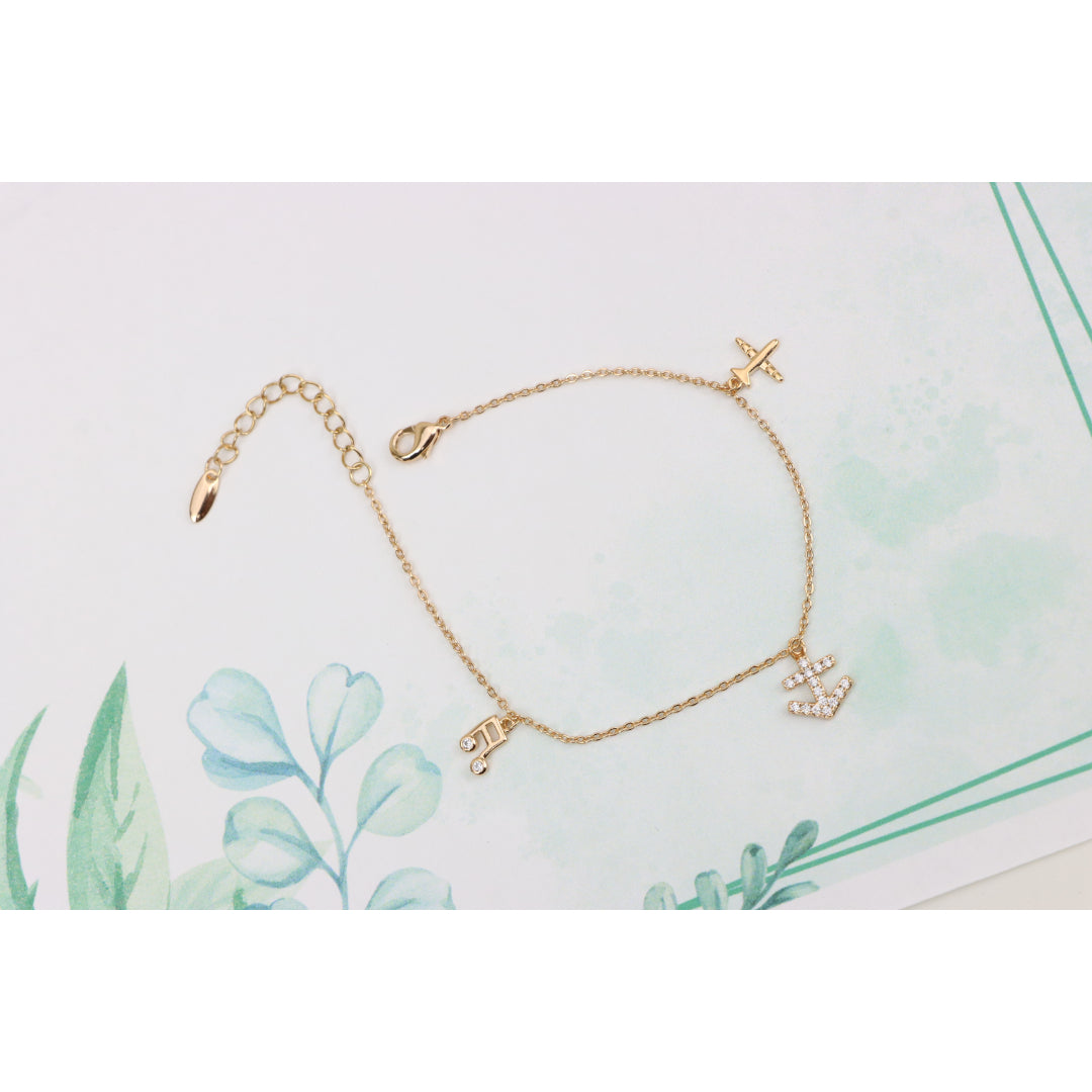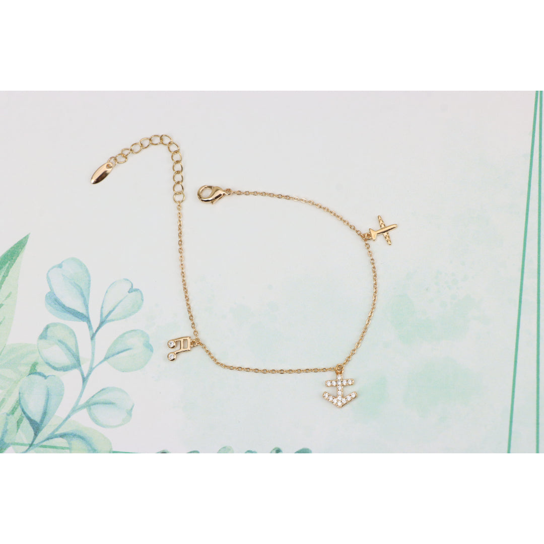 Elegant and meaningful rose gold bracelet featuring anchor, plane, and charm details. Crafted for daily wear and gifting.