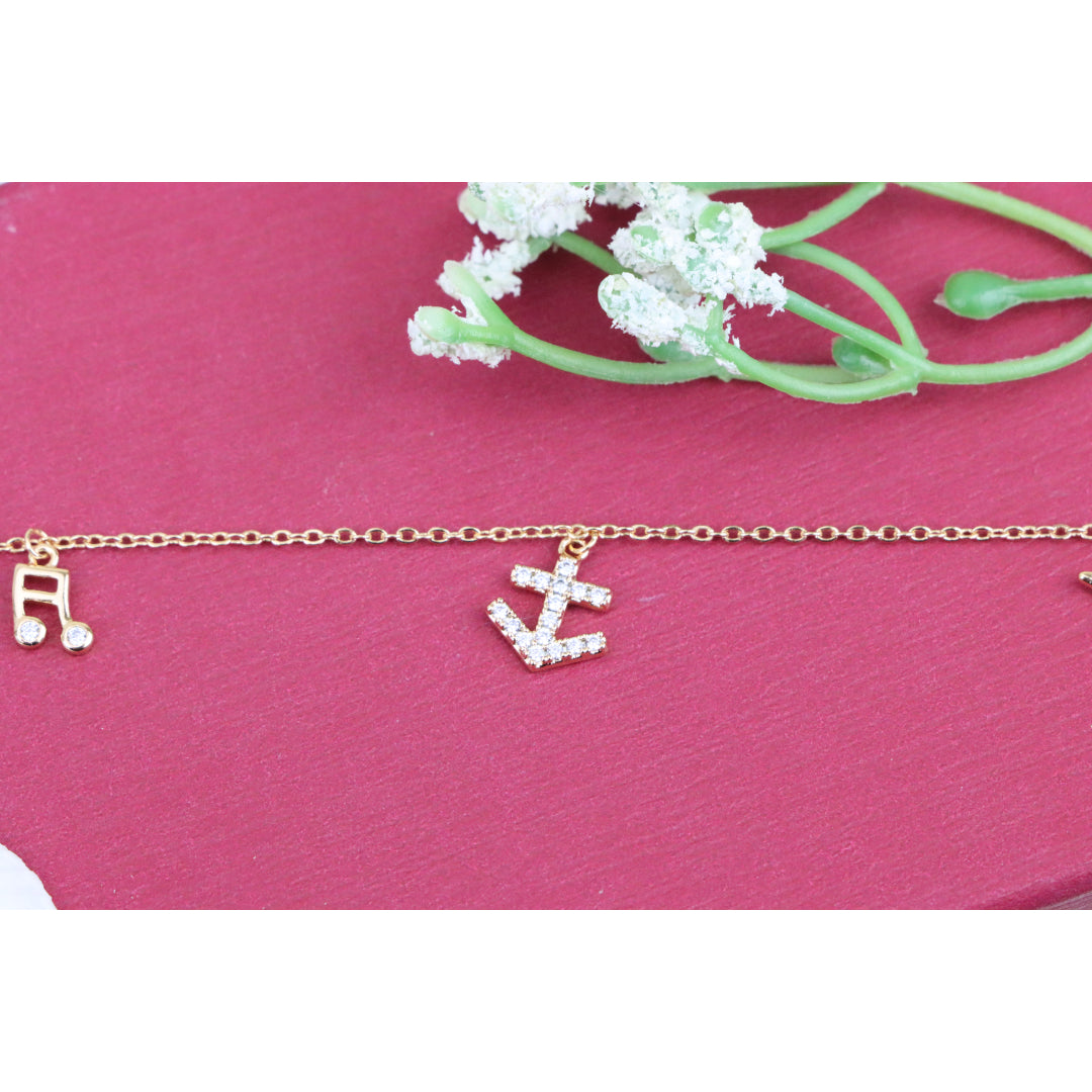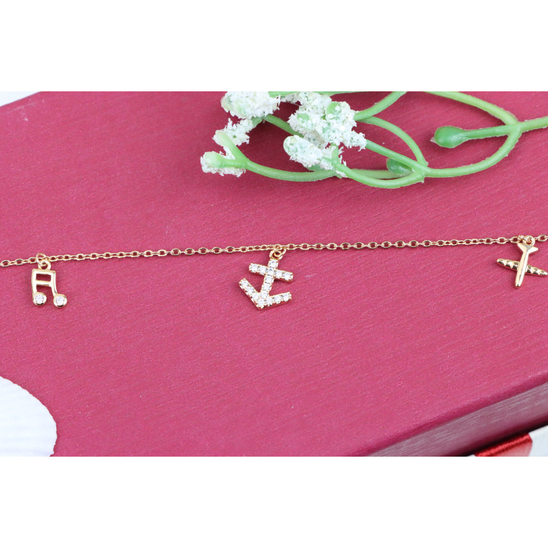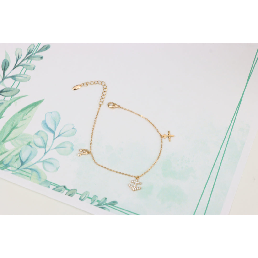 Elegant and meaningful rose gold bracelet featuring anchor, plane, and charm details. Crafted for daily wear and gifting.